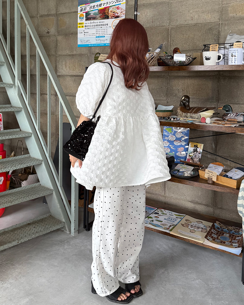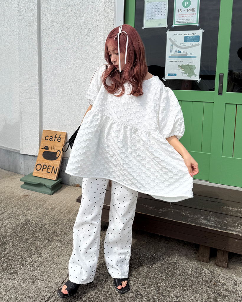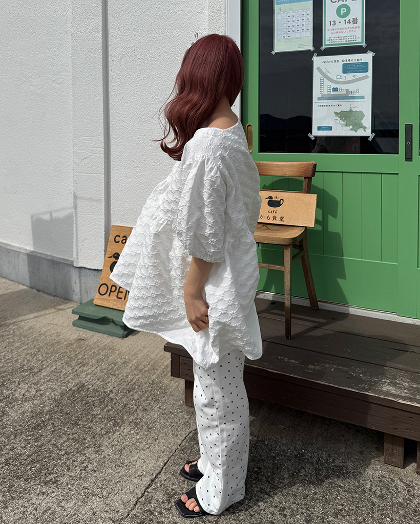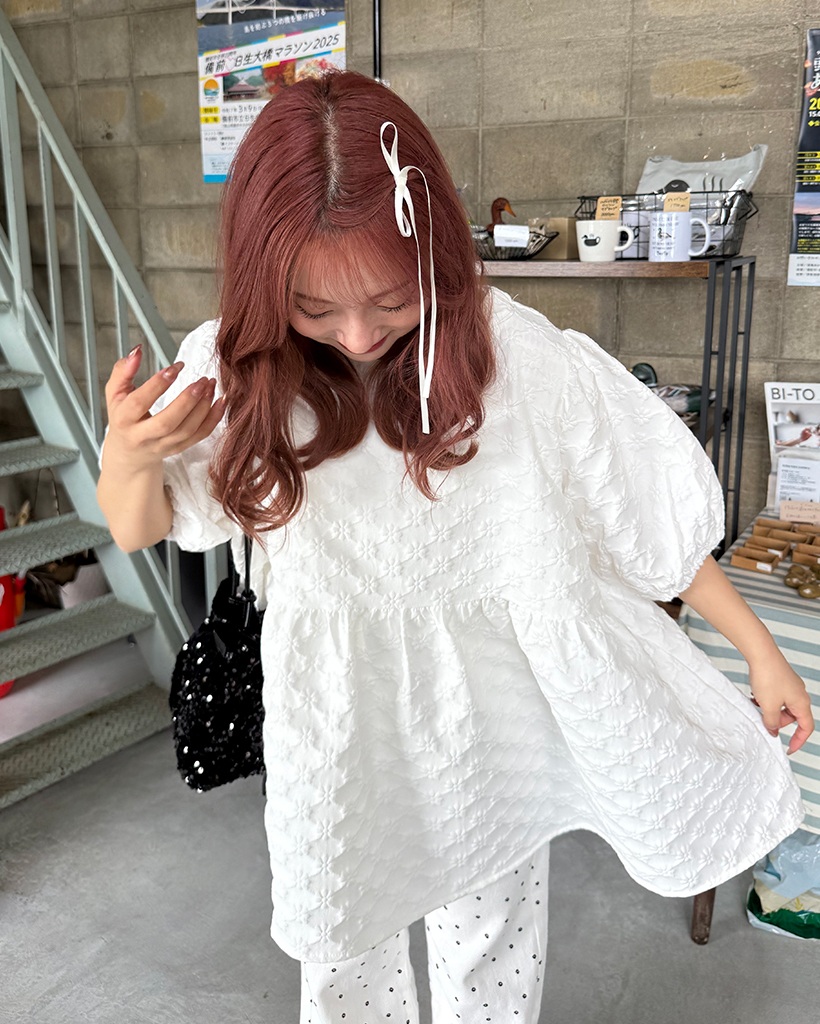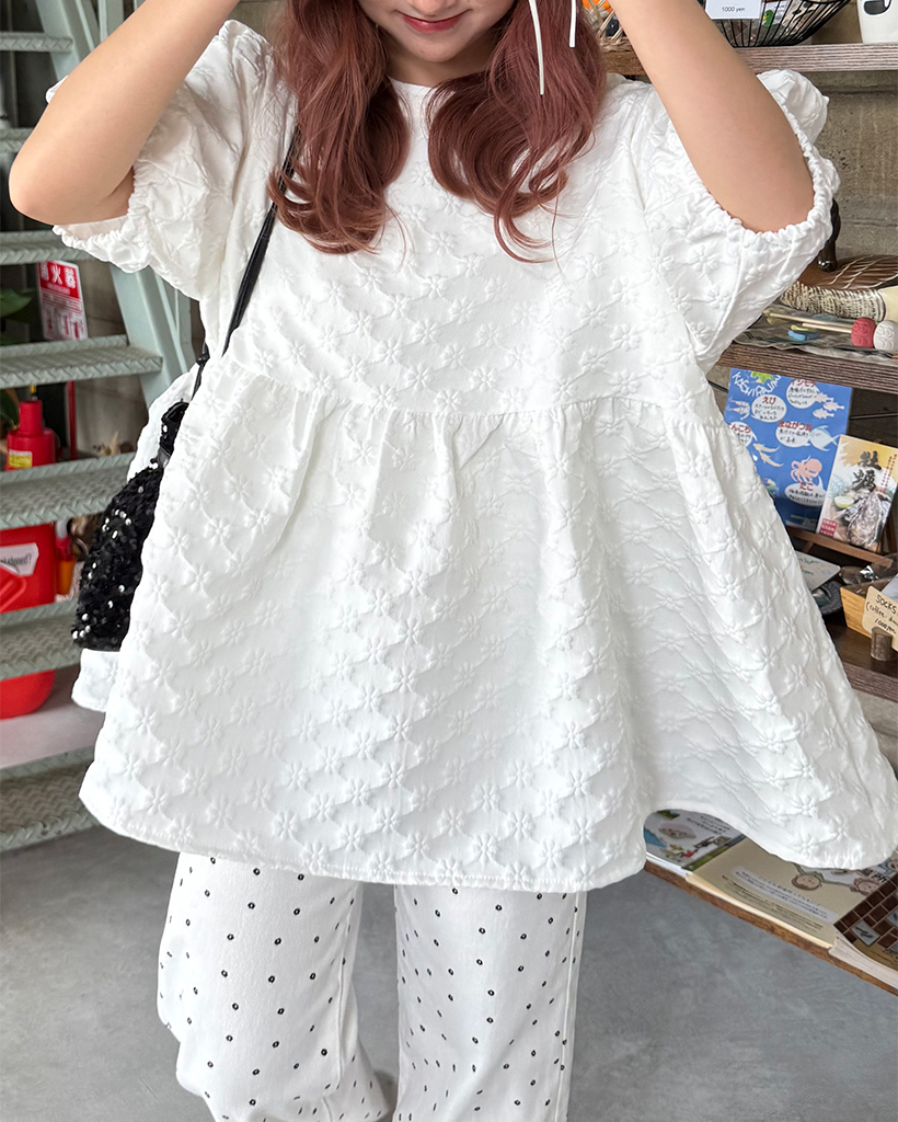 フラワーエンボスペプラムブラウス