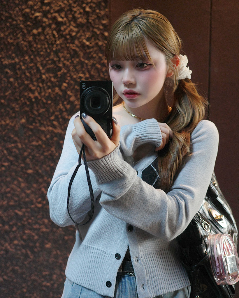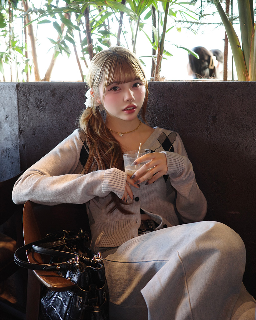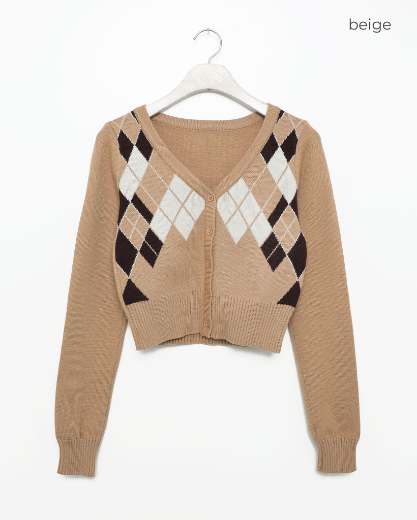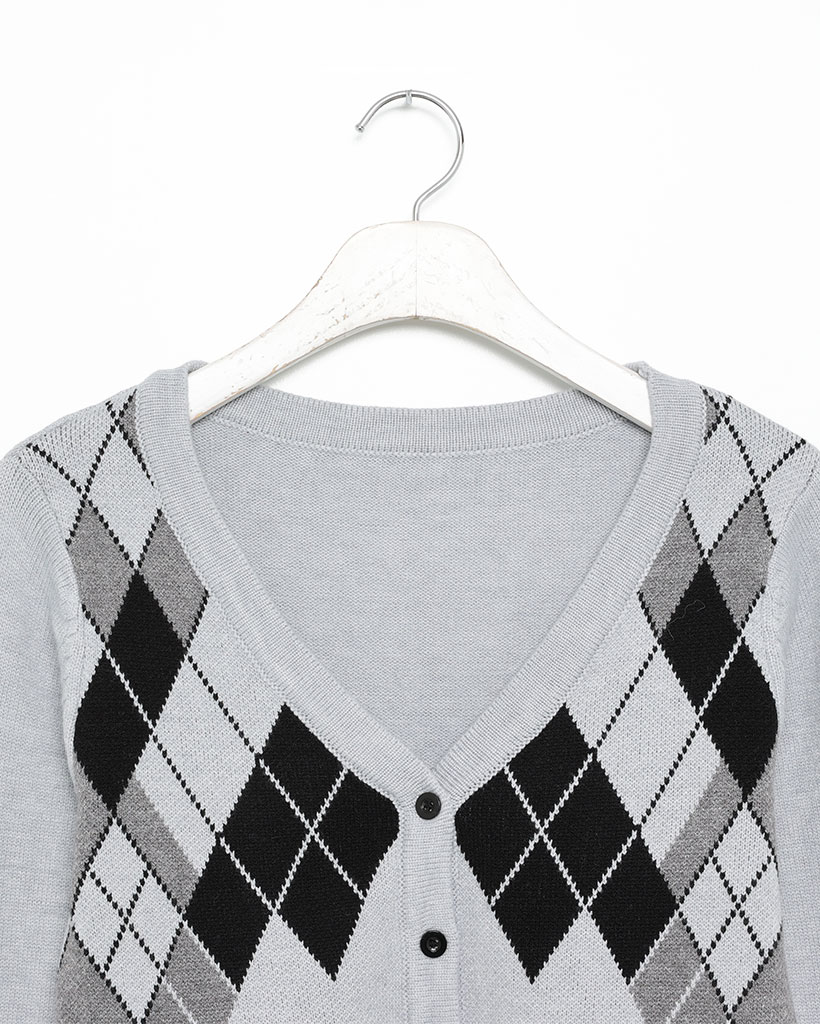 Vネックアーガイルクロップカーディガン