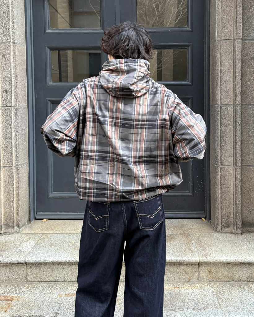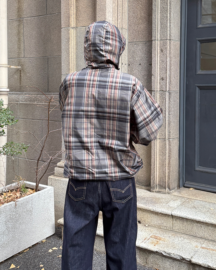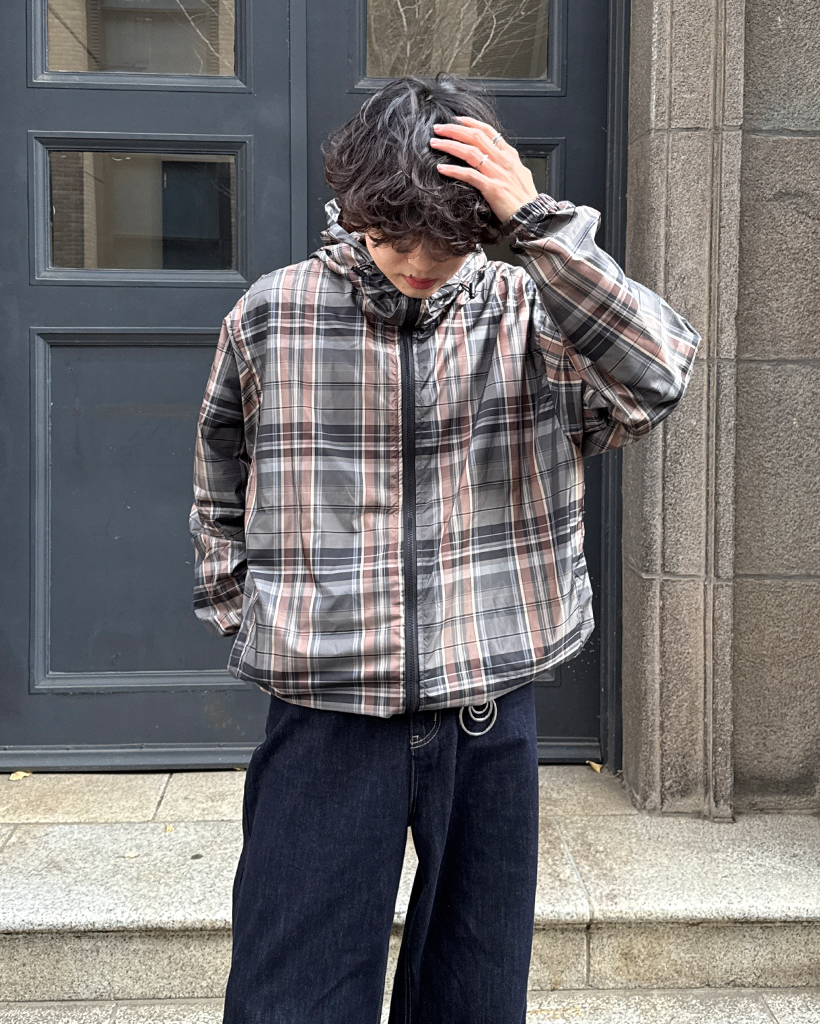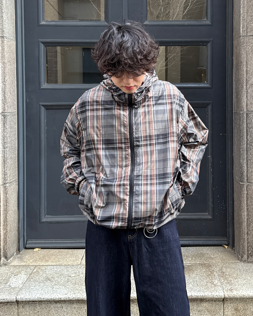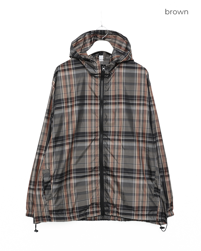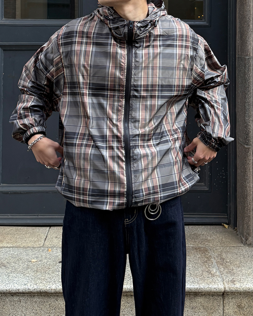 (ユニセックス)タータンチェックダブルジップウィンドブレーカー