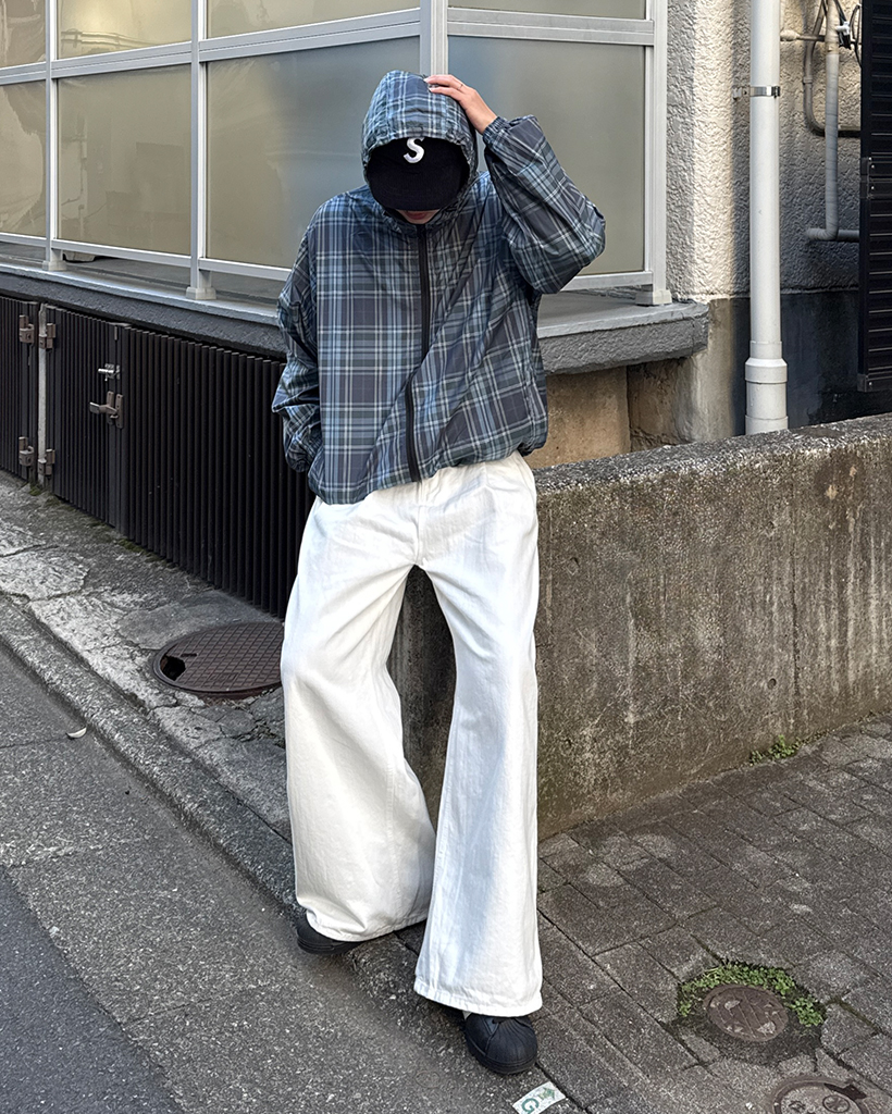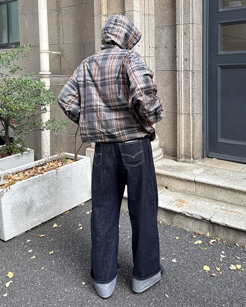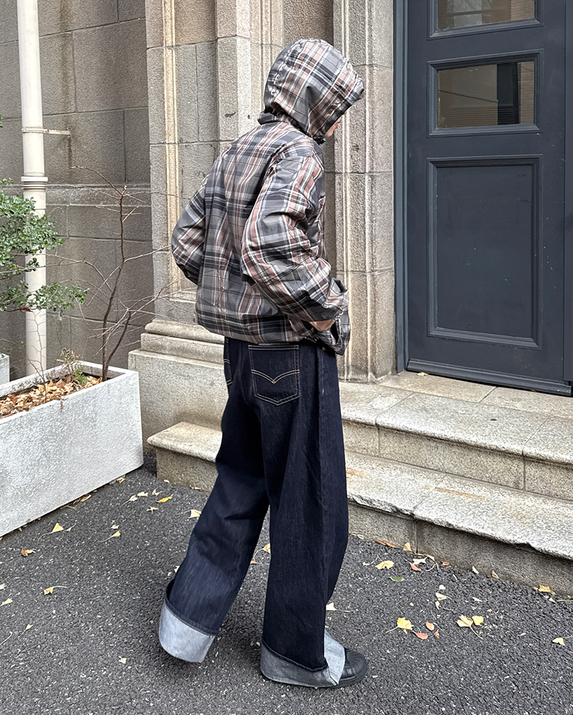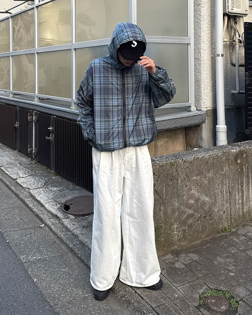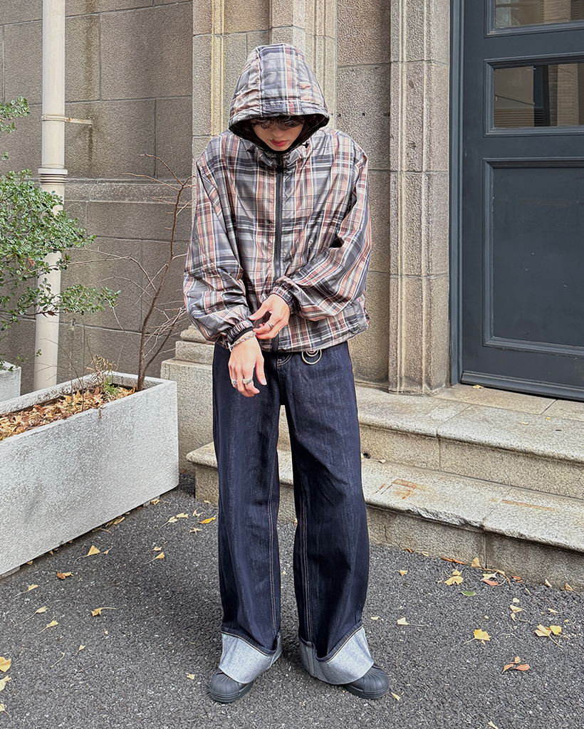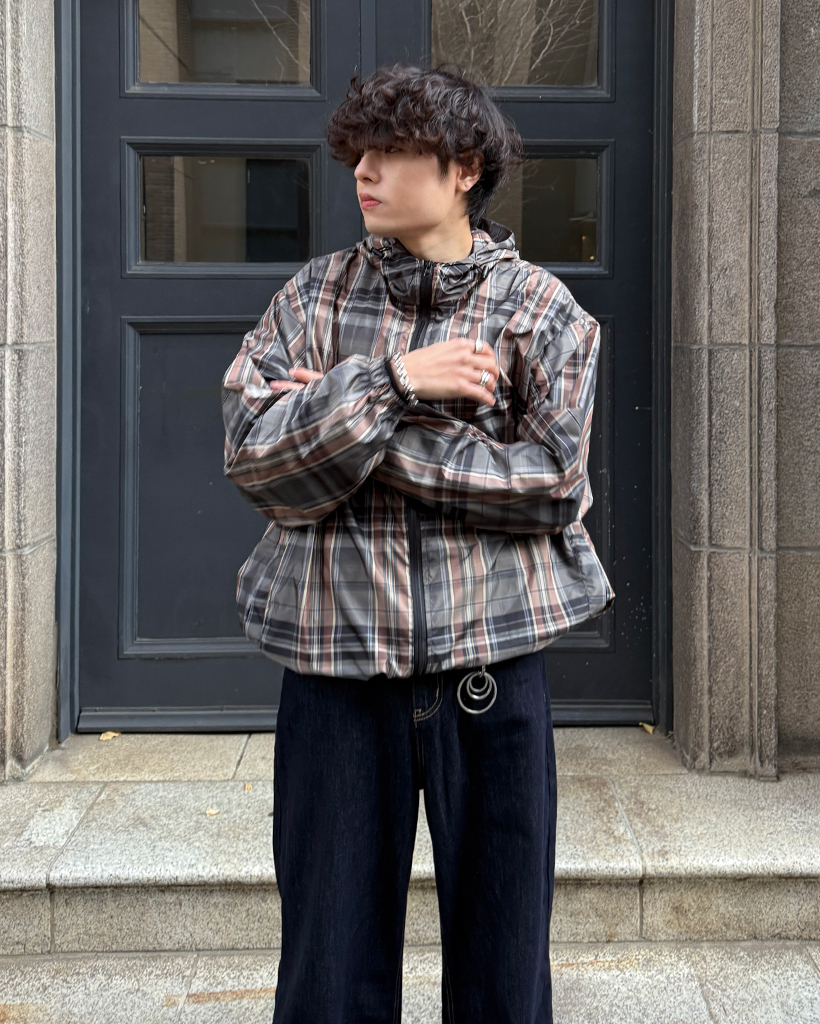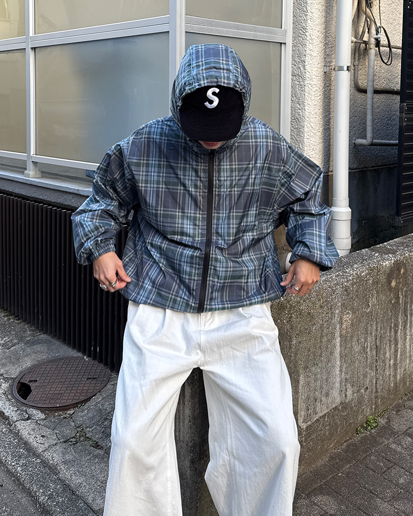 (ユニセックス)タータンチェックダブルジップウィンドブレーカー