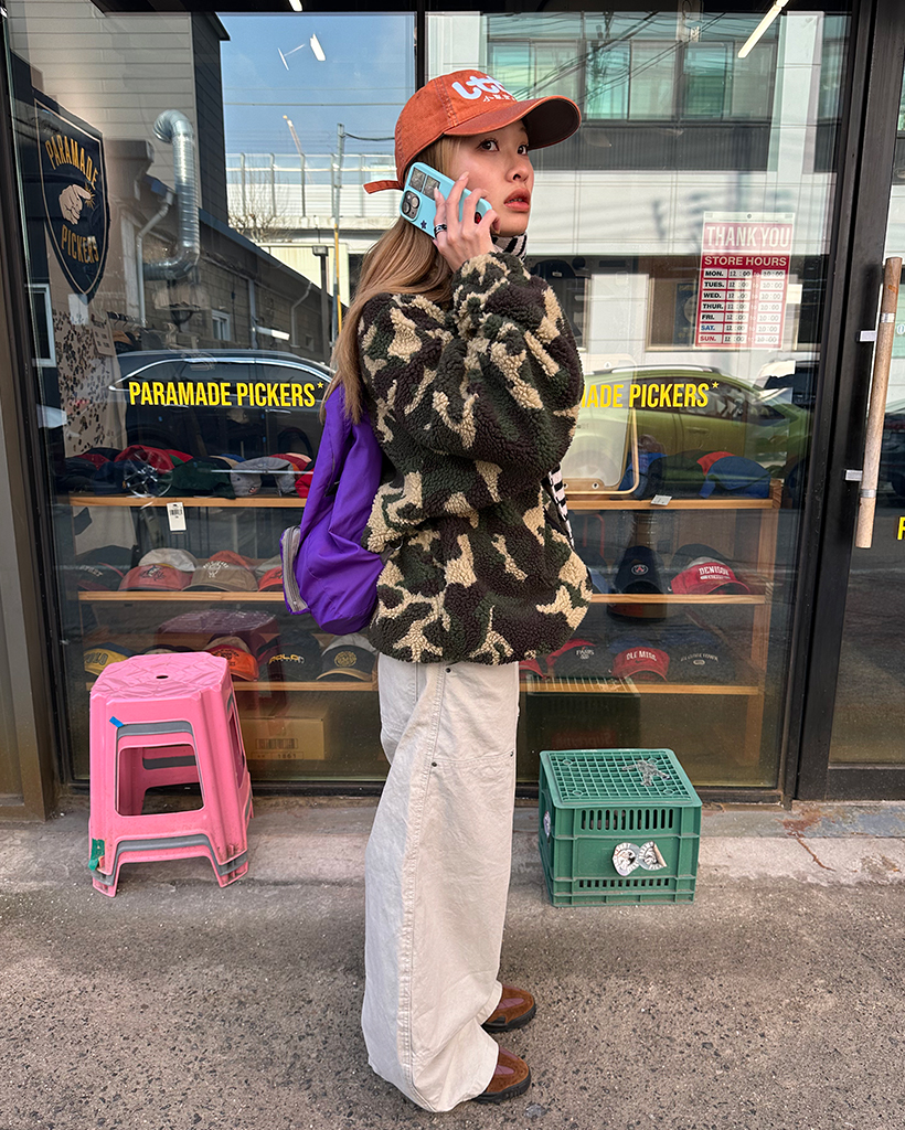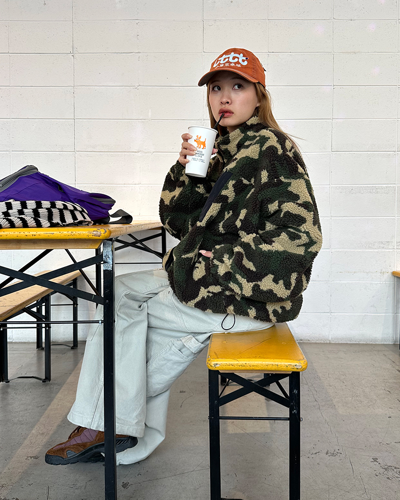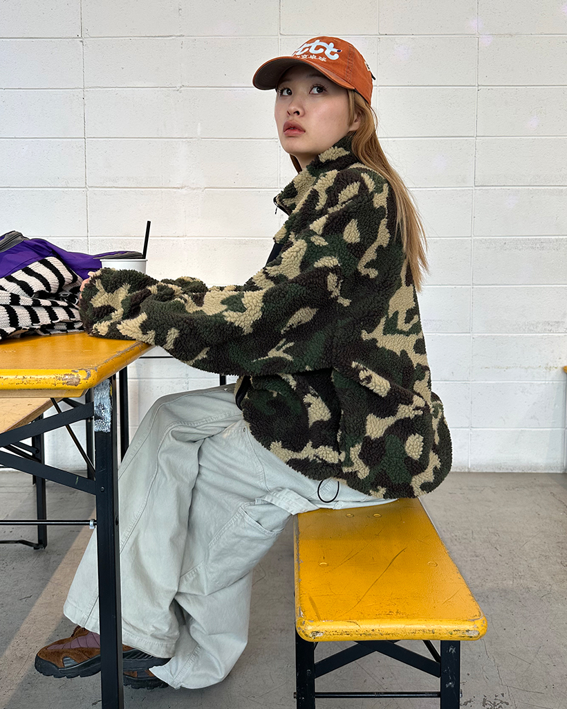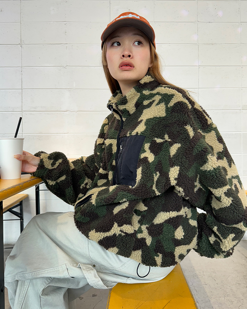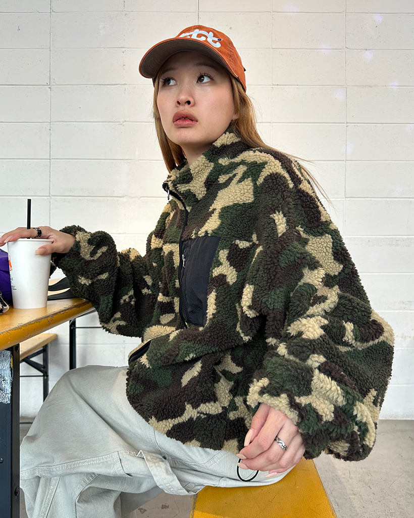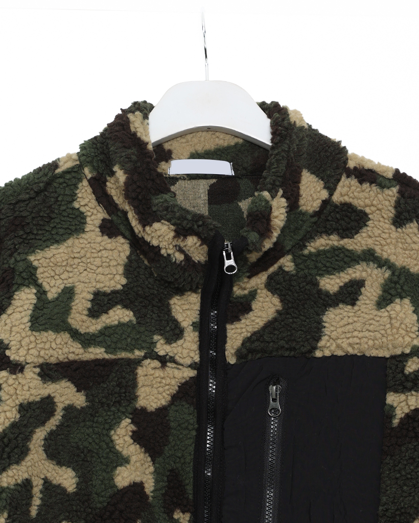 (ユニセックス)カモフラバストスクエアポケットボアブルゾン