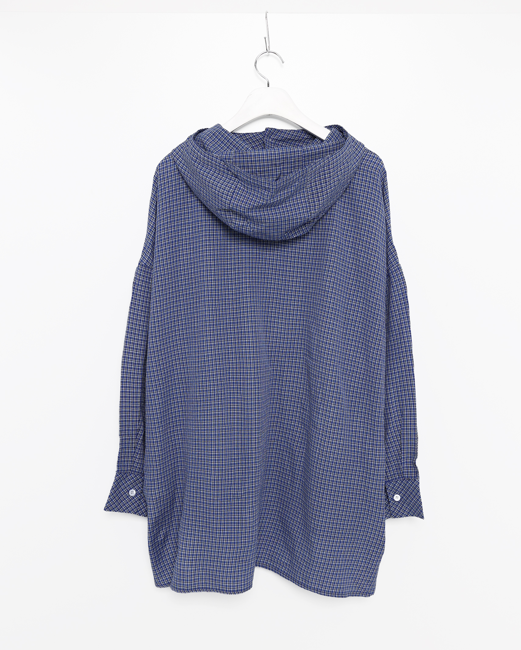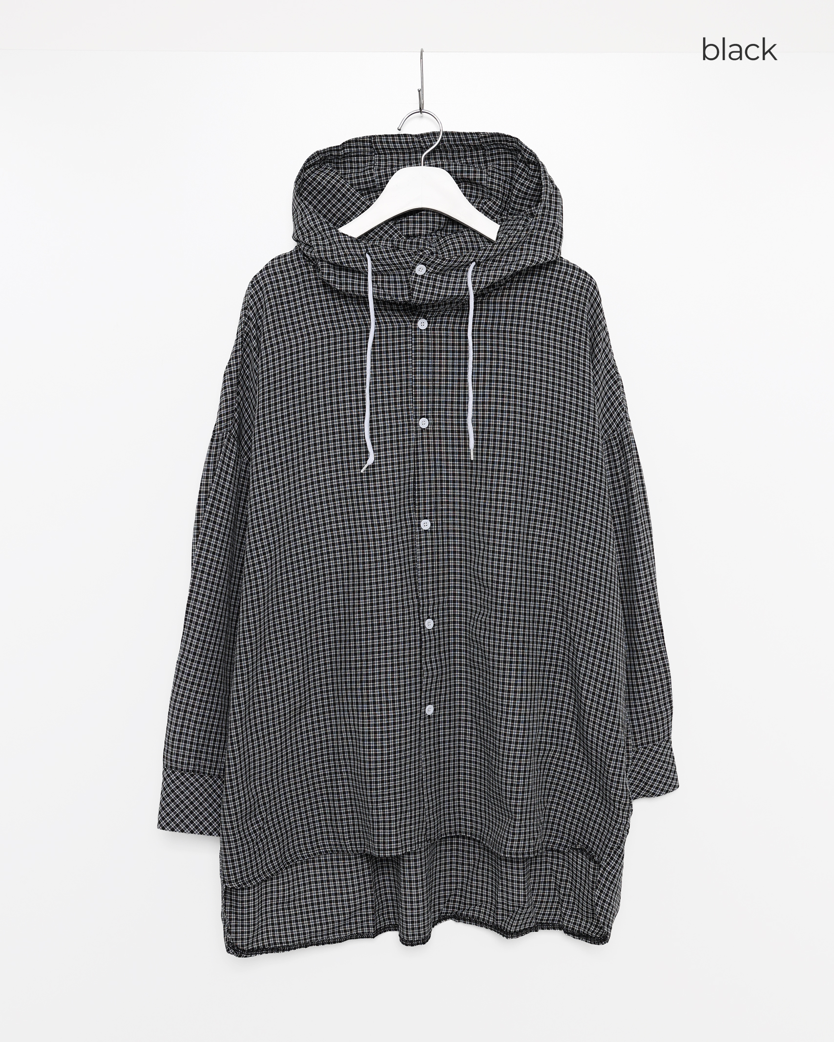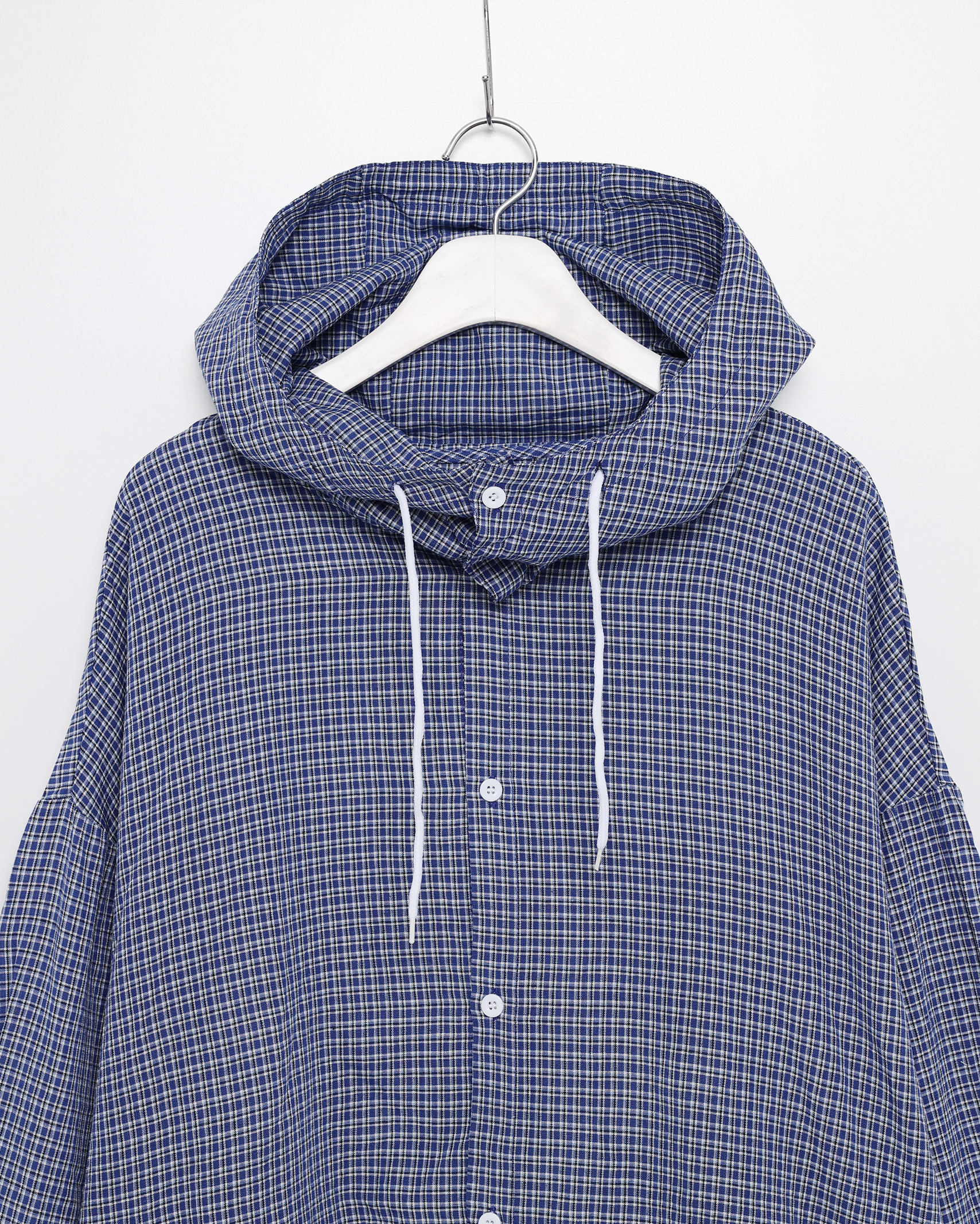 チェックフーディーコットンシャツ