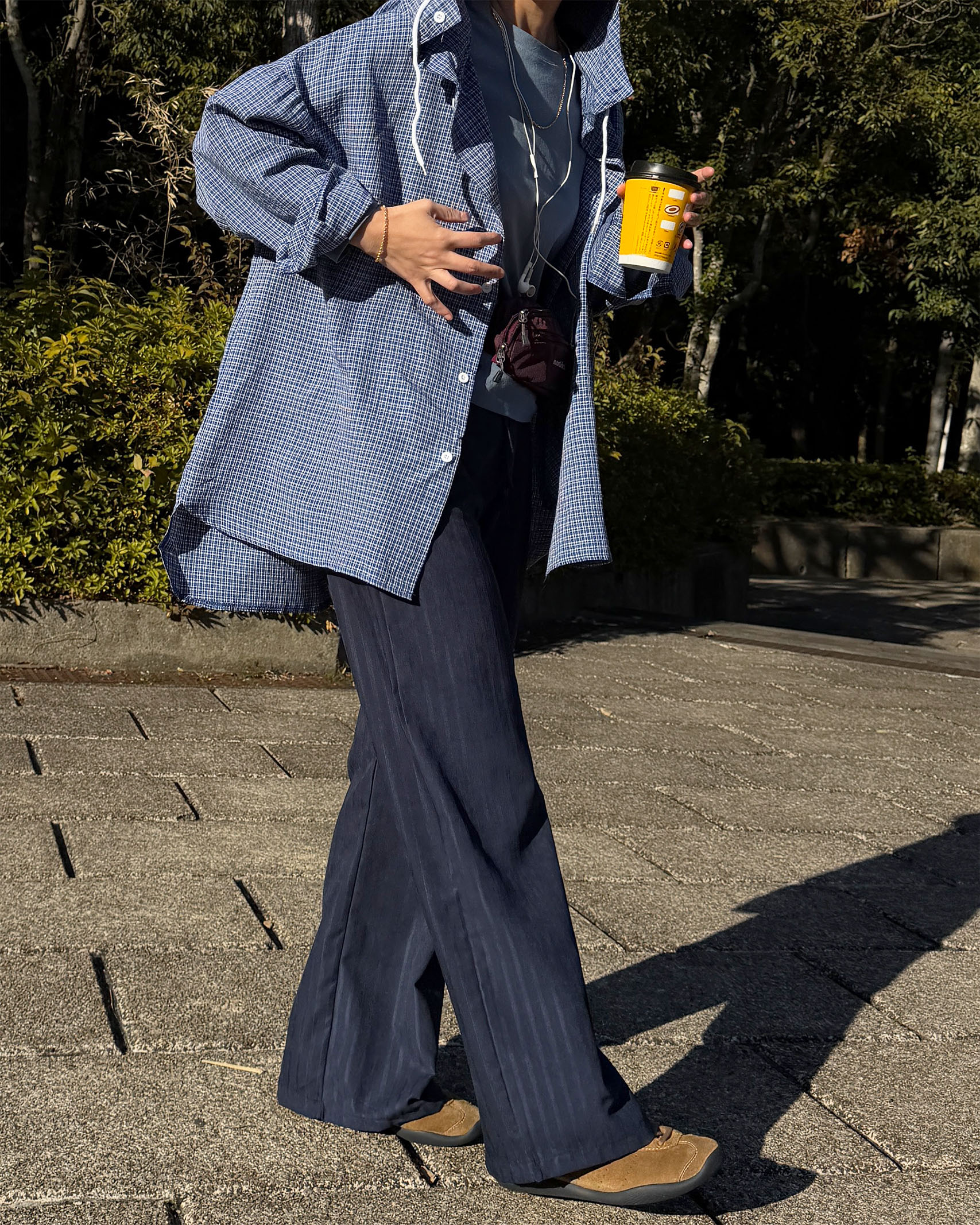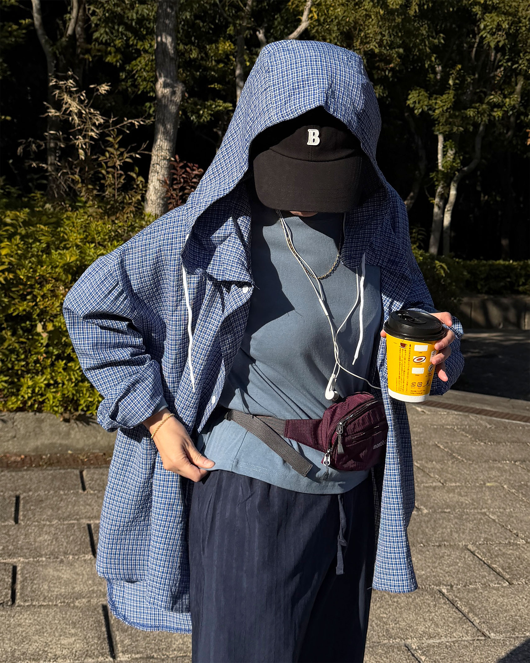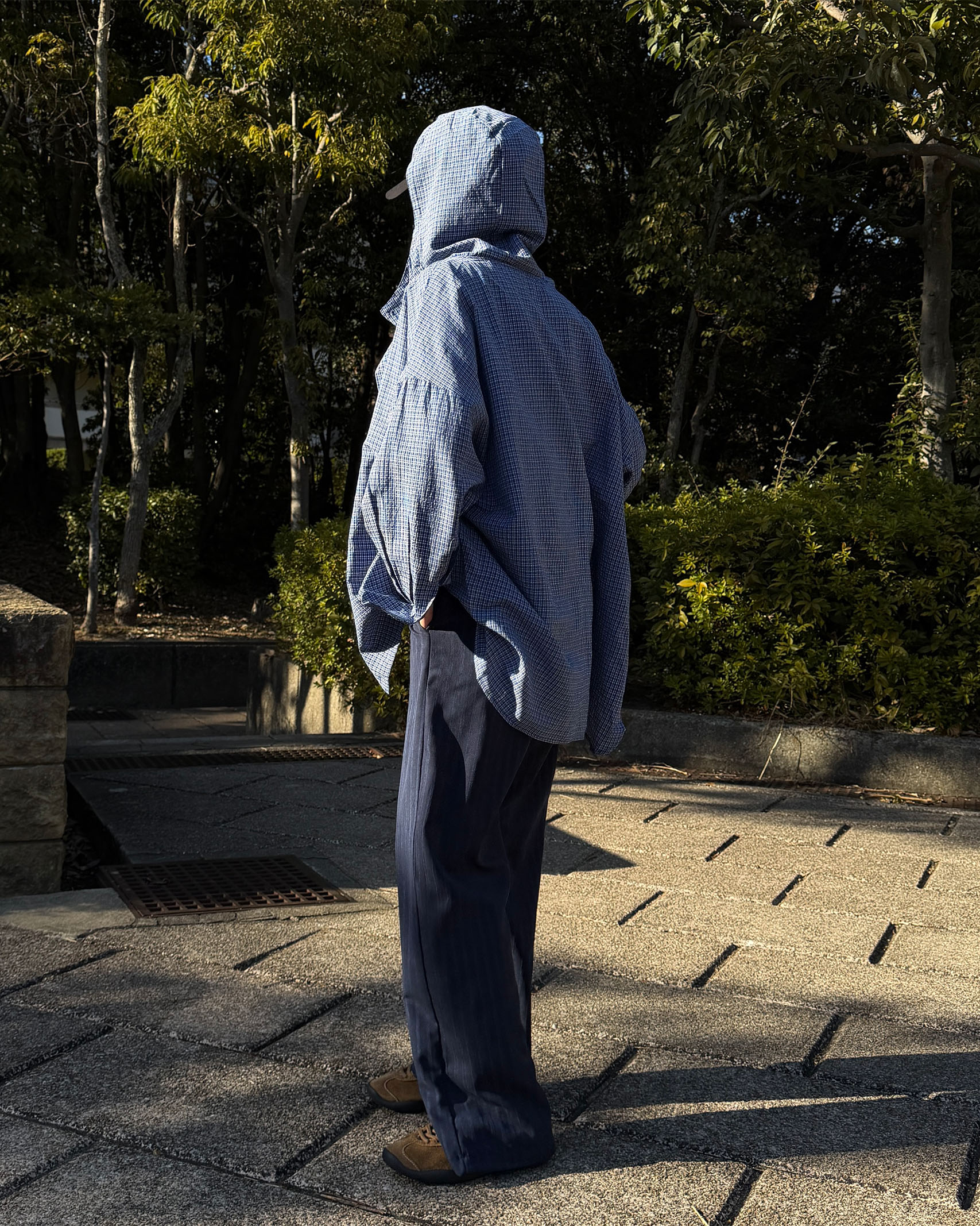 チェックフーディーコットンシャツ