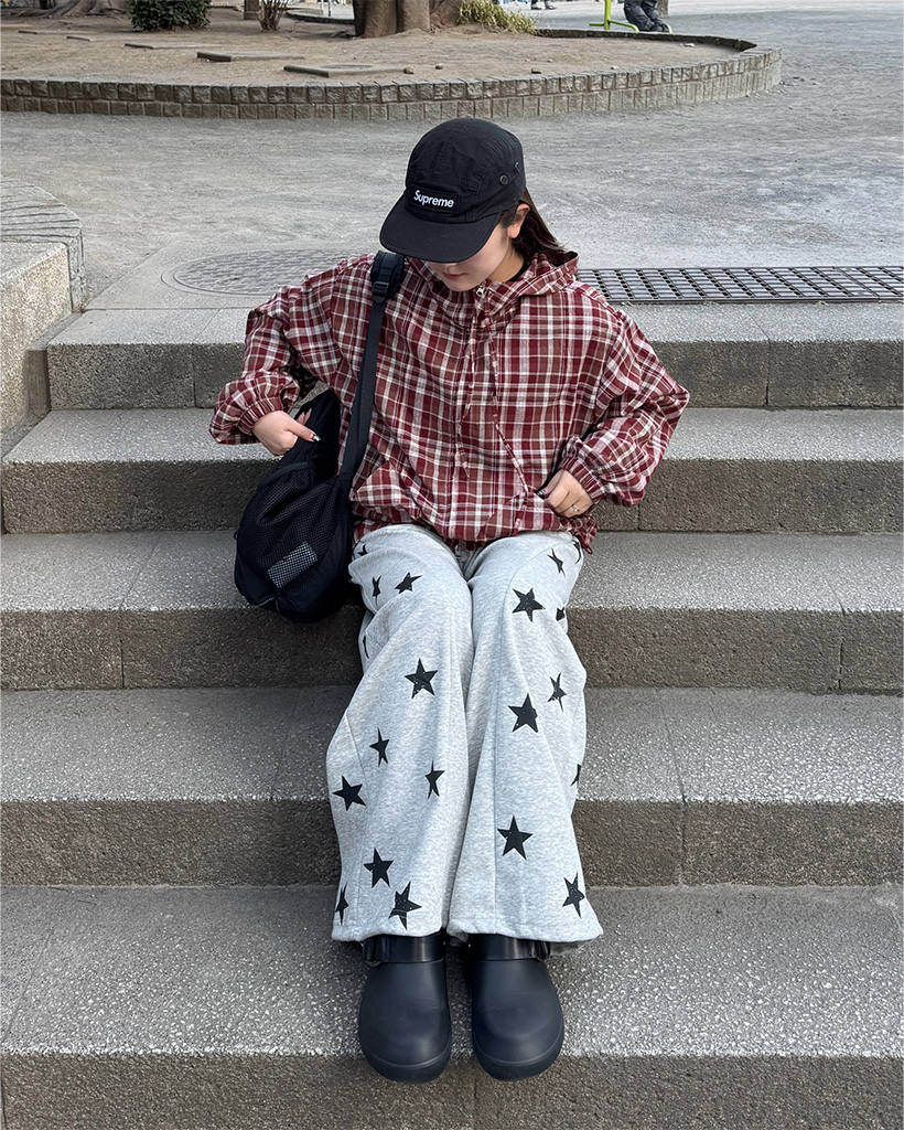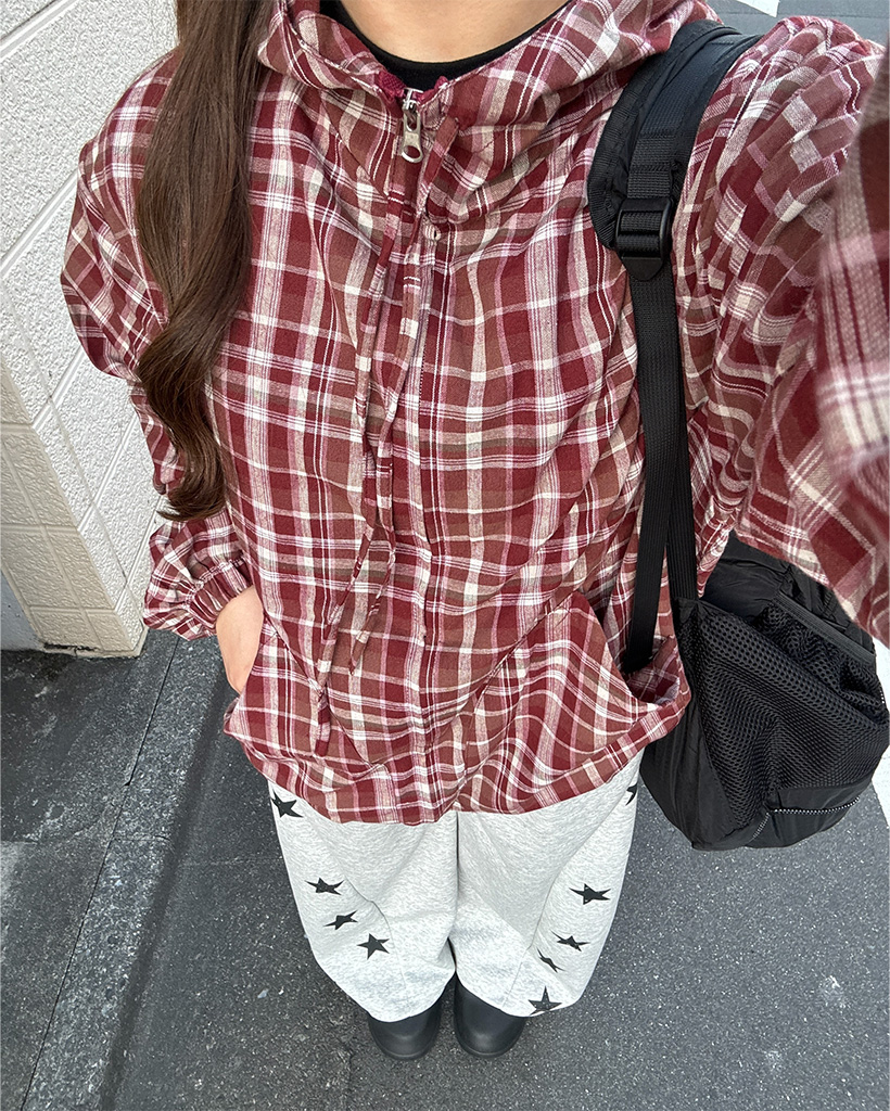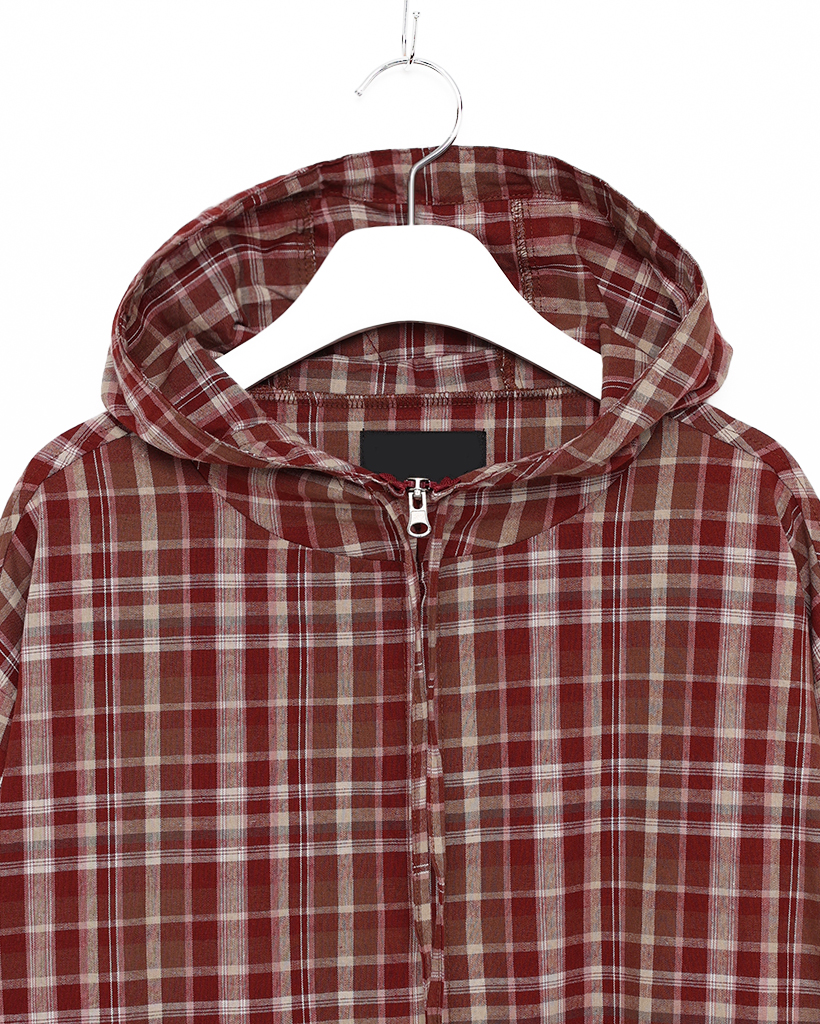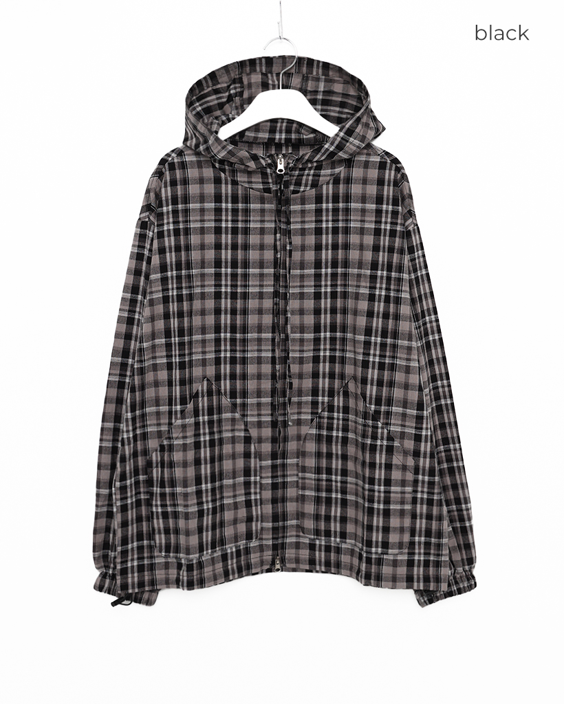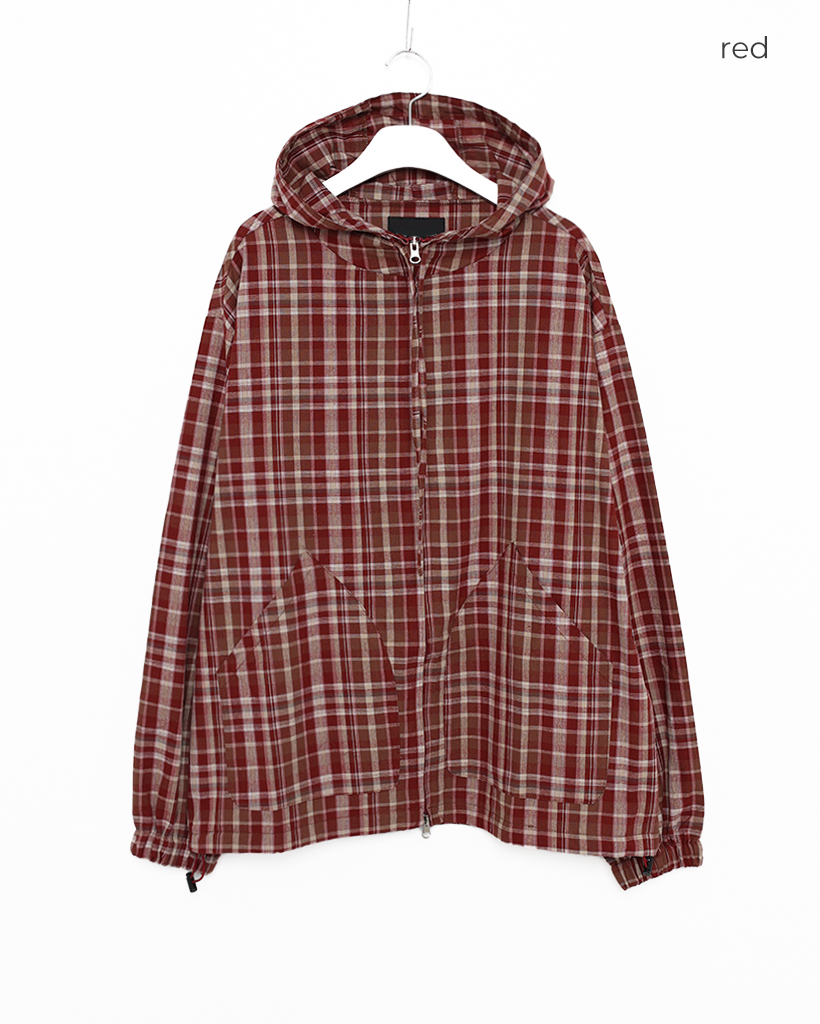(ユニセックス)2WAYチェックフードウィンドブレーカー