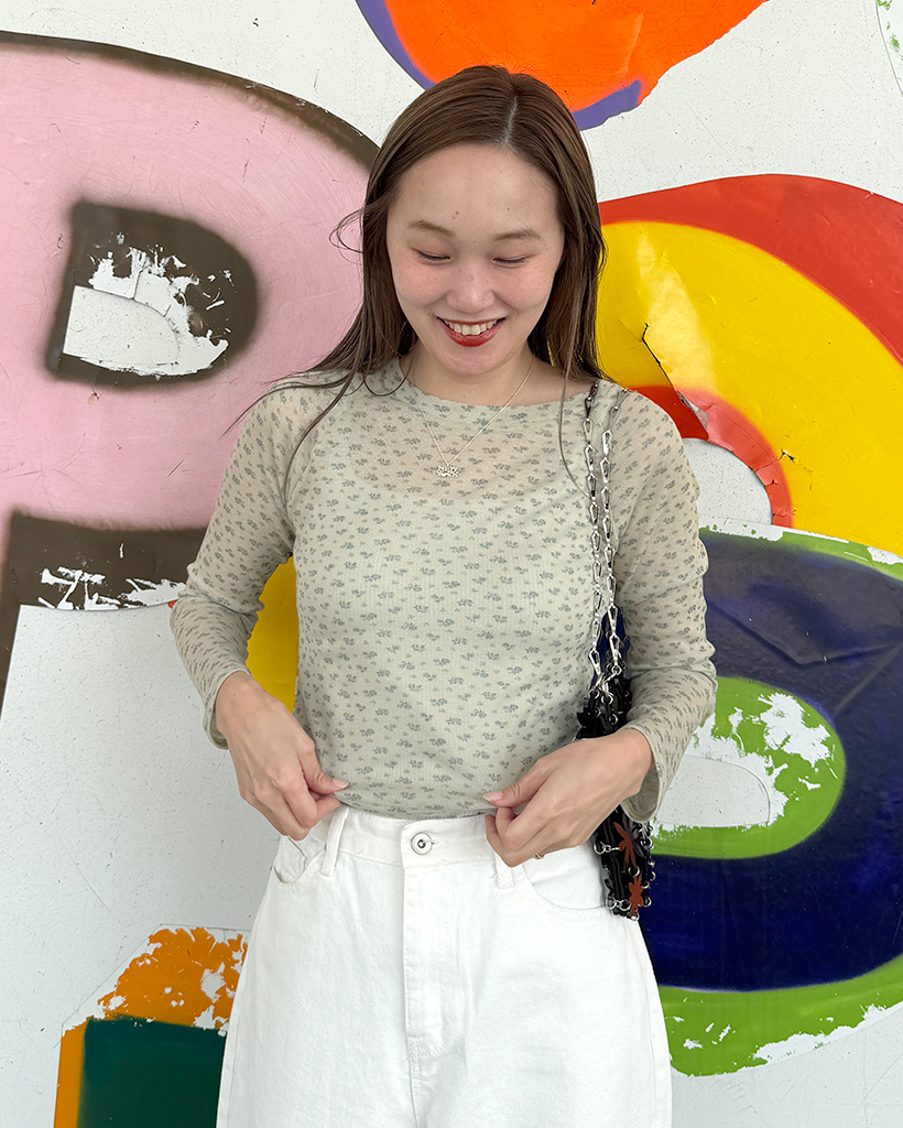 ミニフラワーパターンシースルーTシャツ