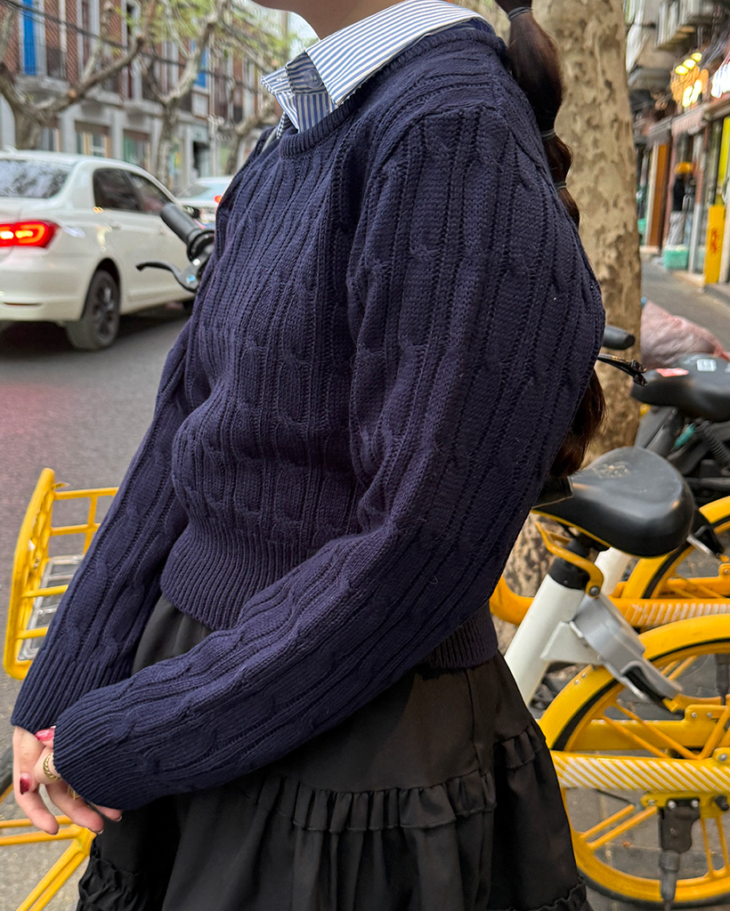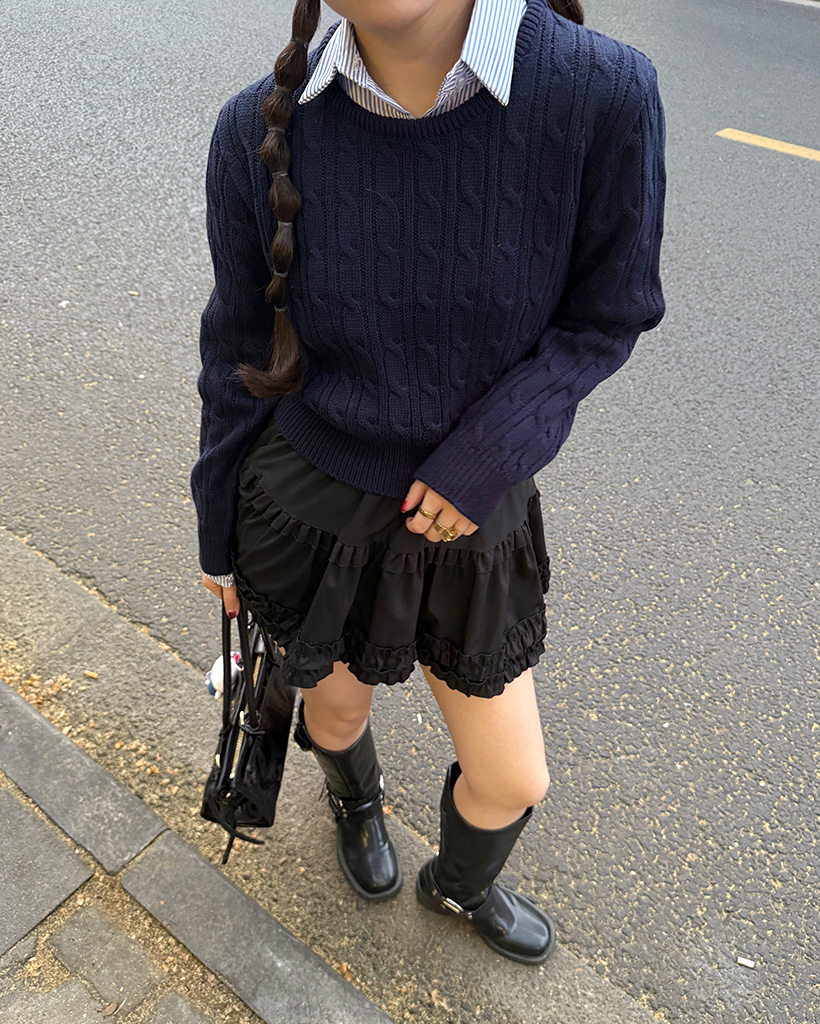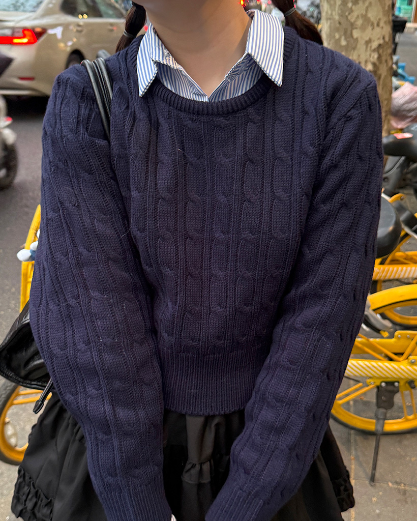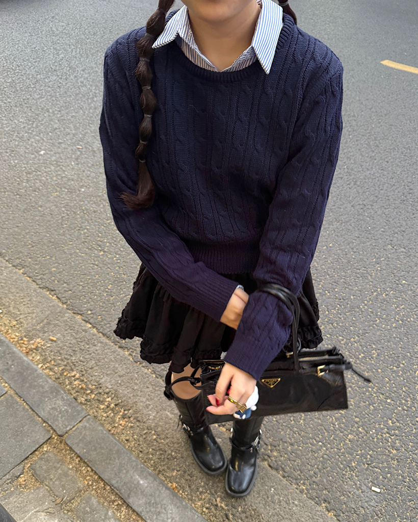 ラウンドケーブルクロップドニット