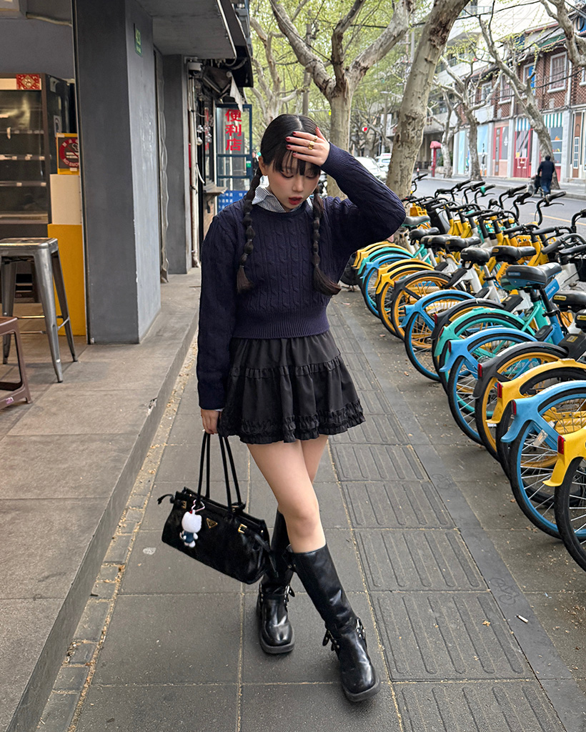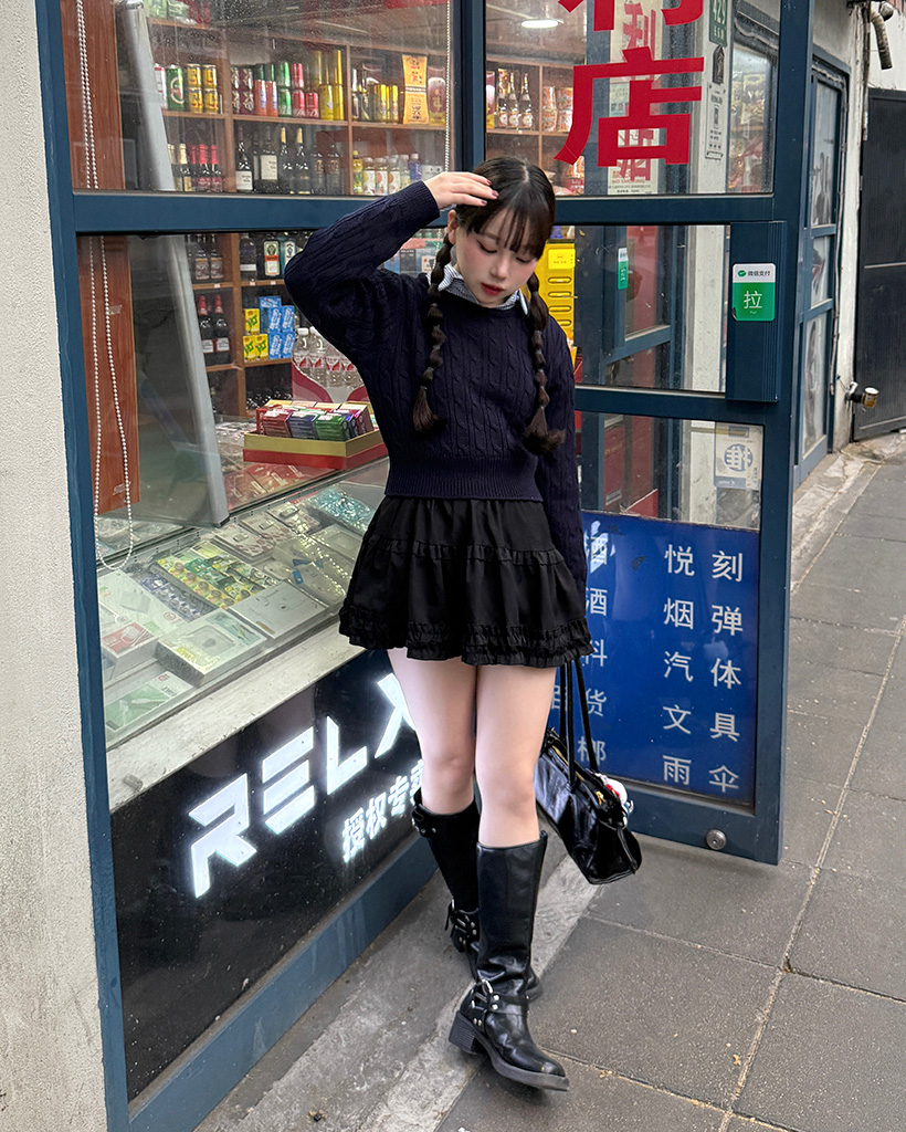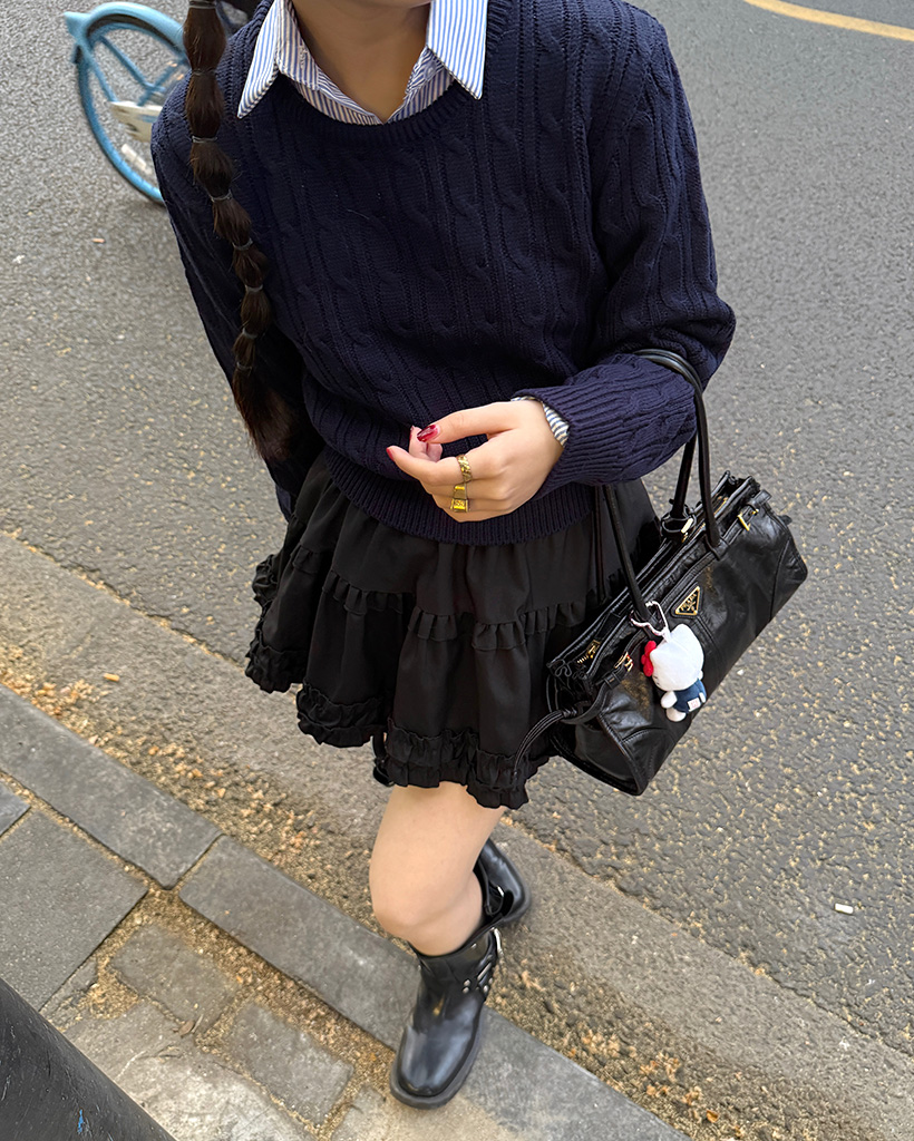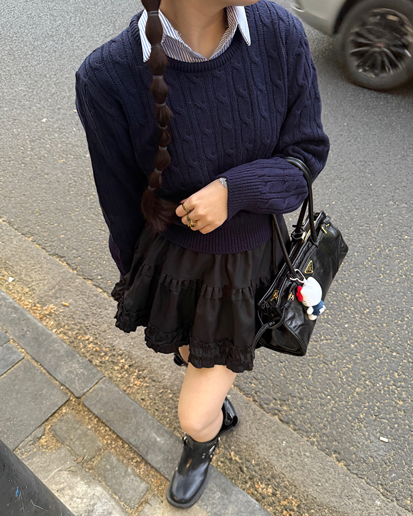 ラウンドケーブルクロップドニット