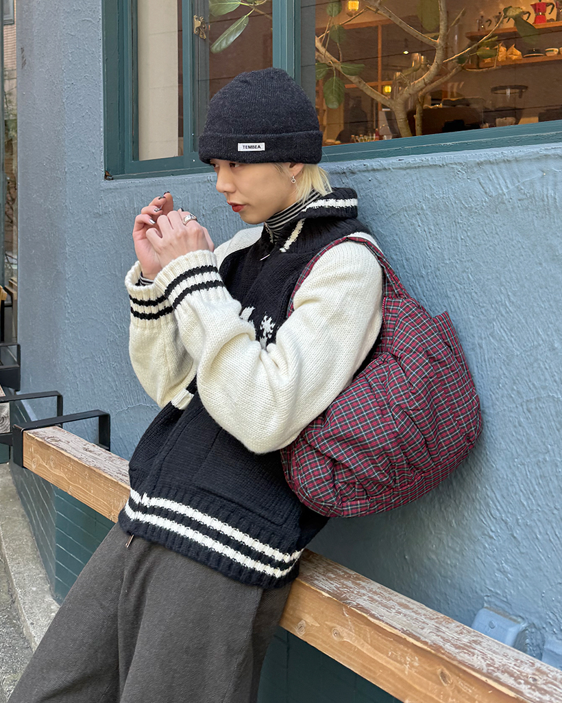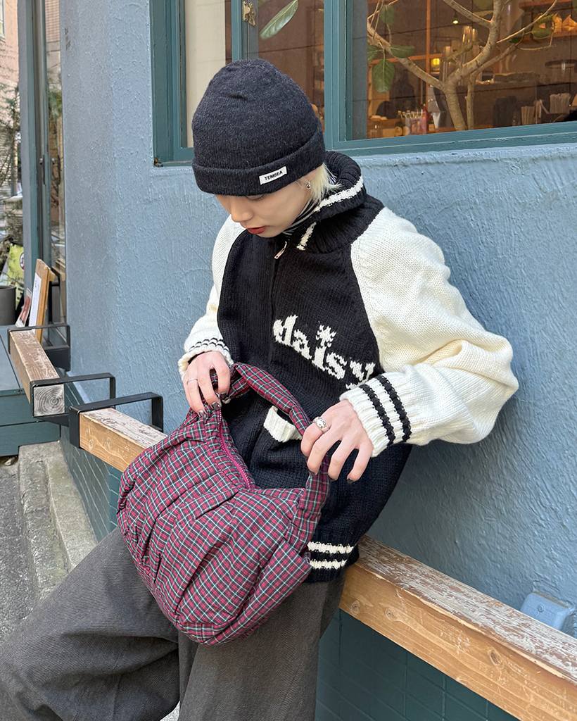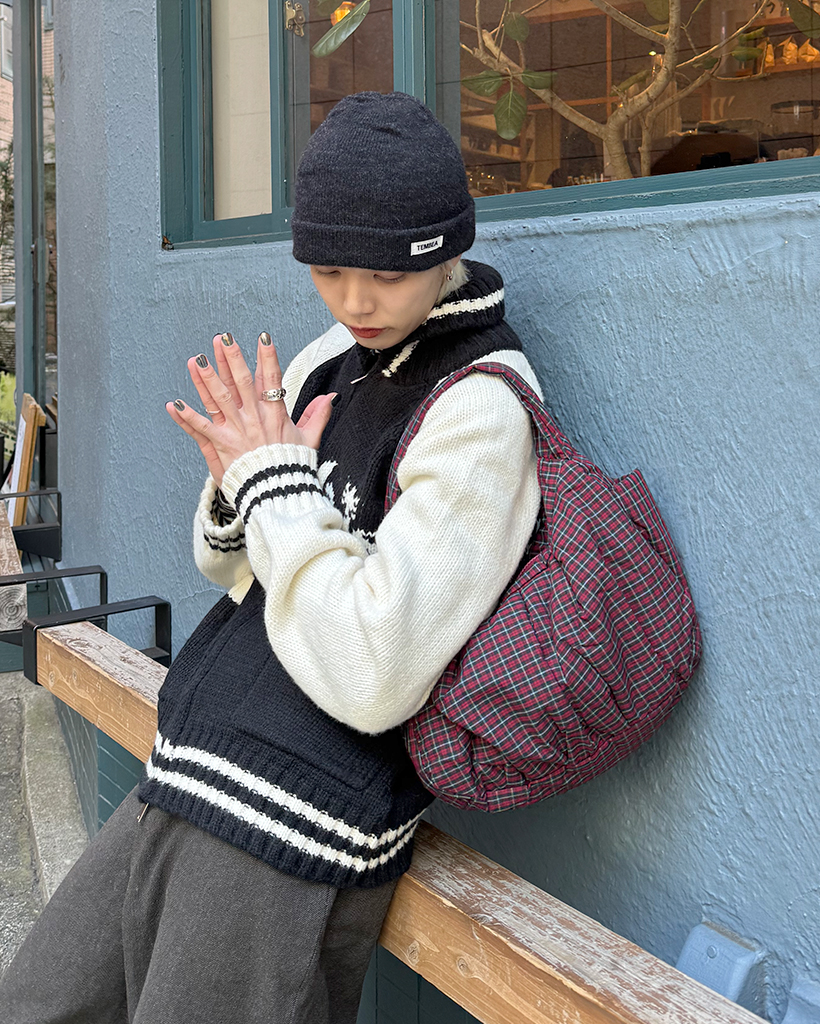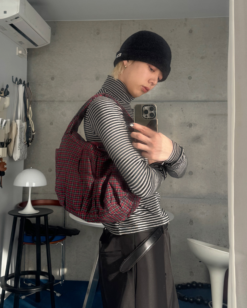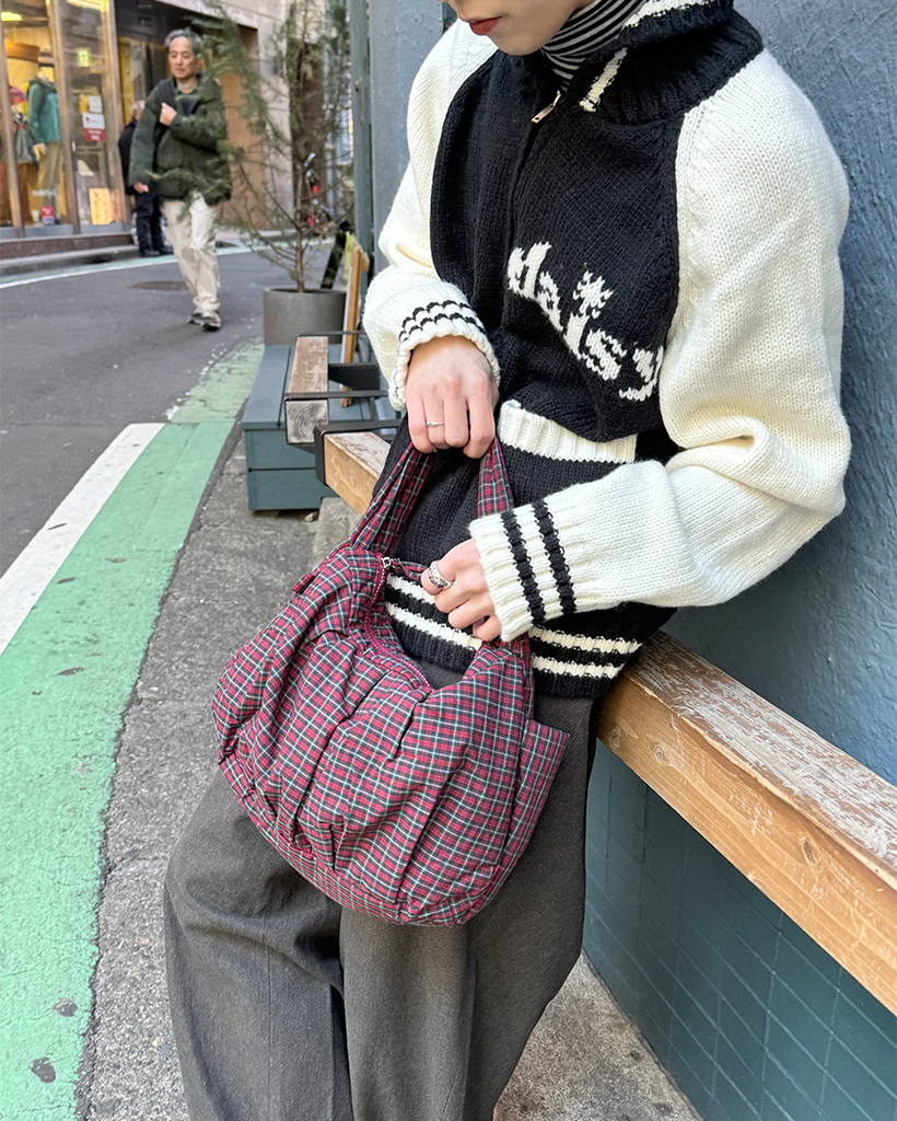 チェックシャーリングショルダーバッグ