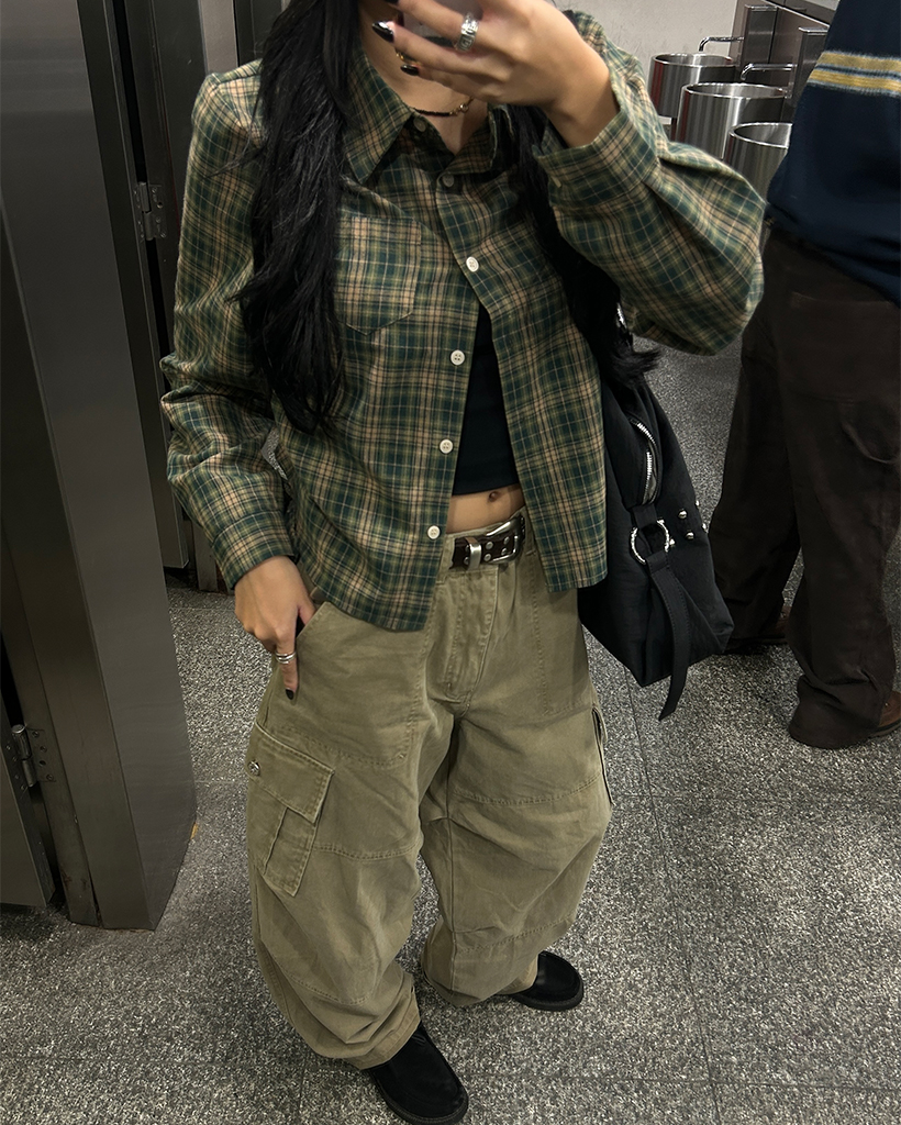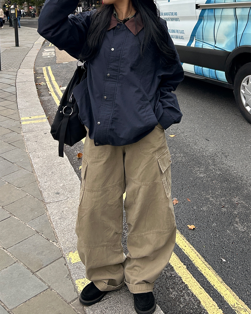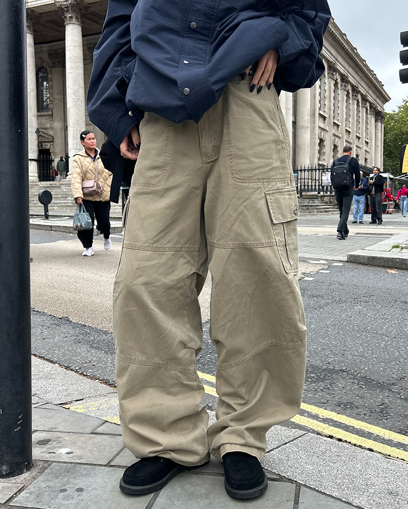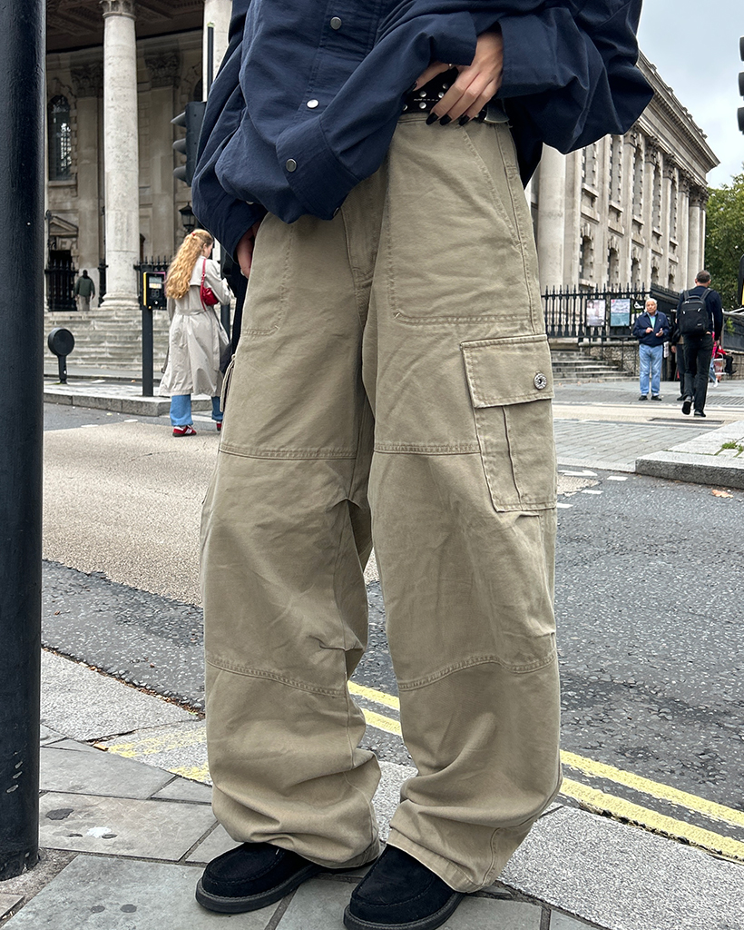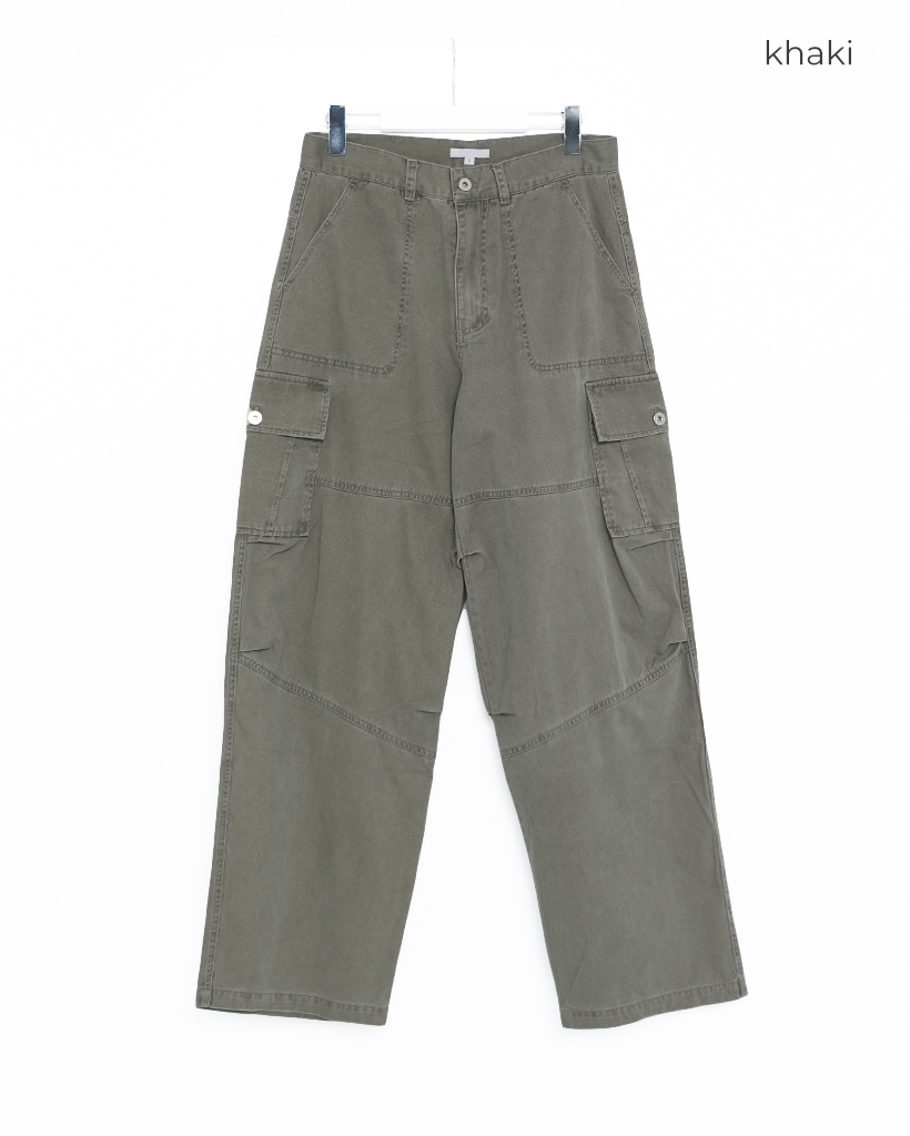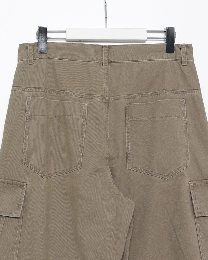 (ユニセックス)ビンテージウォッシュフラップカーゴポケットパンツ
