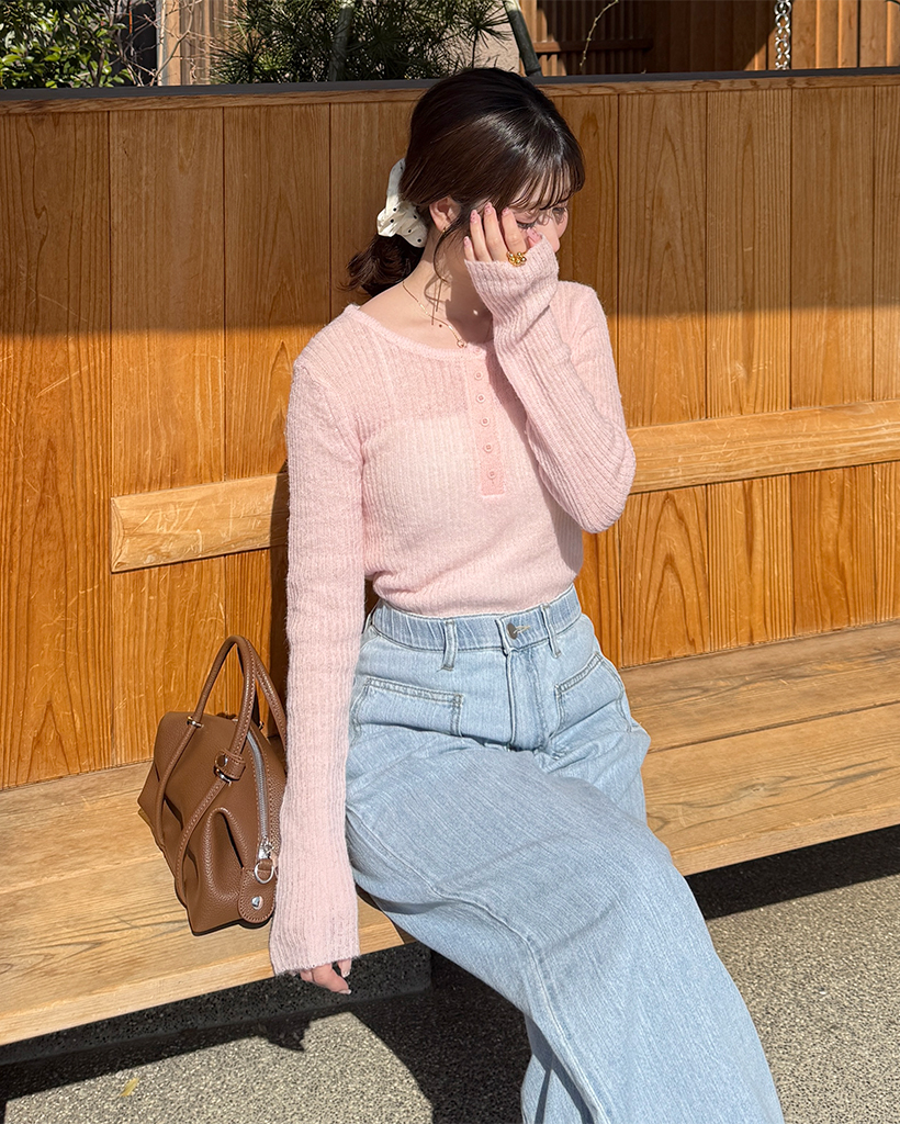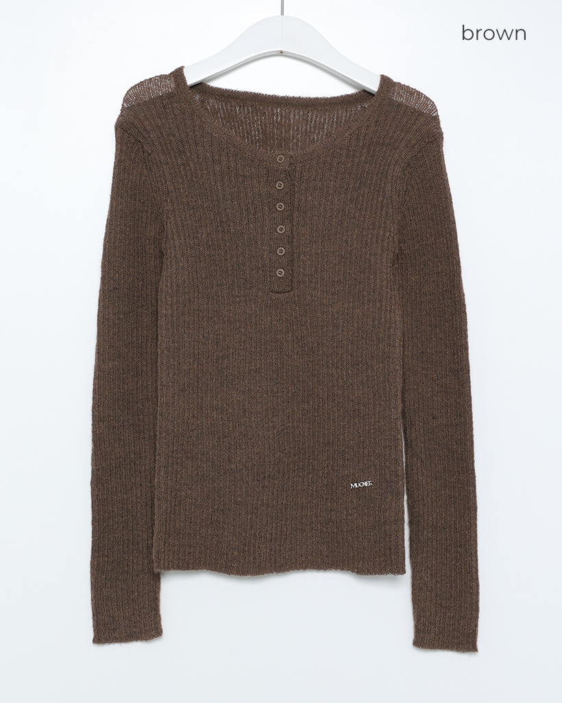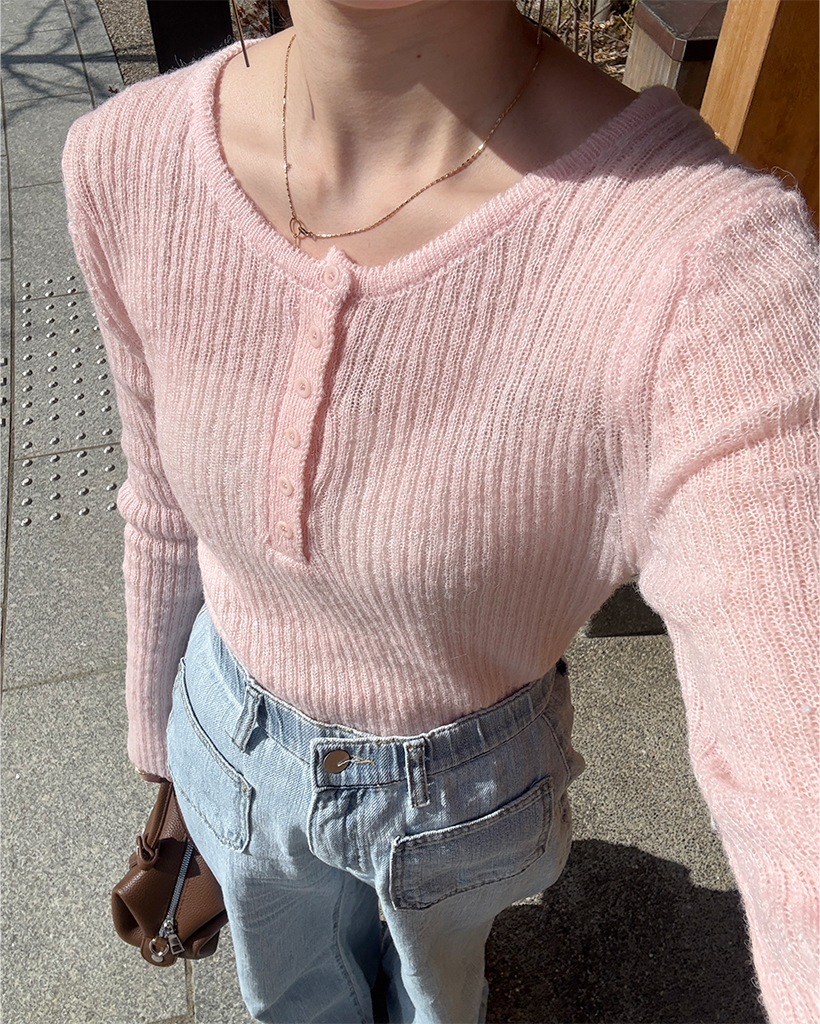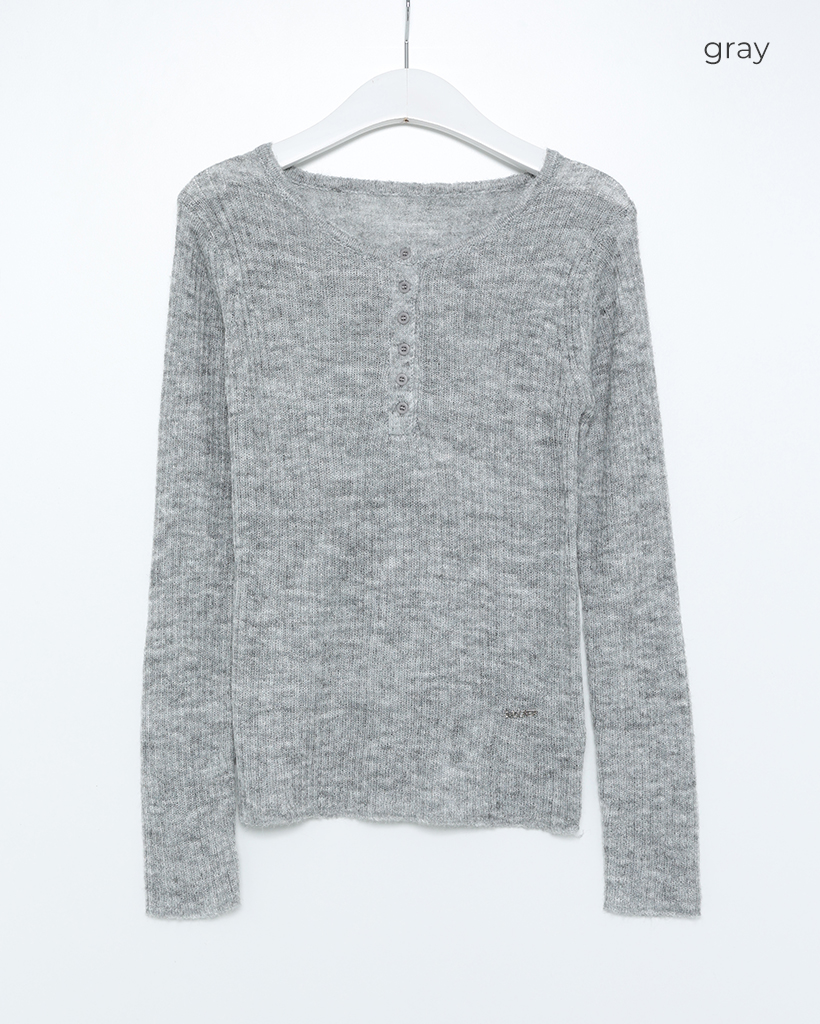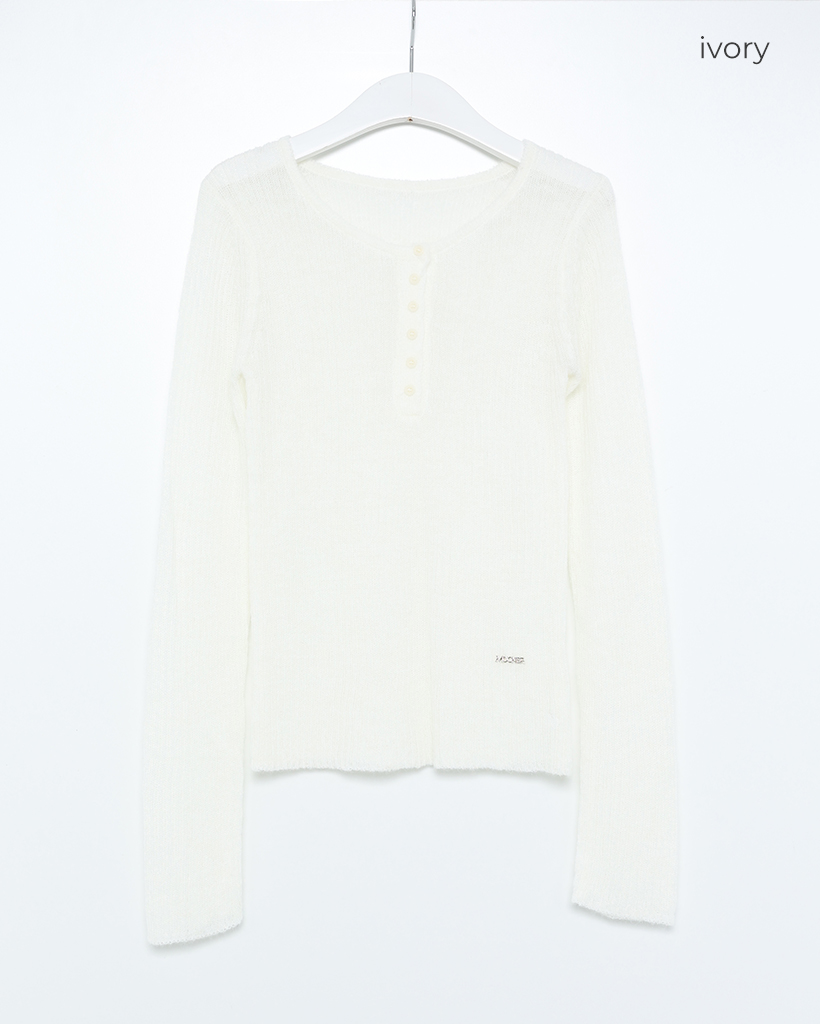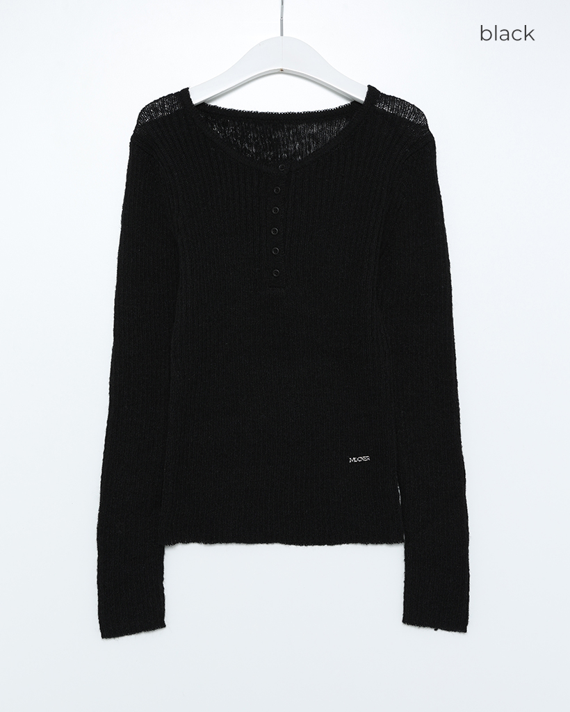 ハーフオープンボタンリブニット