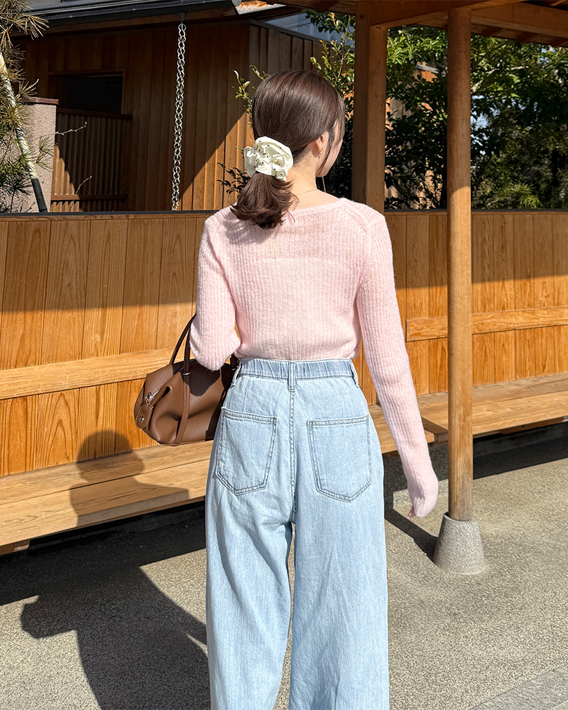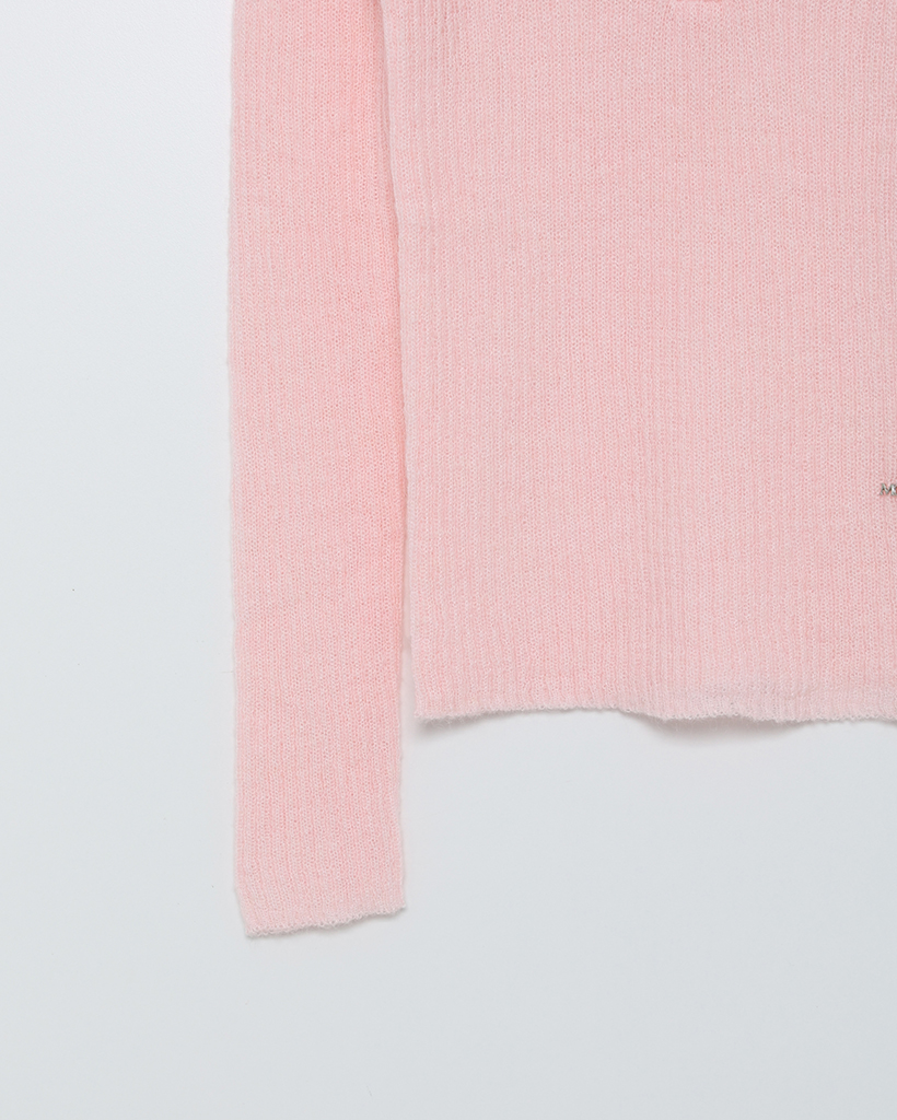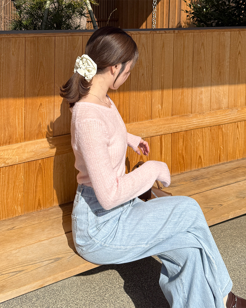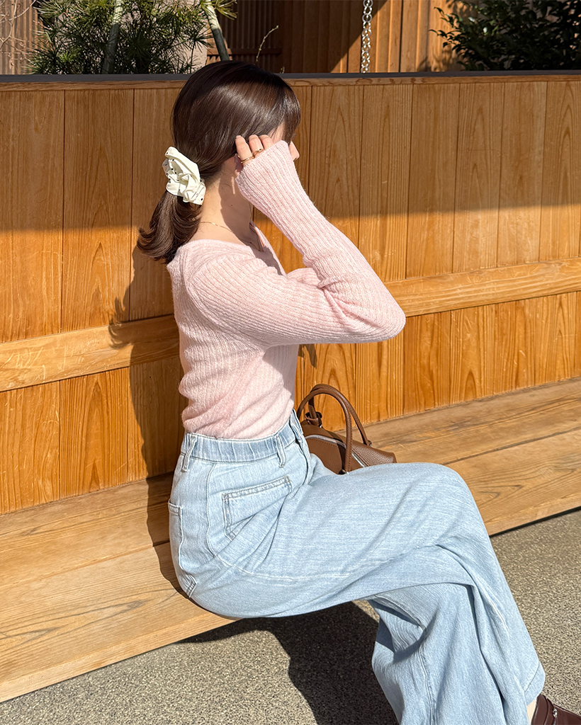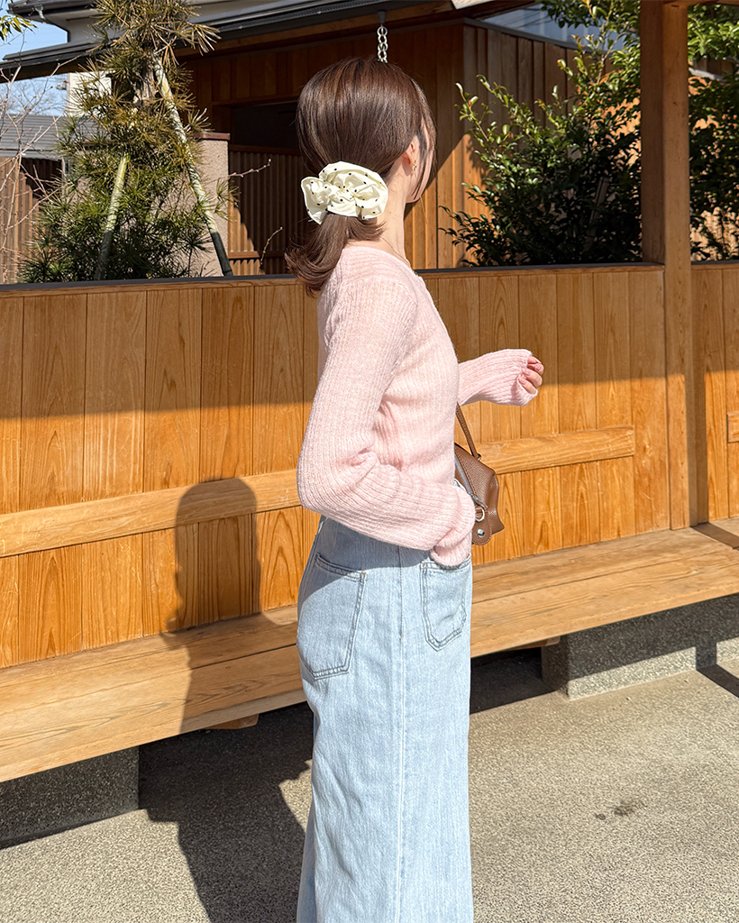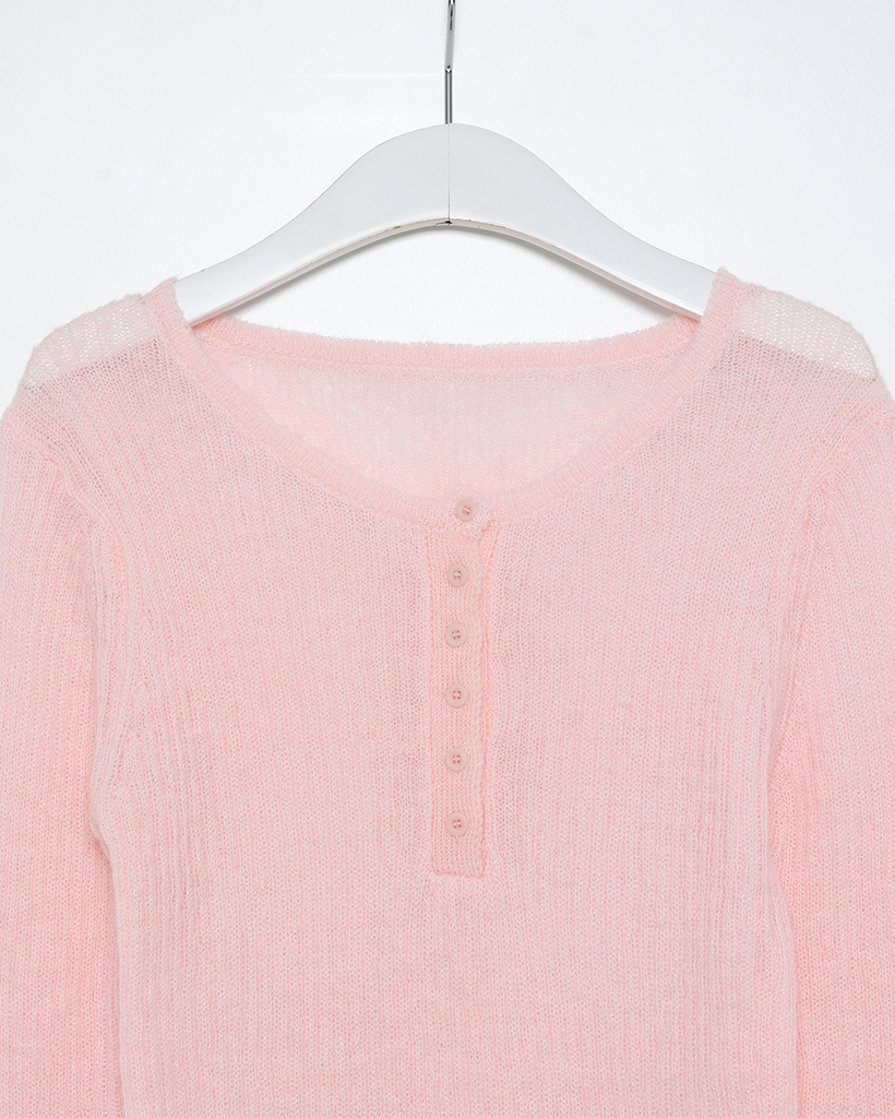 ハーフオープンボタンリブニット