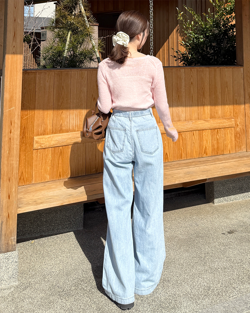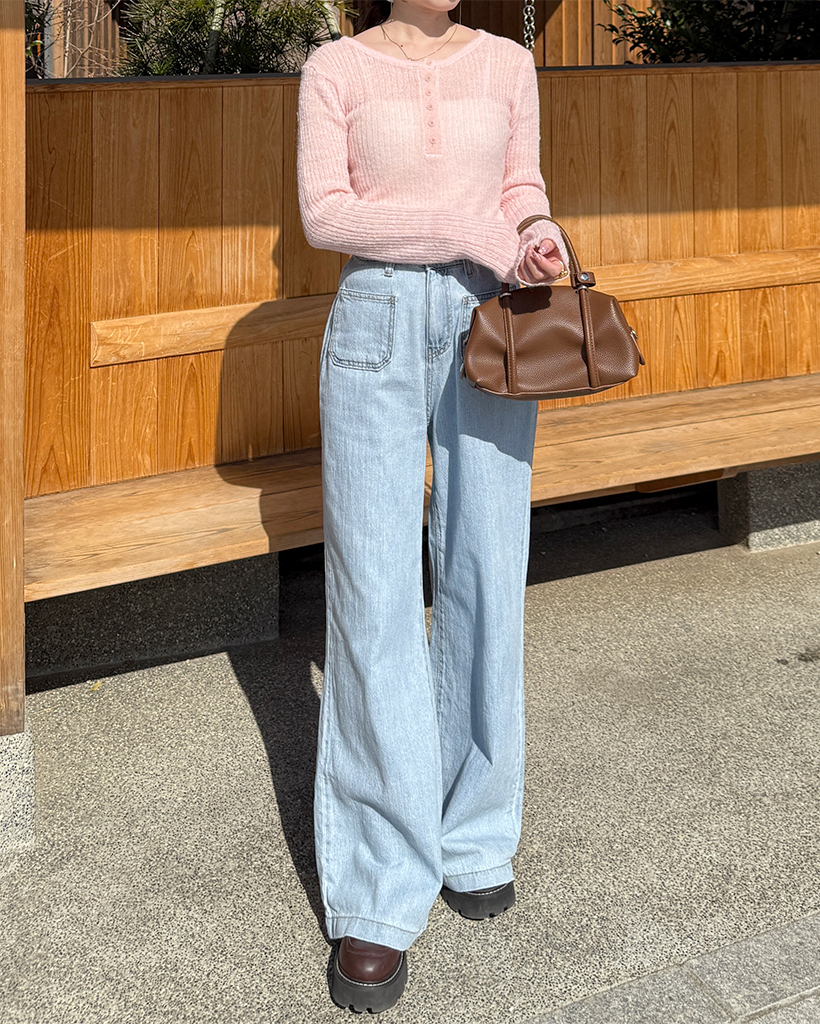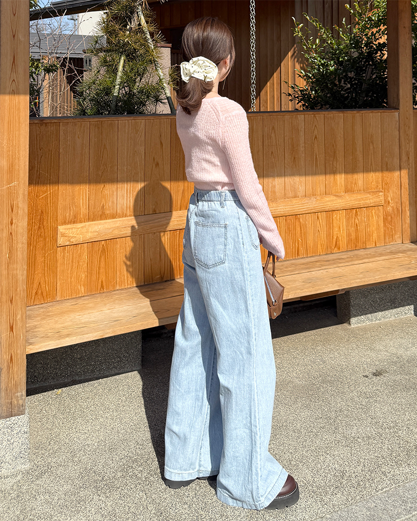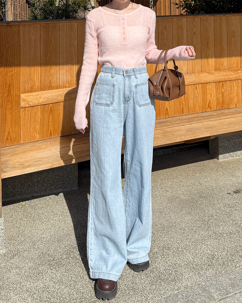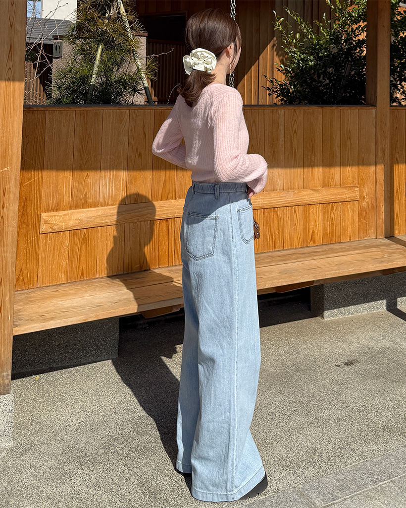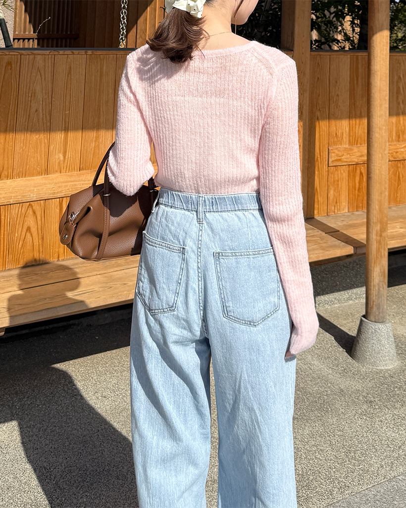 ハーフオープンボタンリブニット