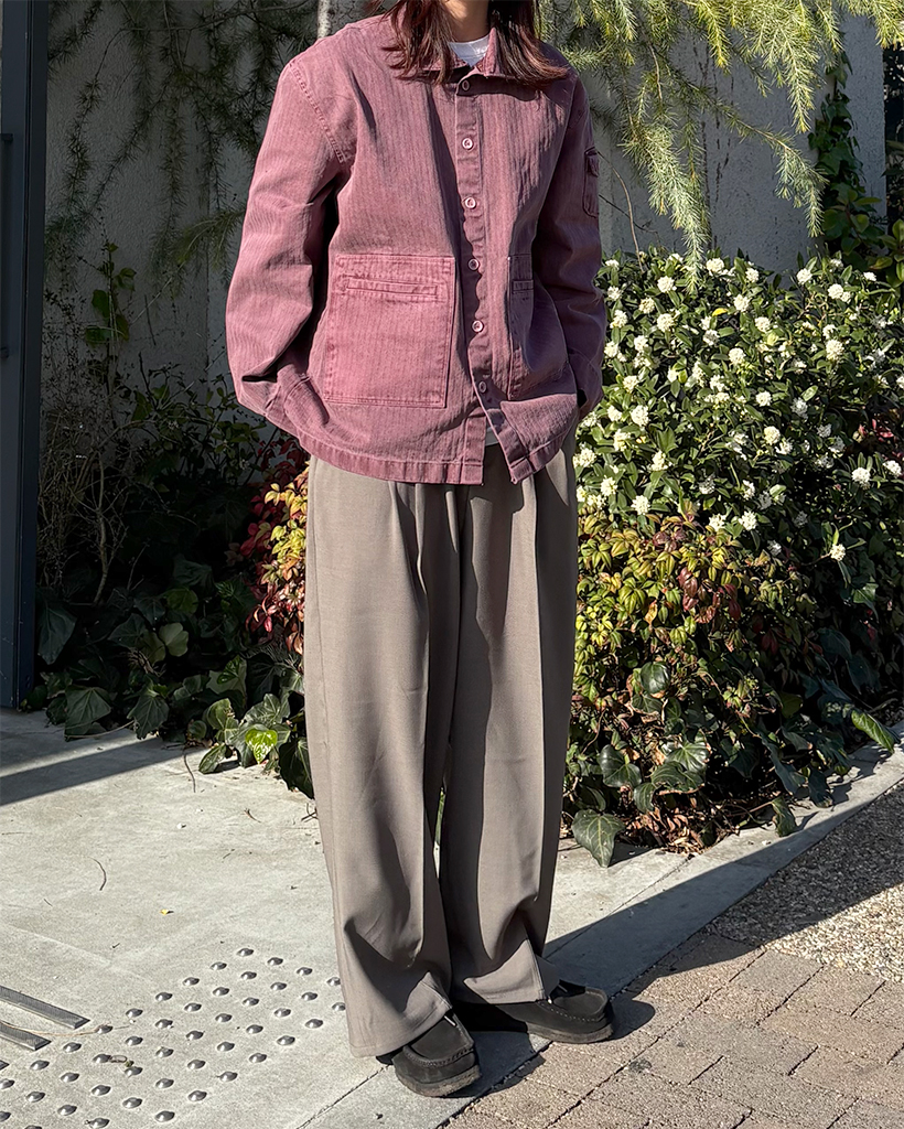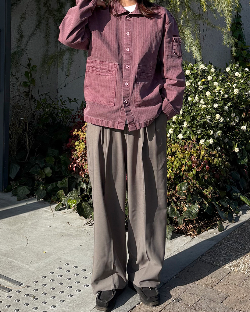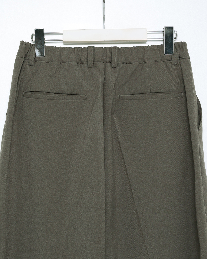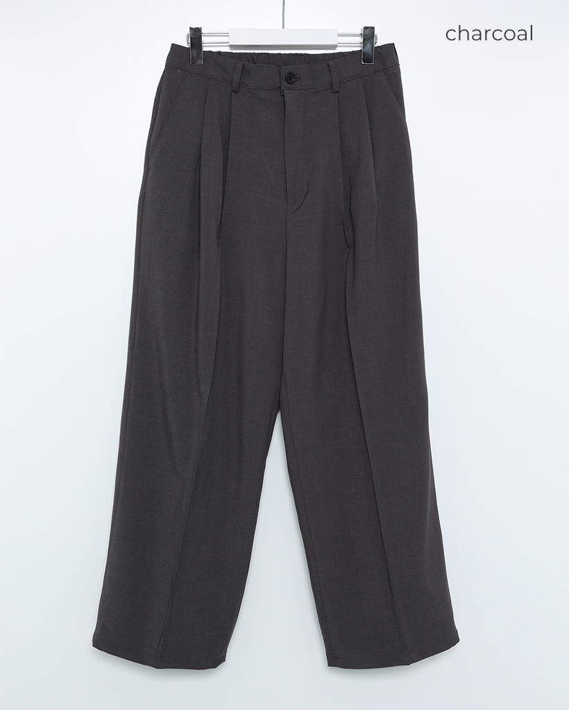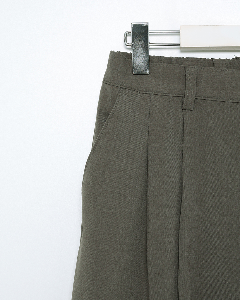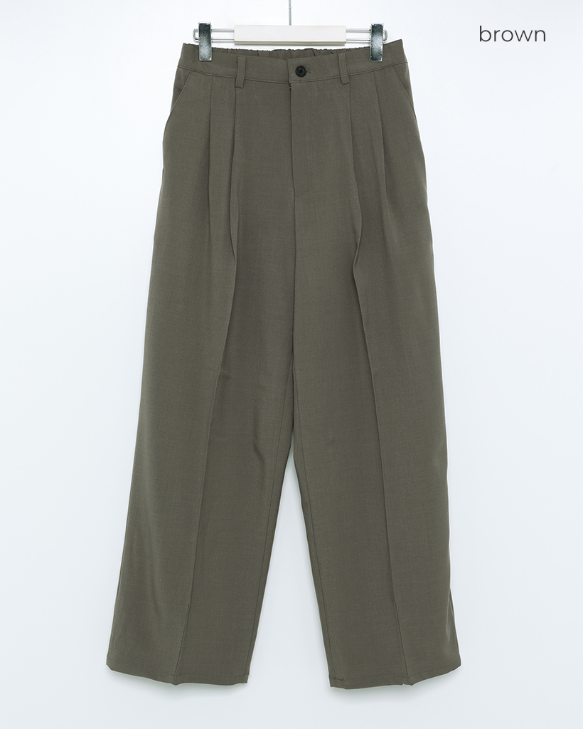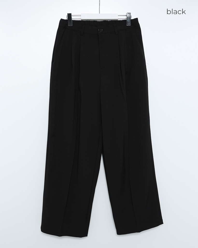 (ユニセックス)ピンタックシンプルハーフバンディングワイドスラックス