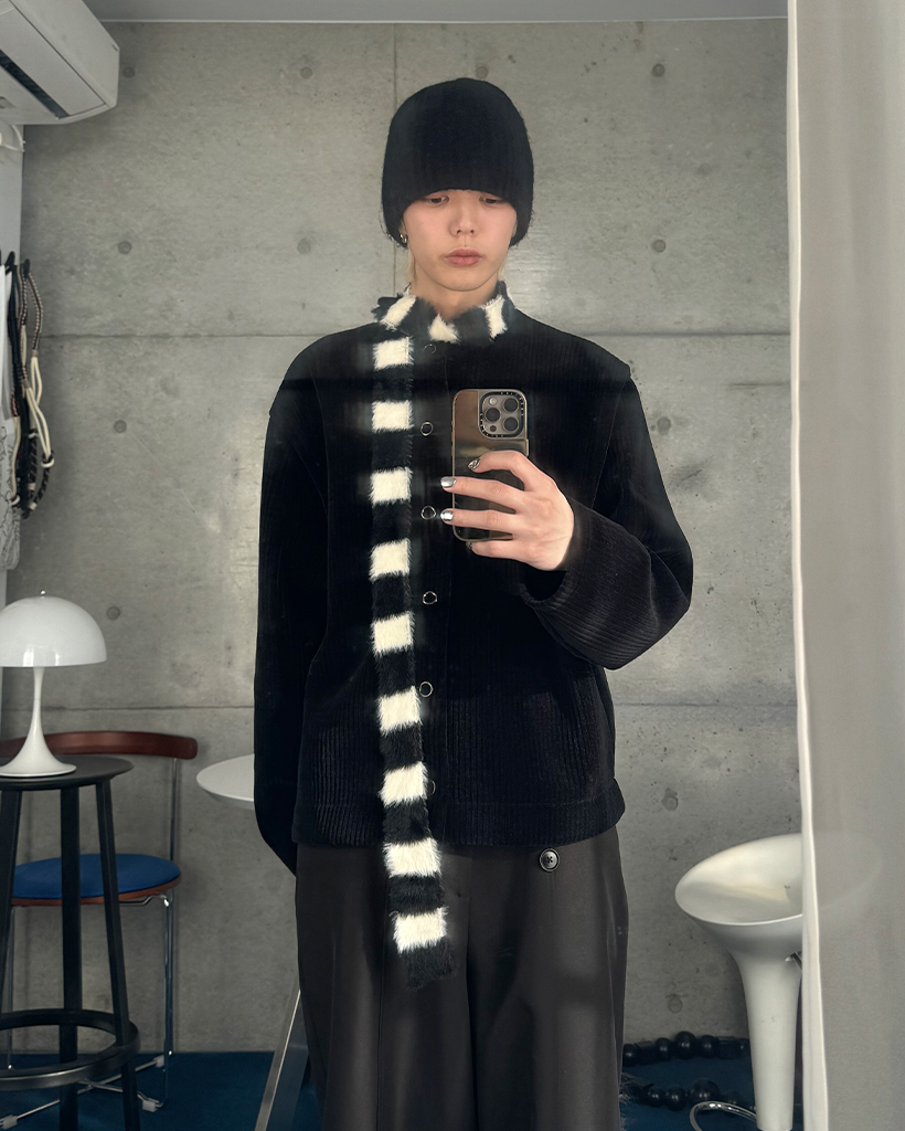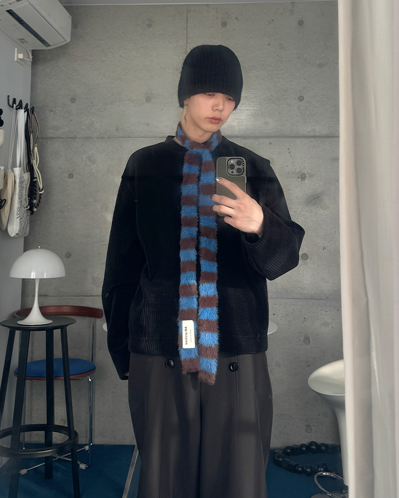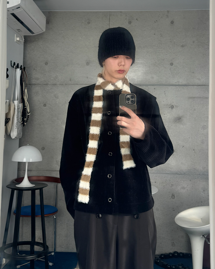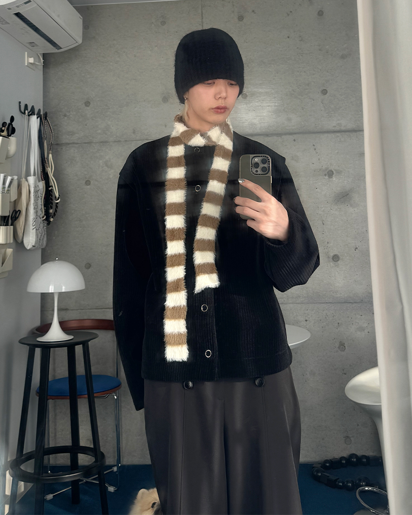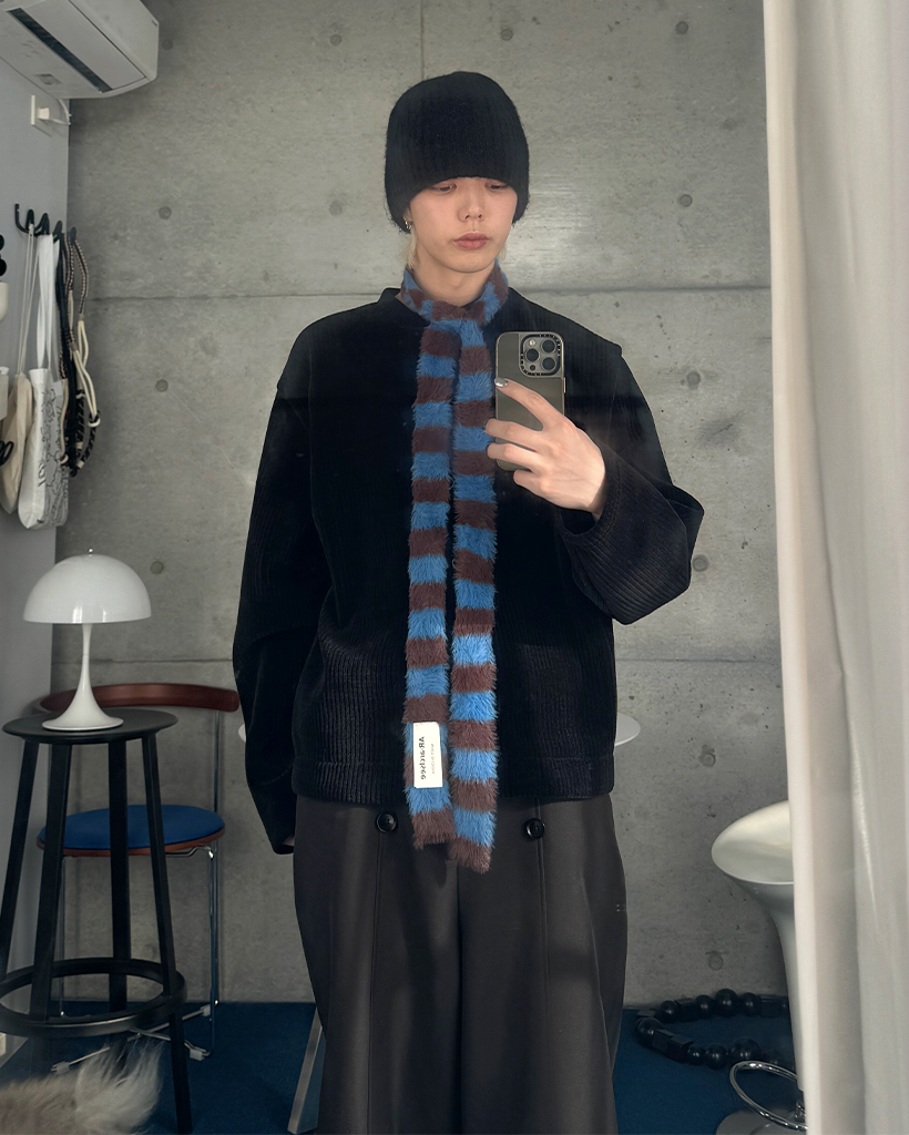 ボーダー柄スリムニットマフラー