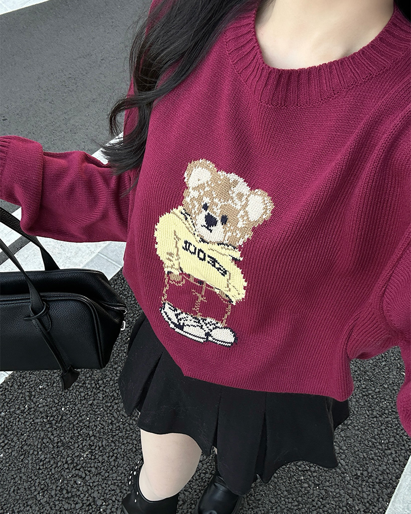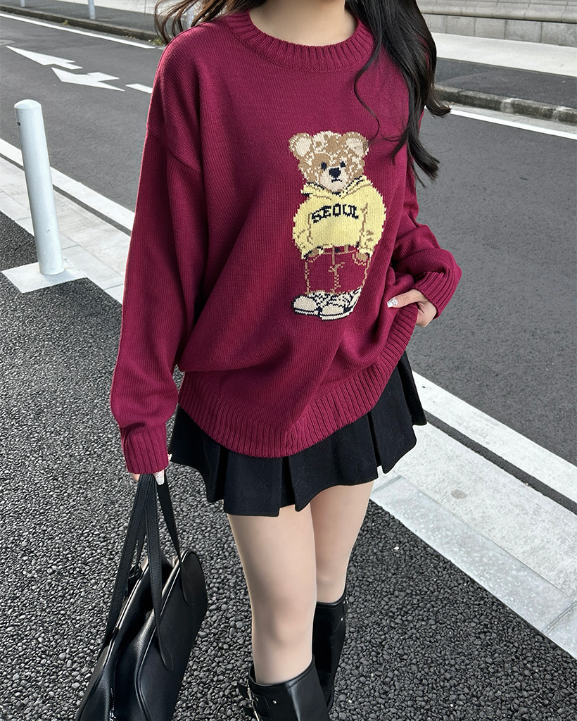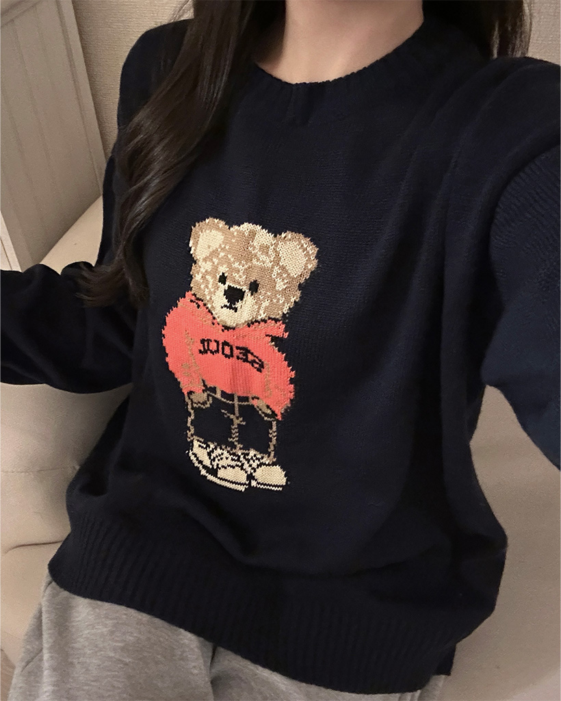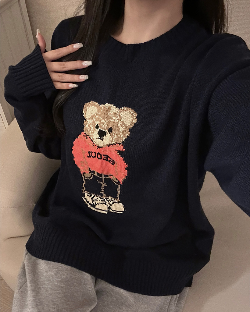 ラウンドネックベアニット