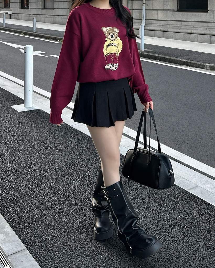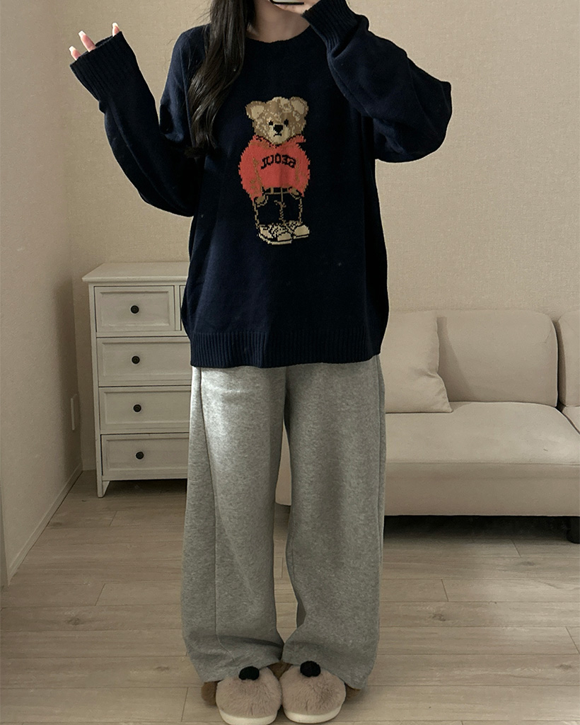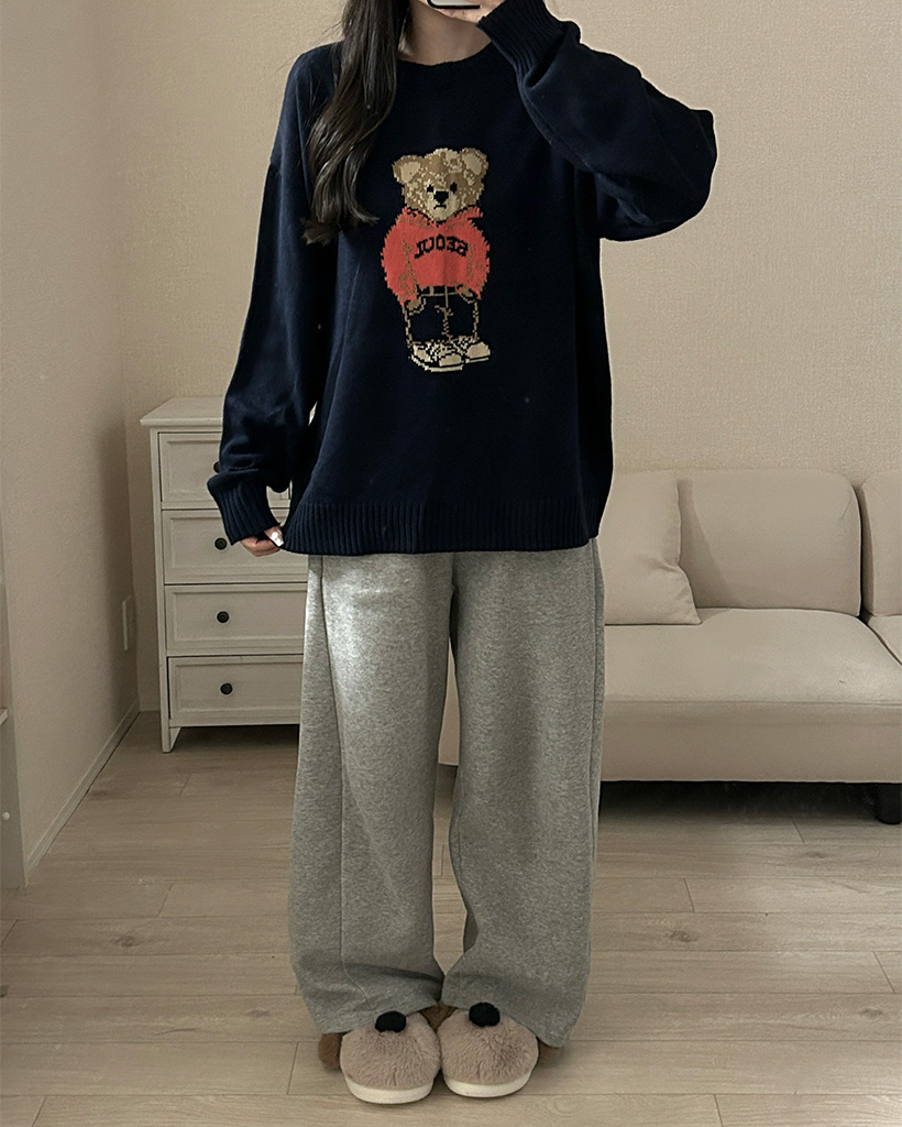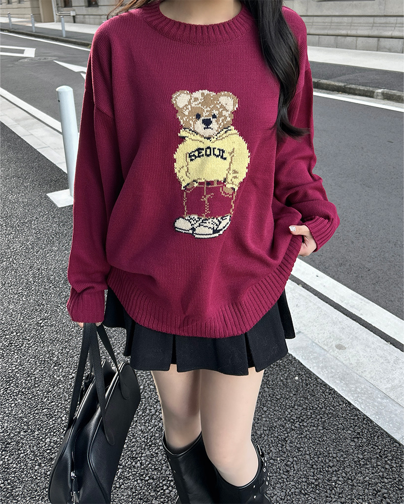 ラウンドネックベアニット