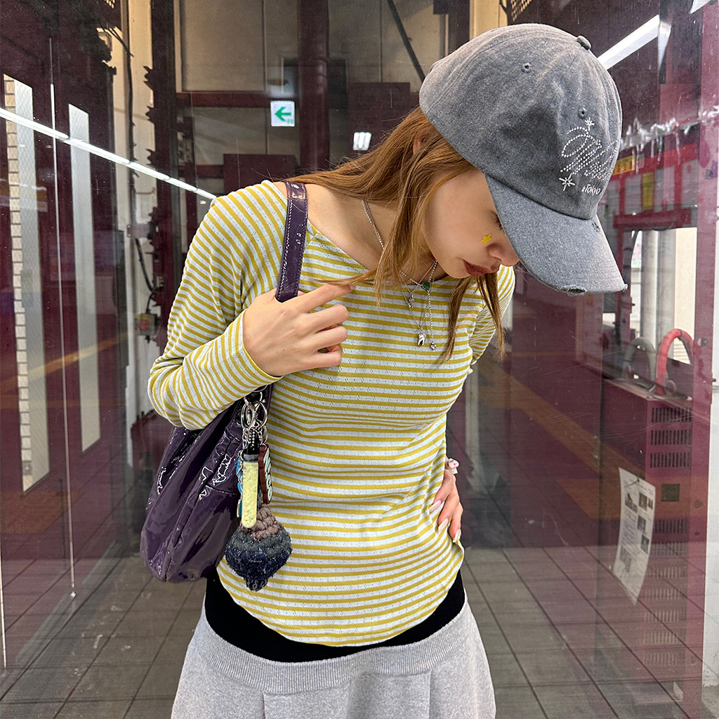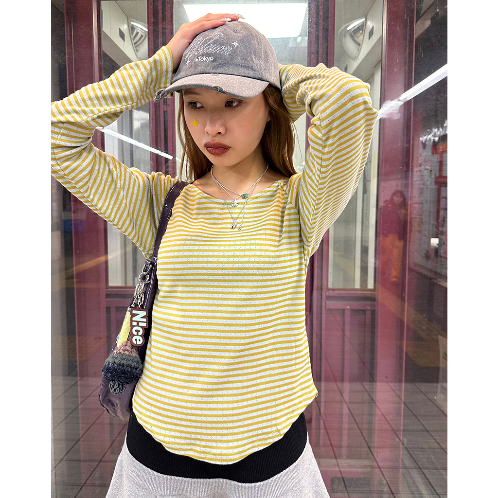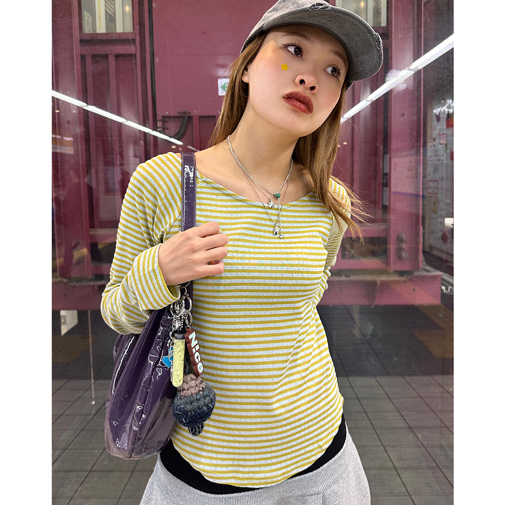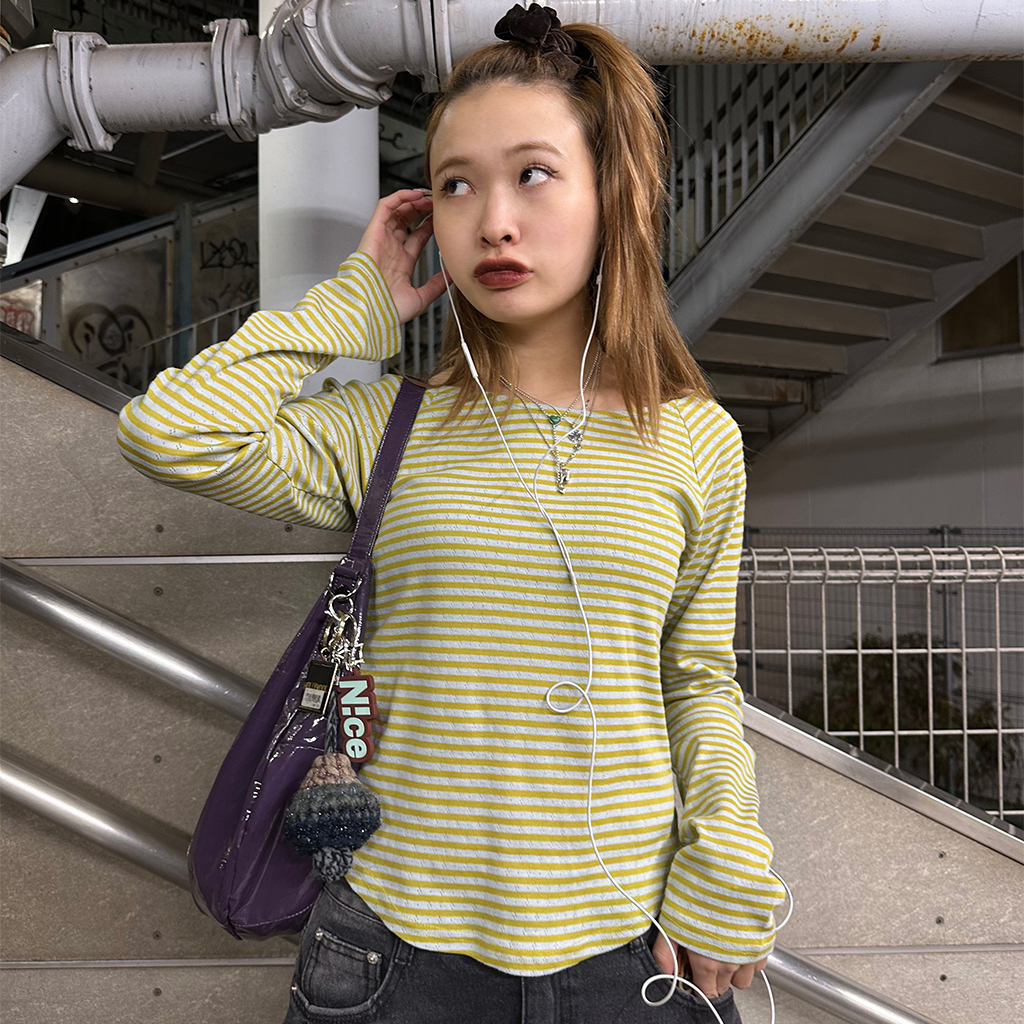 ボーダーボートネック長袖Tシャツ