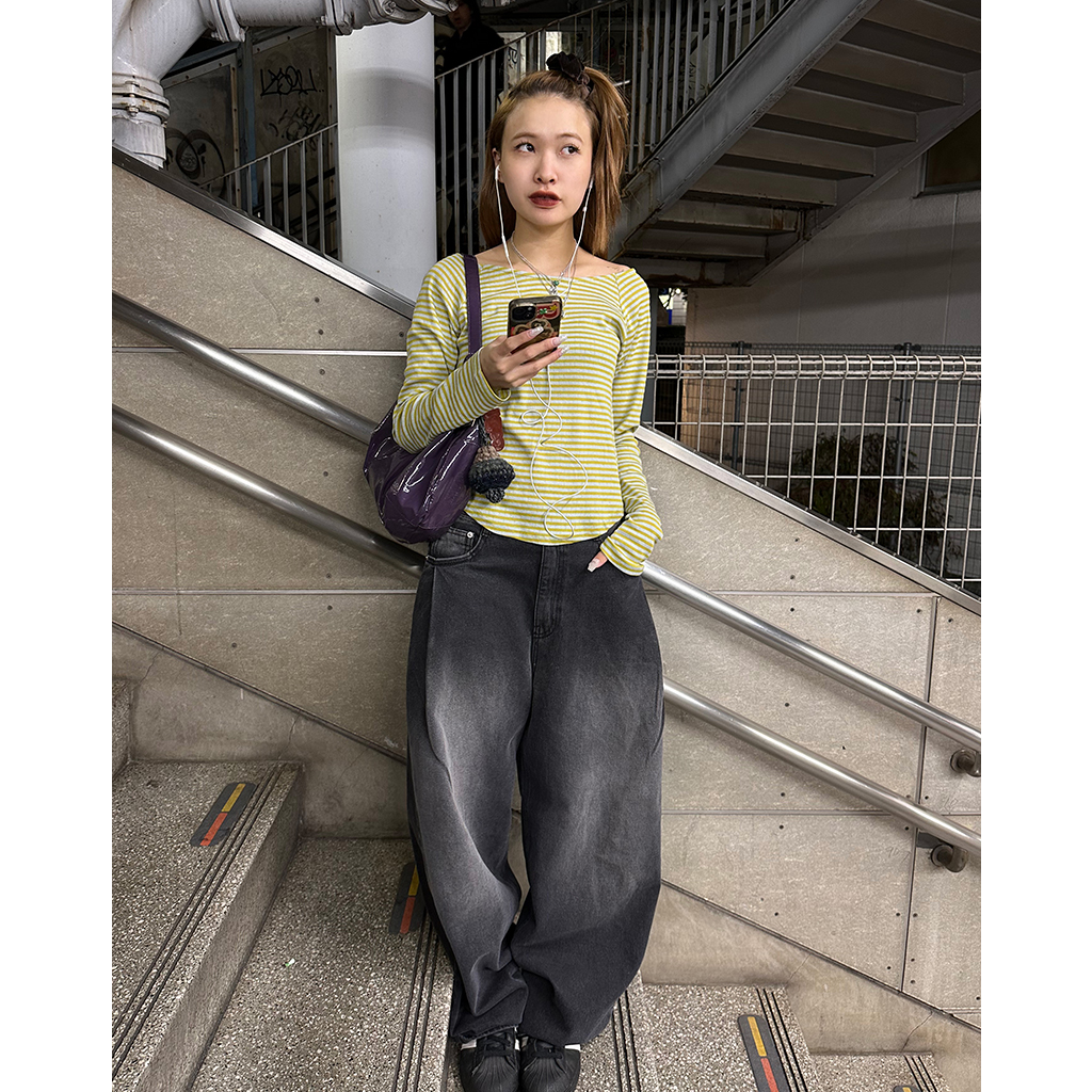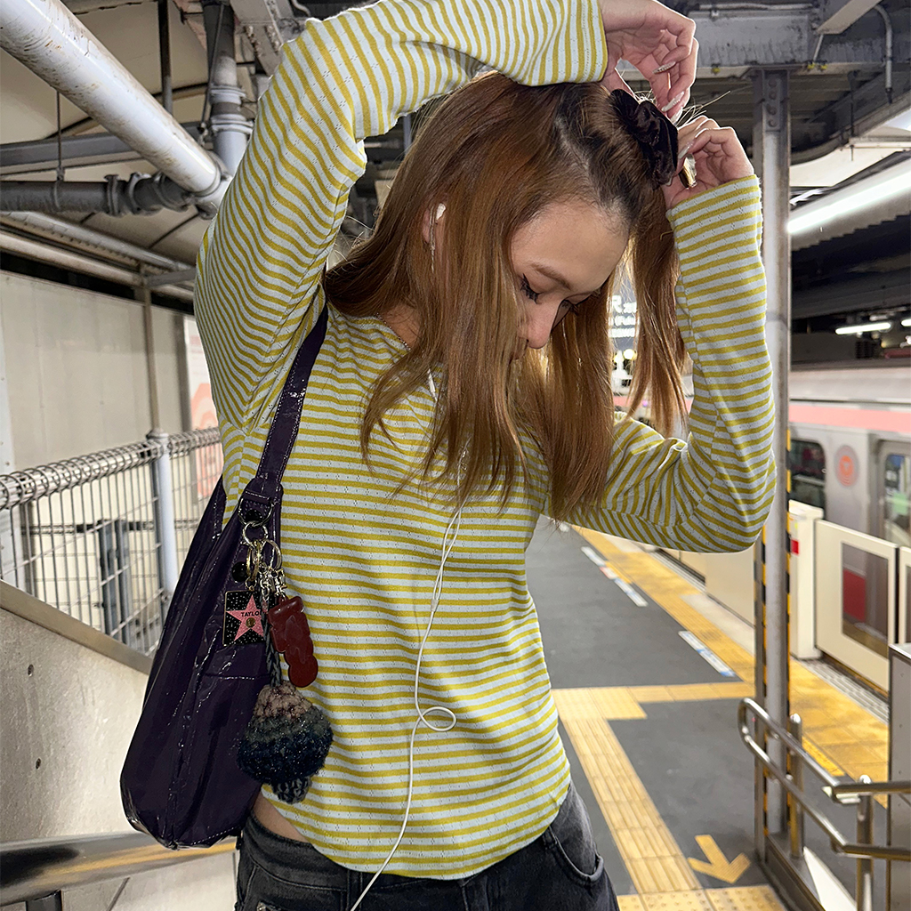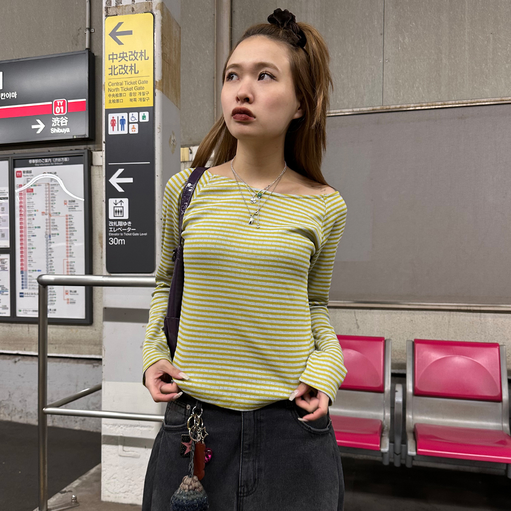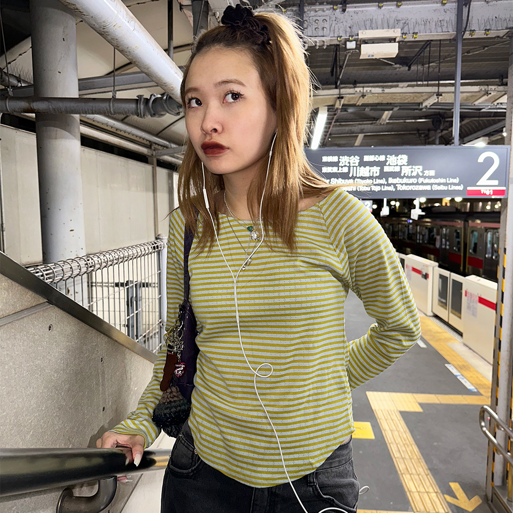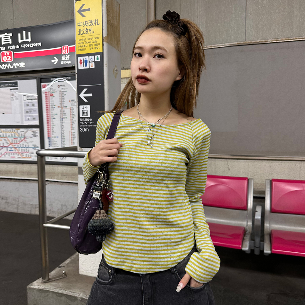 ボーダーボートネック長袖Tシャツ