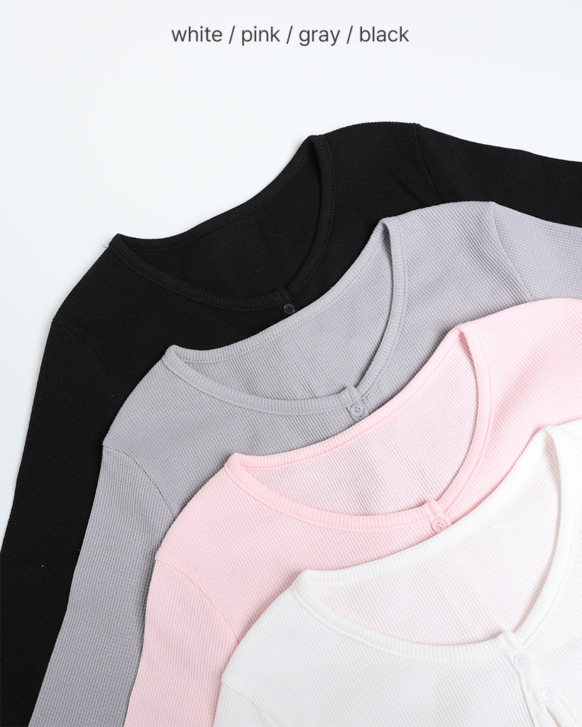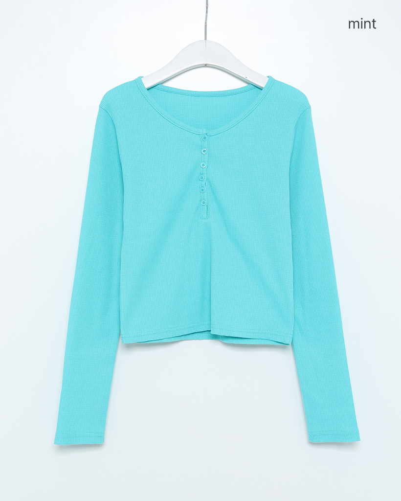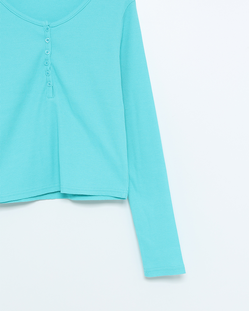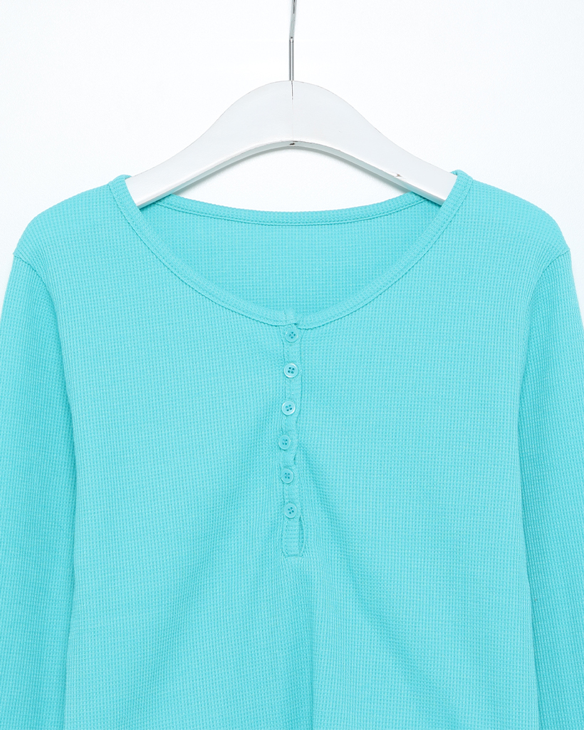 ヘンリーネックワッフルロングスリーブTシャツ