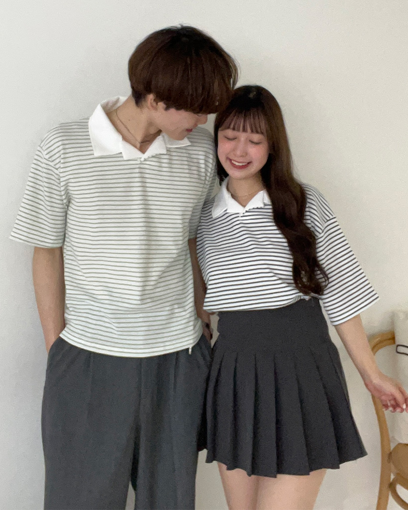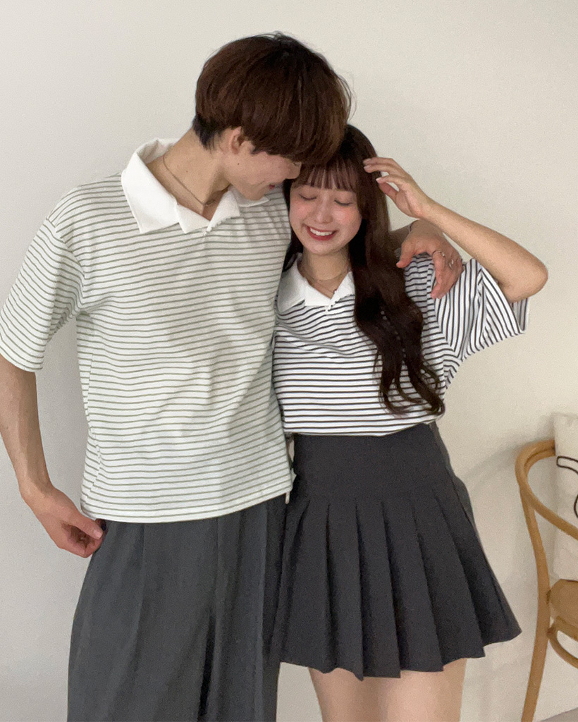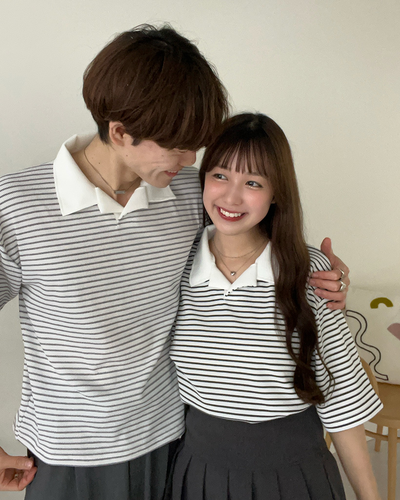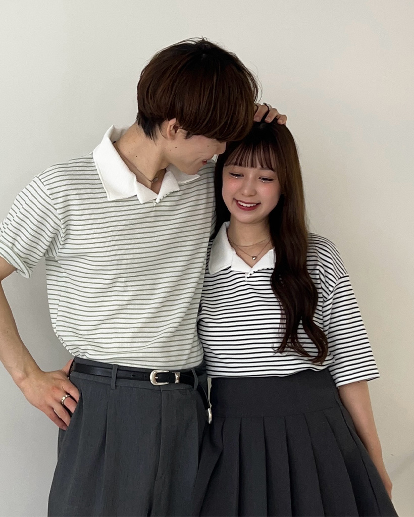 (ユニセックス)ボーダーカラ半袖Tシャツ