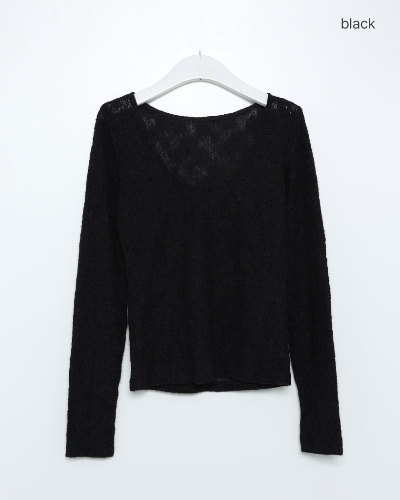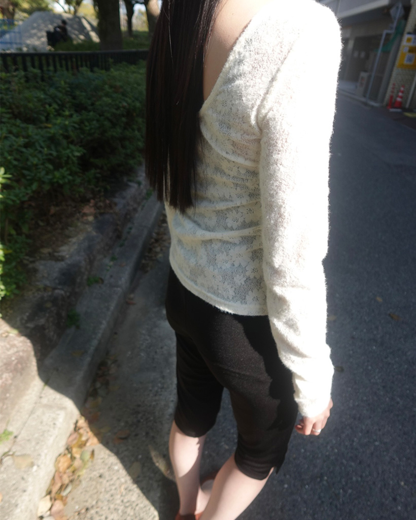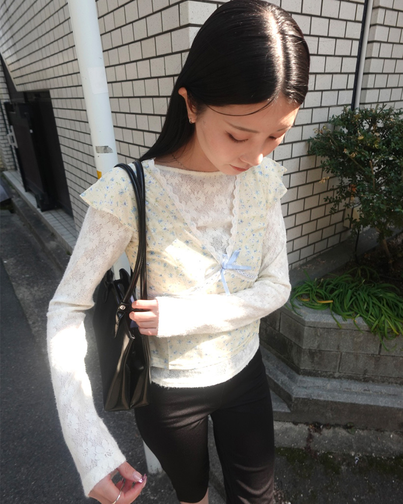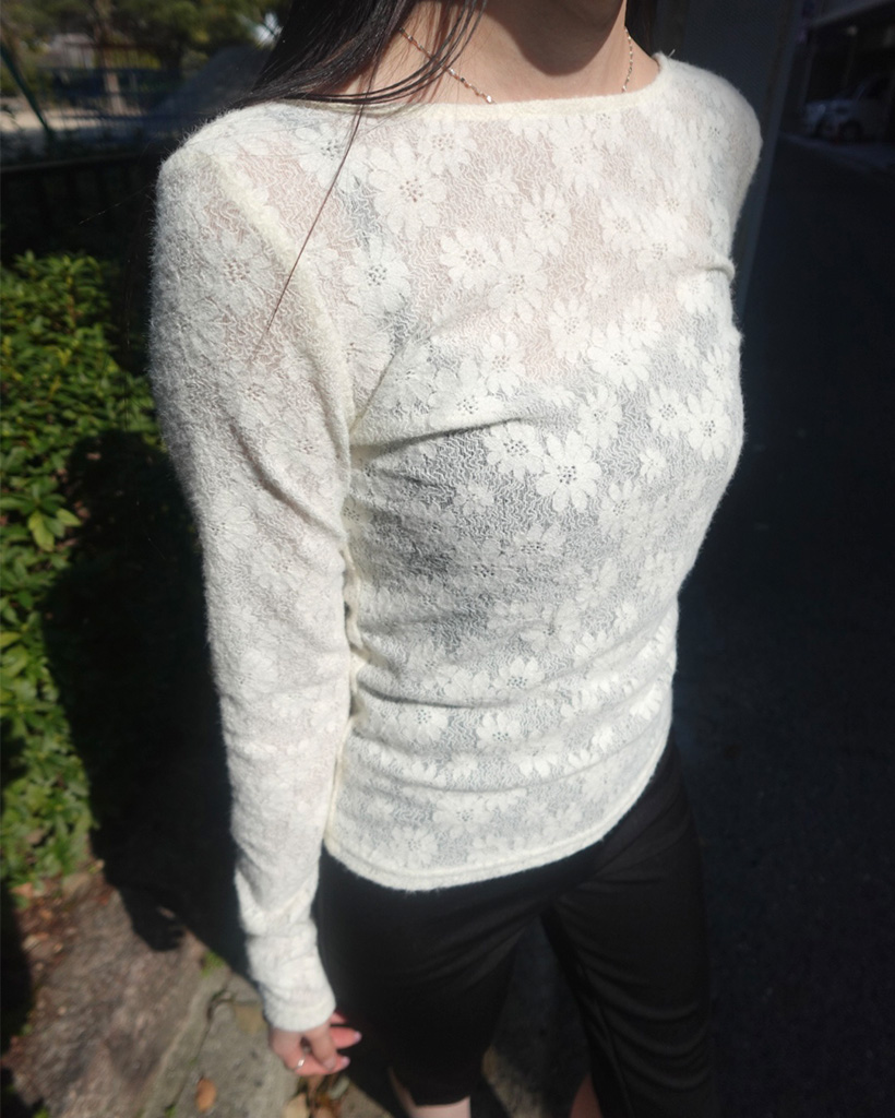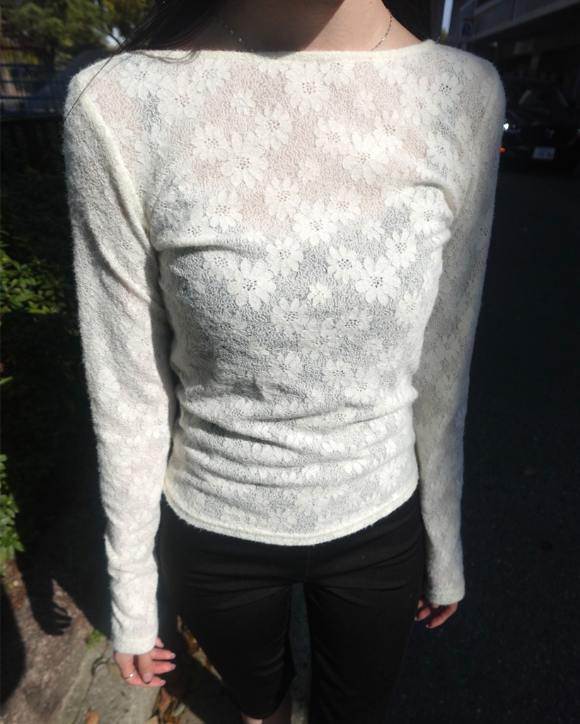 UネックラインフラワーレースTシャツ