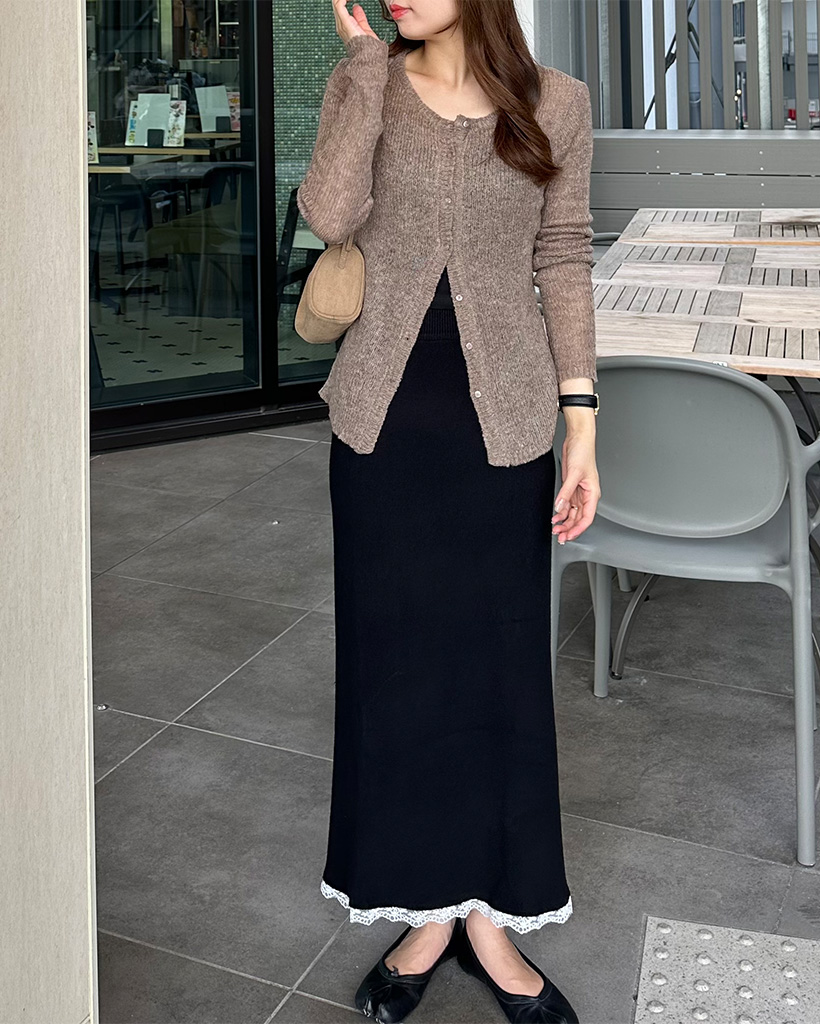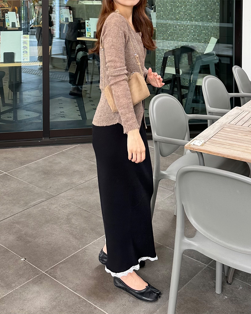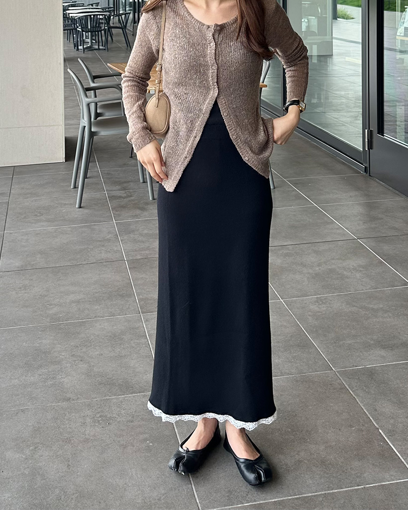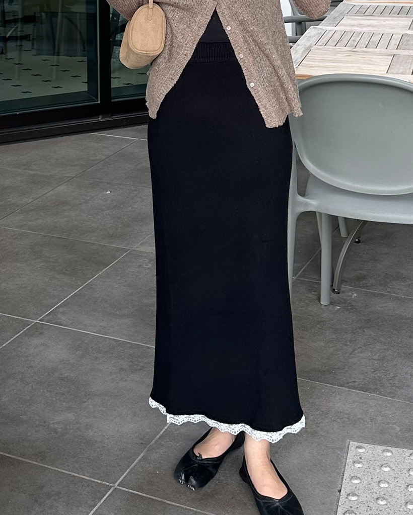 レースヘムマキシニットスカート