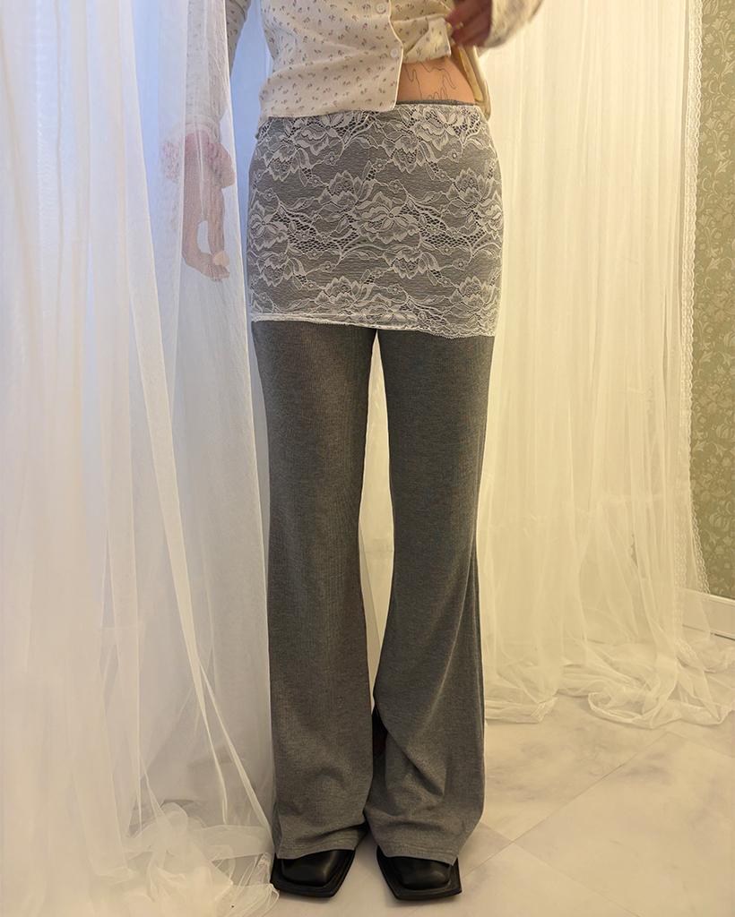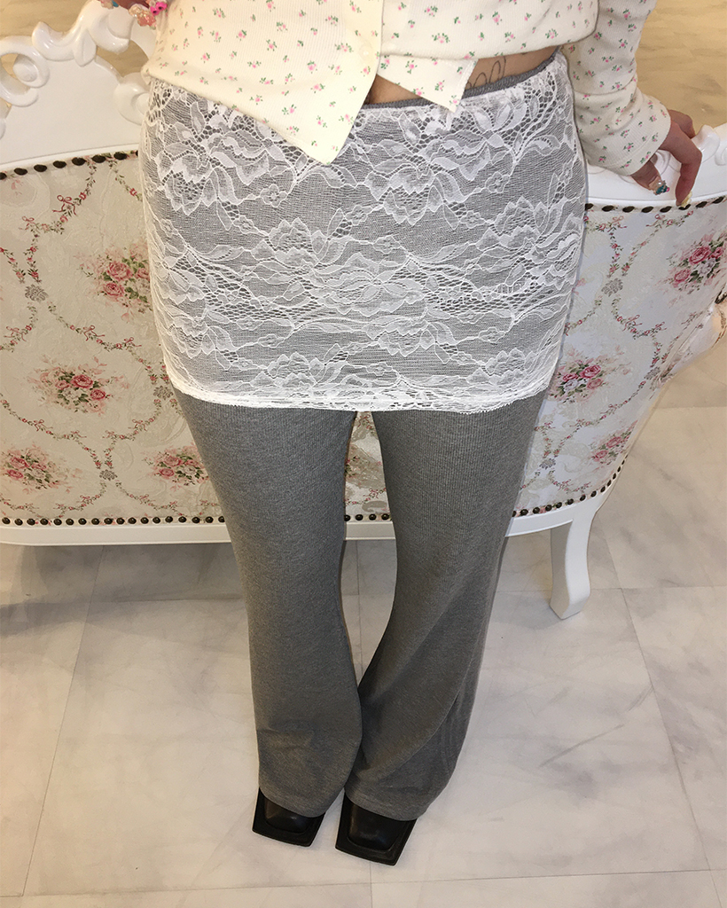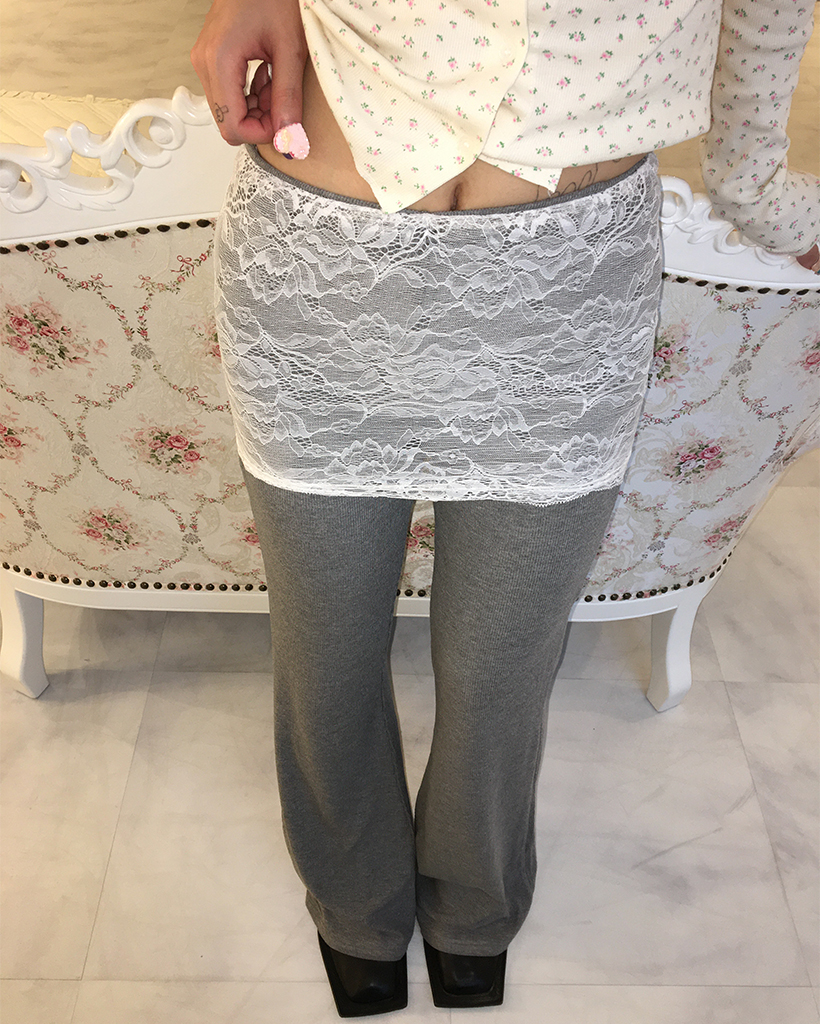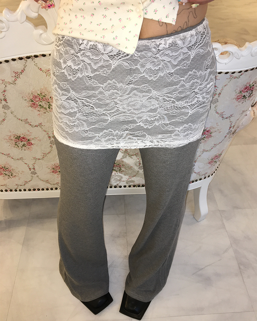 ワイドレースラップフレアリブパンツ