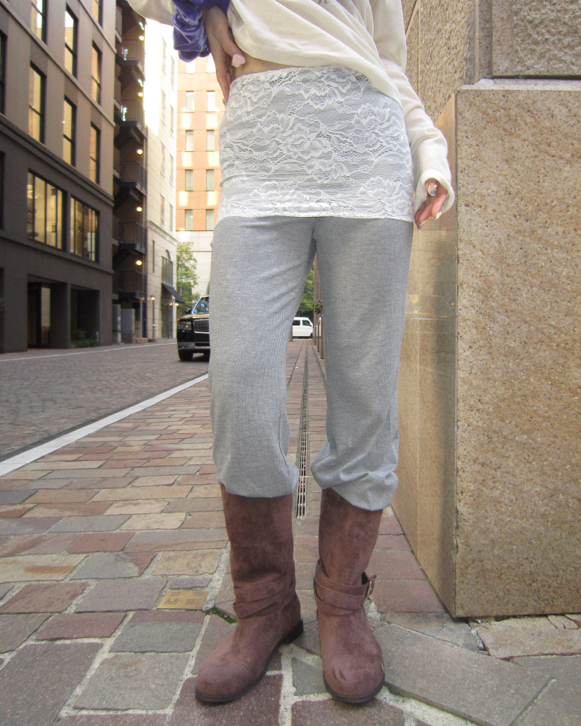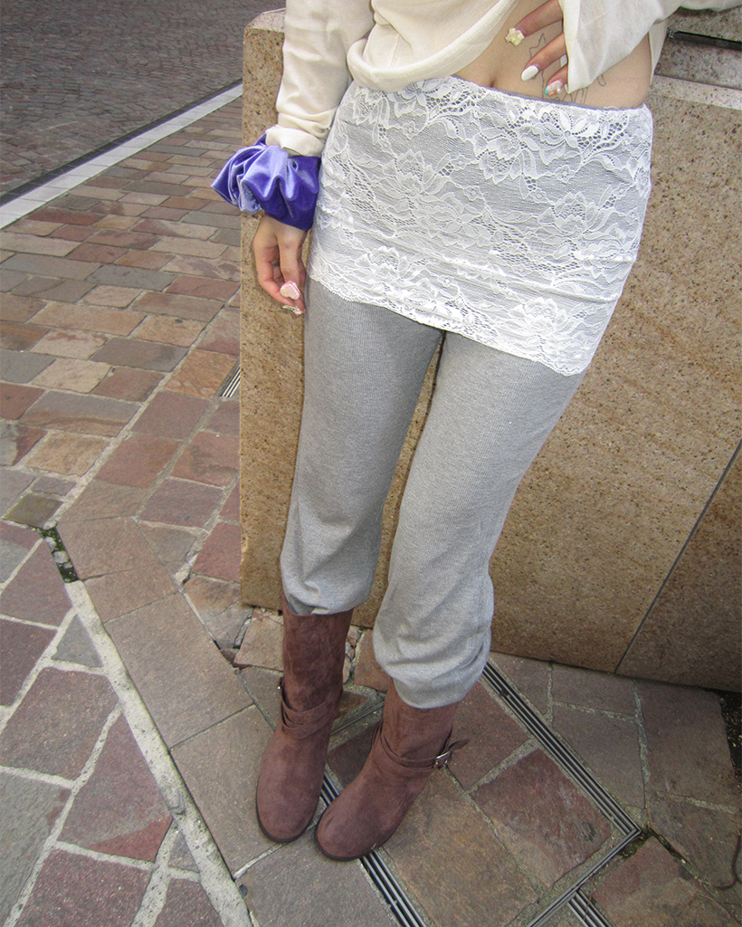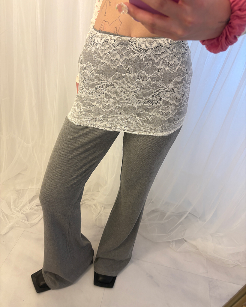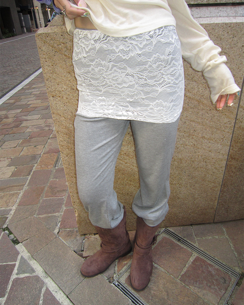 ワイドレースラップフレアリブパンツ