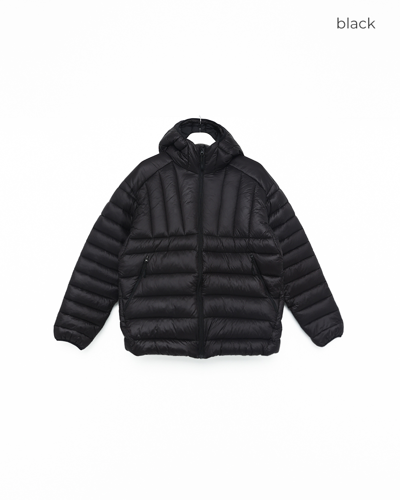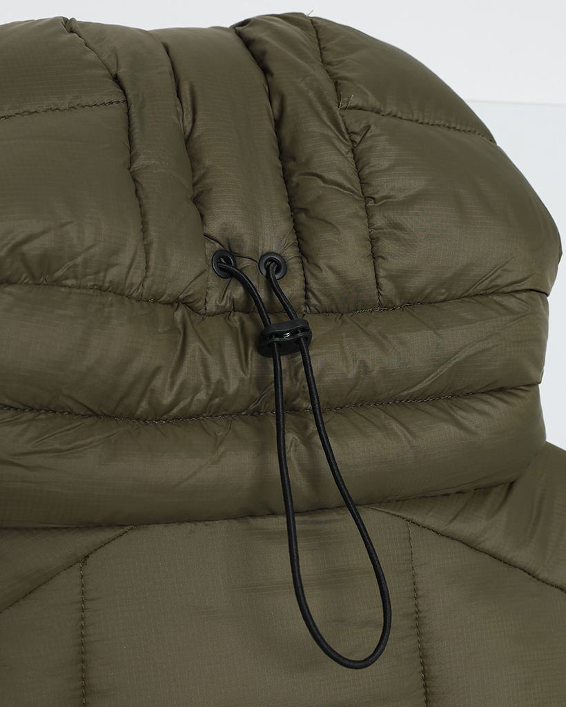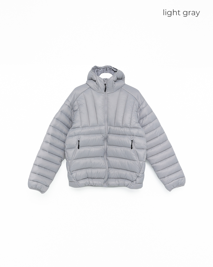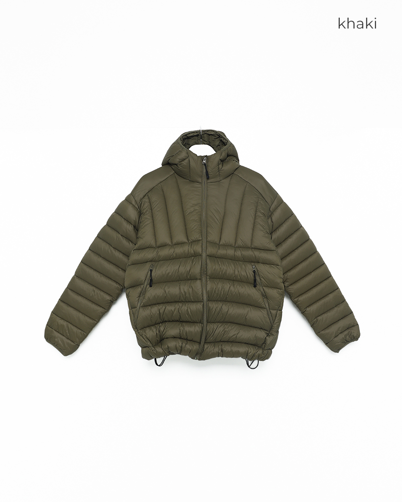 (ユニセックス)フードストリングポイント軽量ダウンジャケット