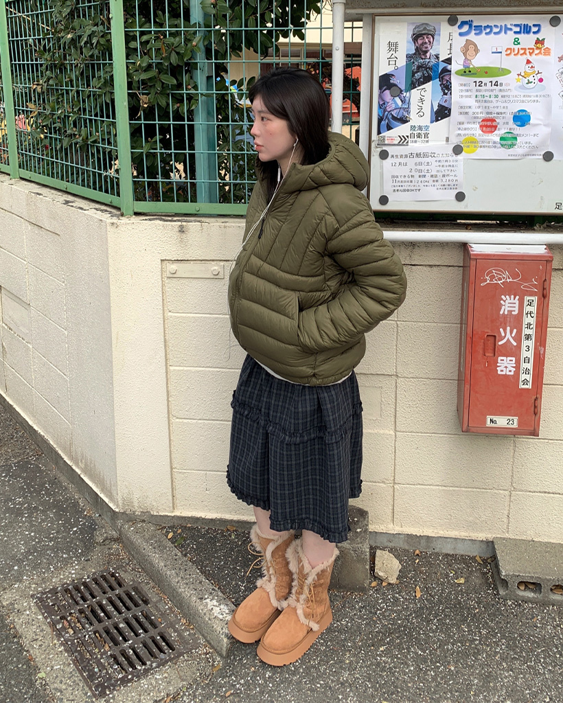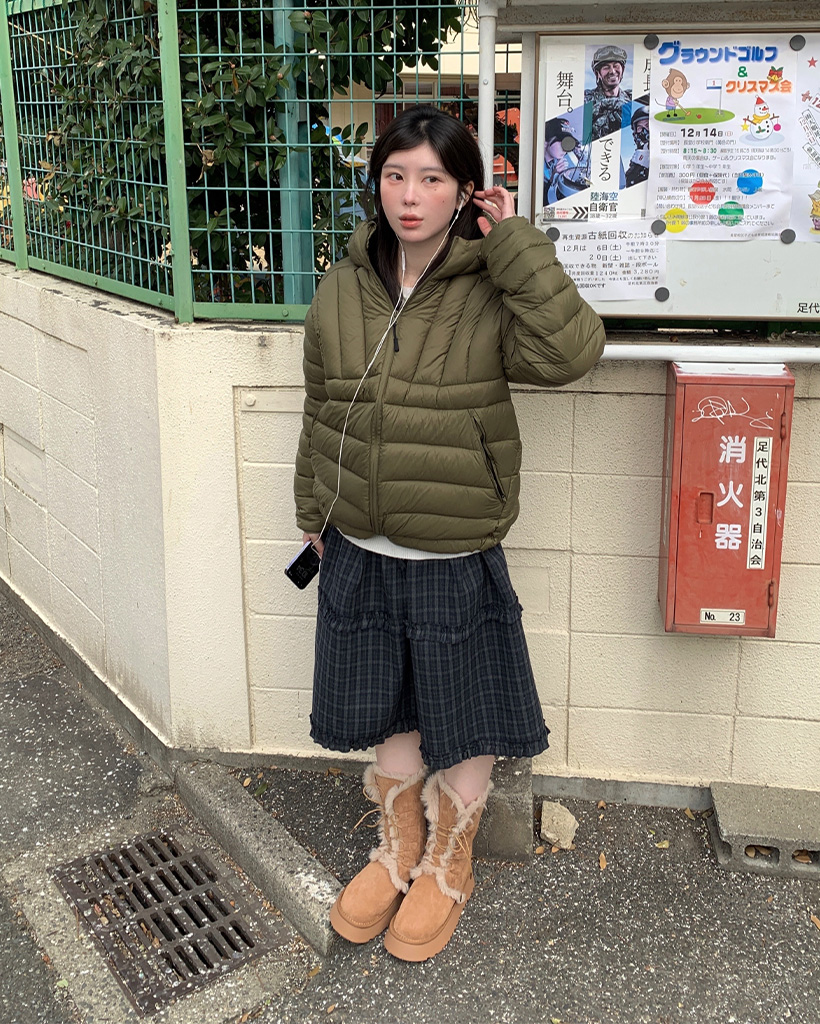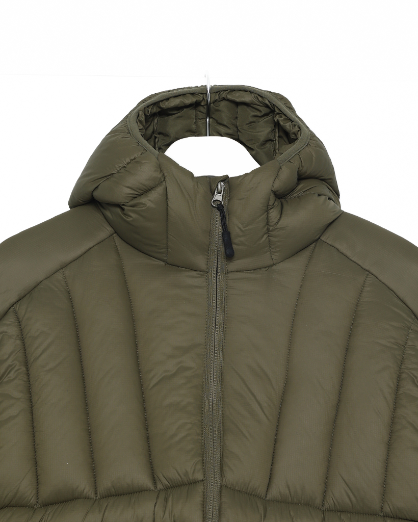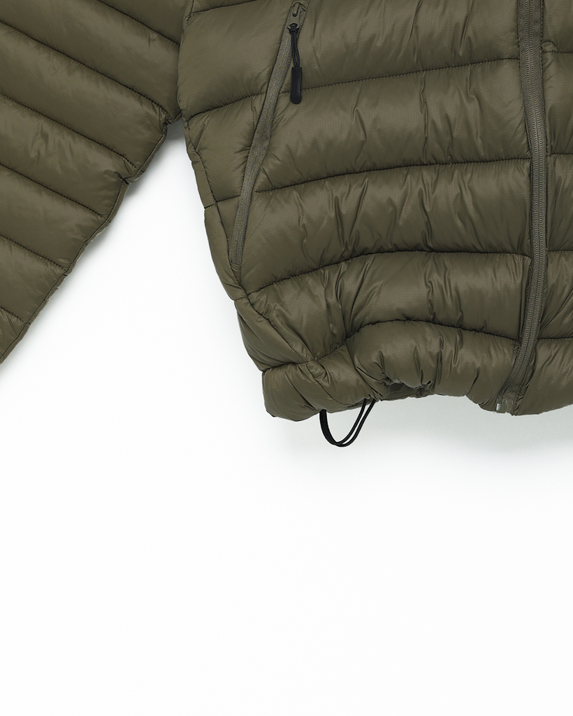 (ユニセックス)フードストリングポイント軽量ダウンジャケット