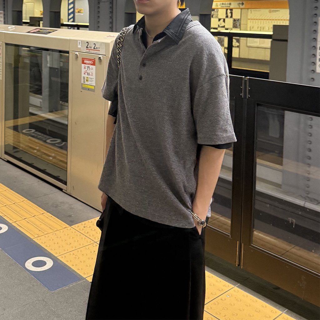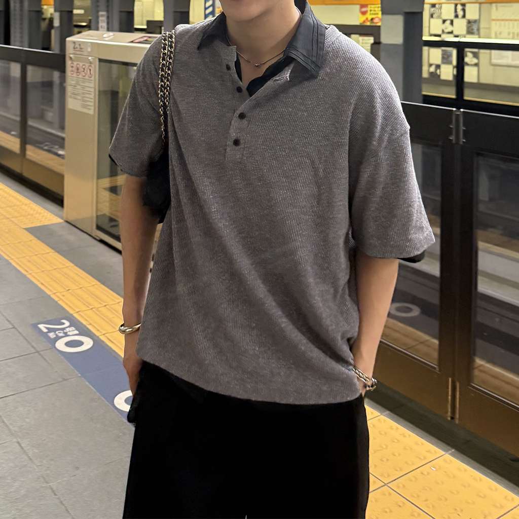 ワッフルヘンリーネックカットソー