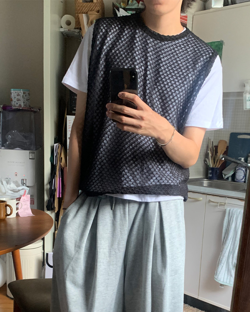 クロシェラウンドニットベスト