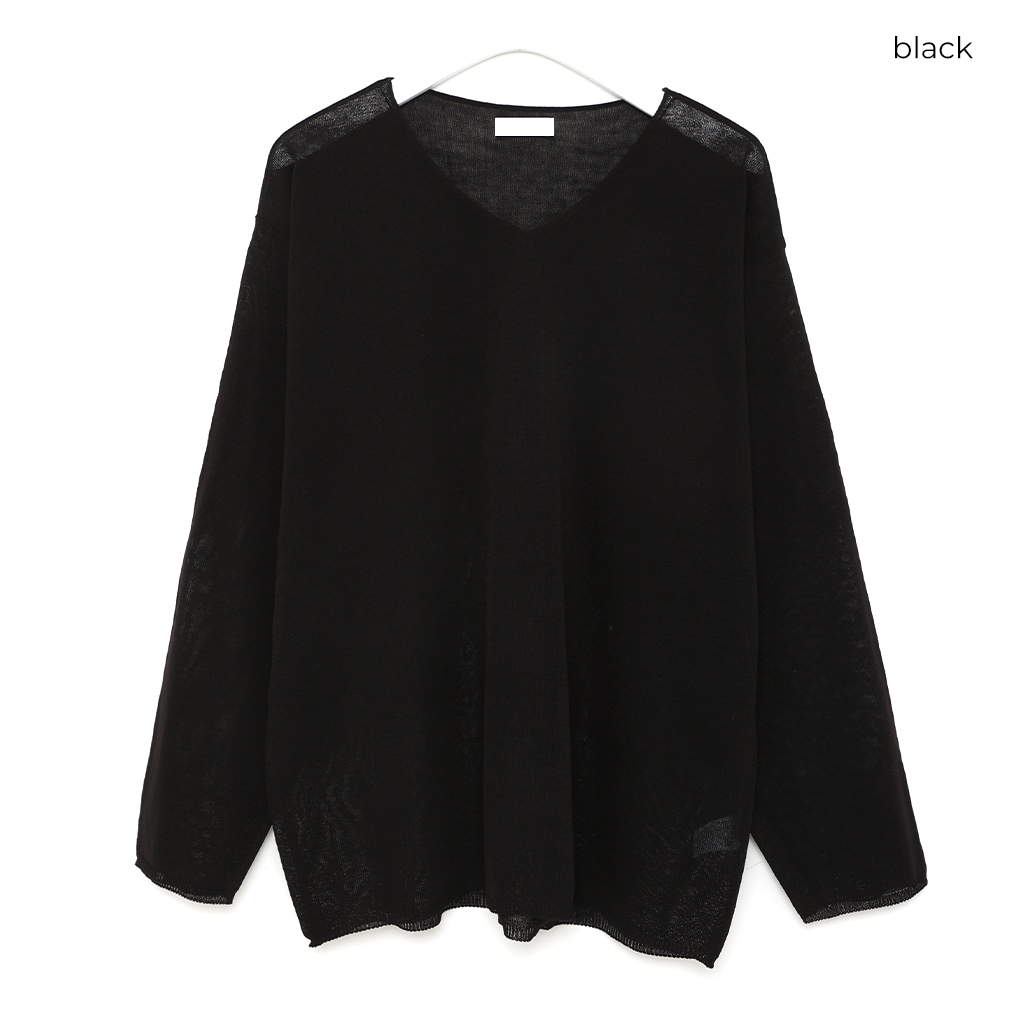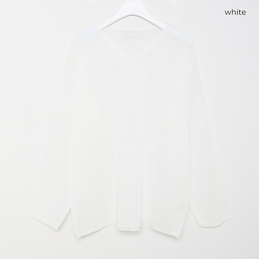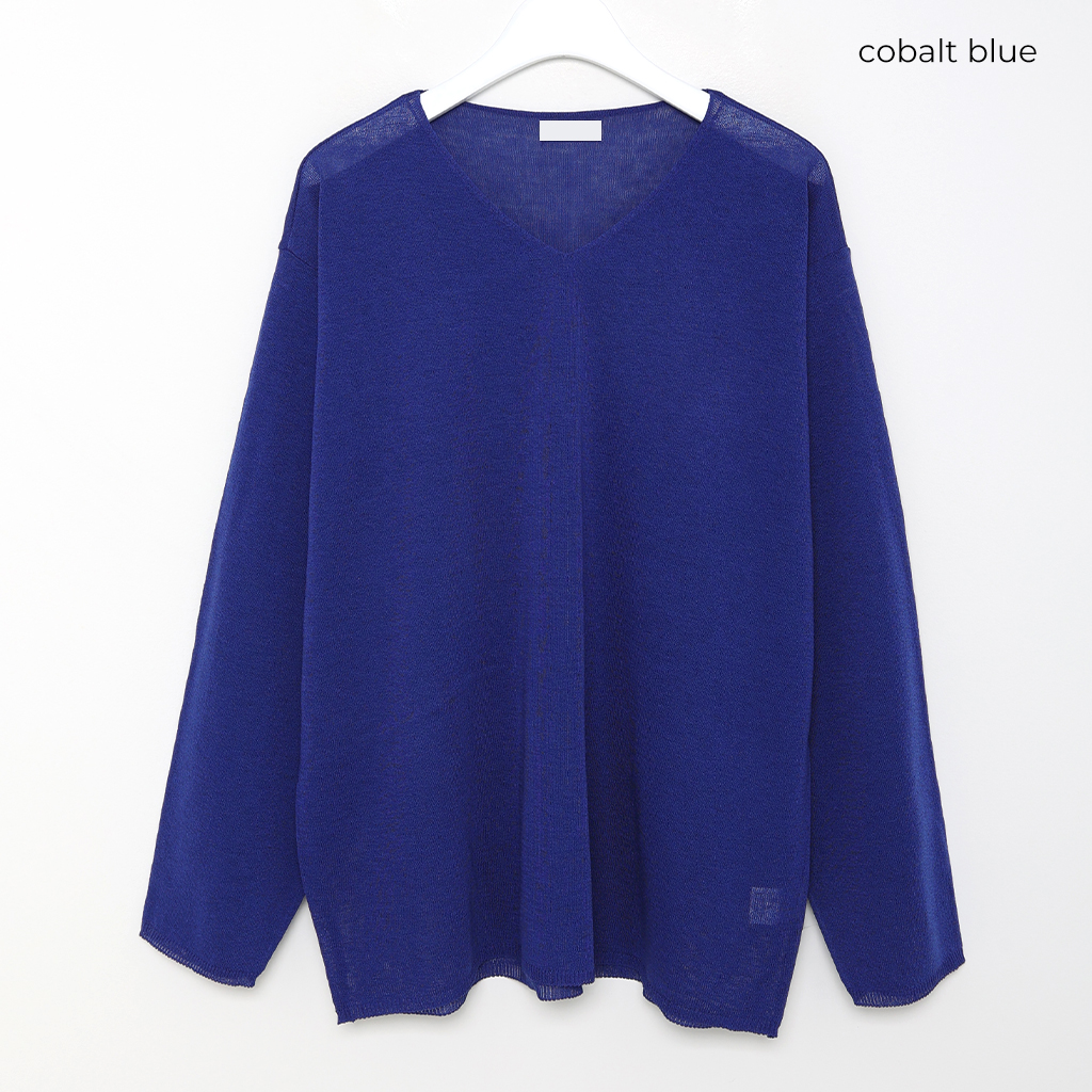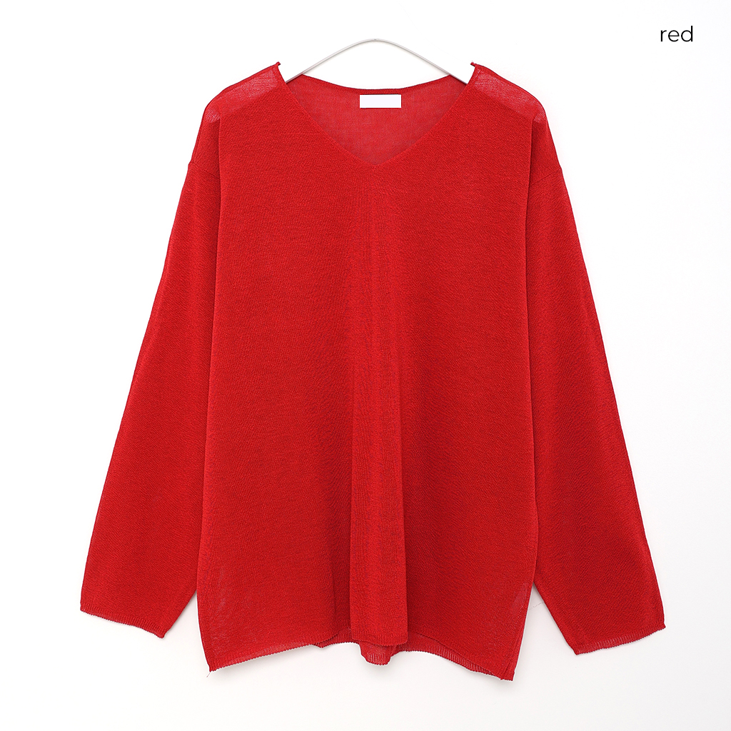 (ユニセックス)Vネックリネンニット