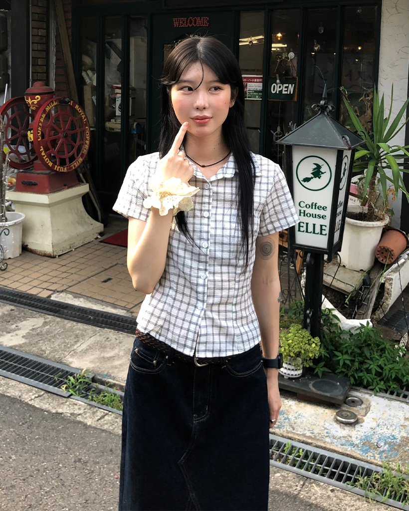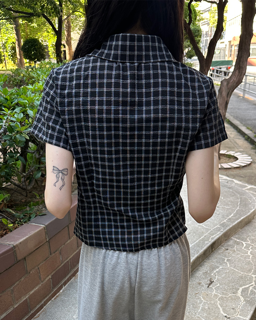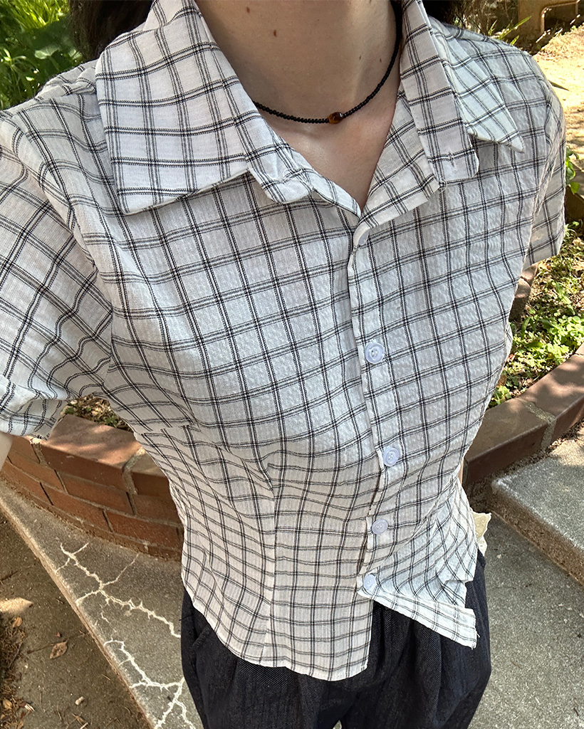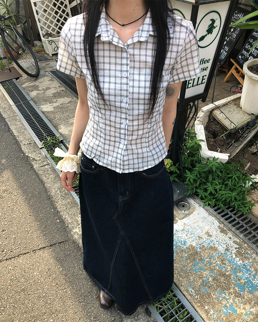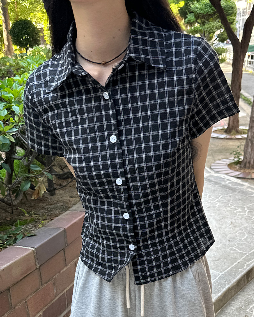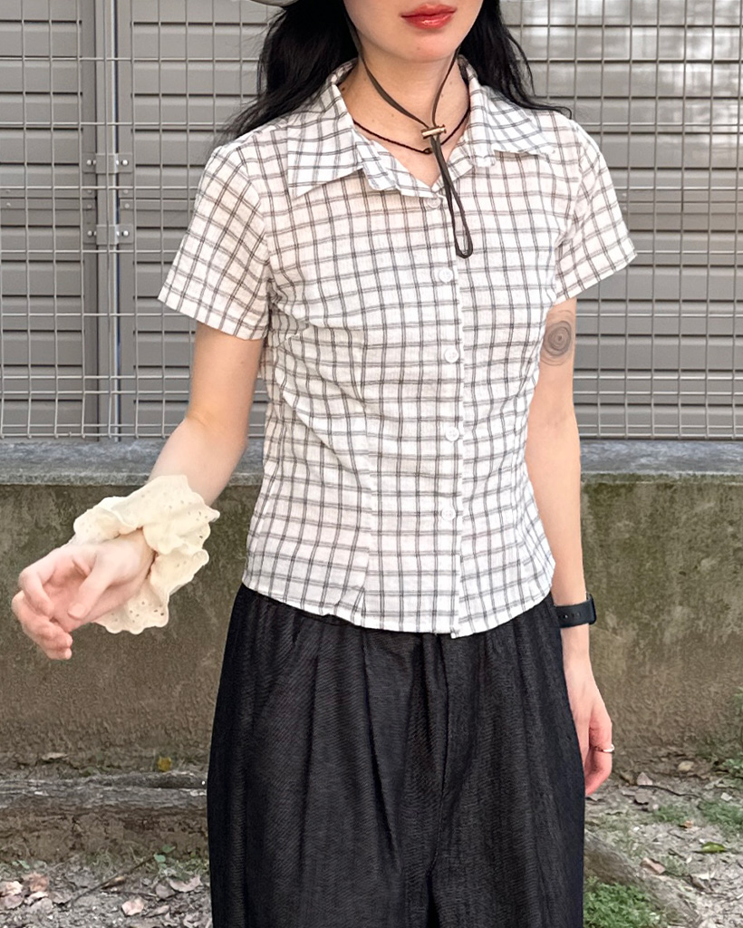 スリムフィットチェック半袖シャツ