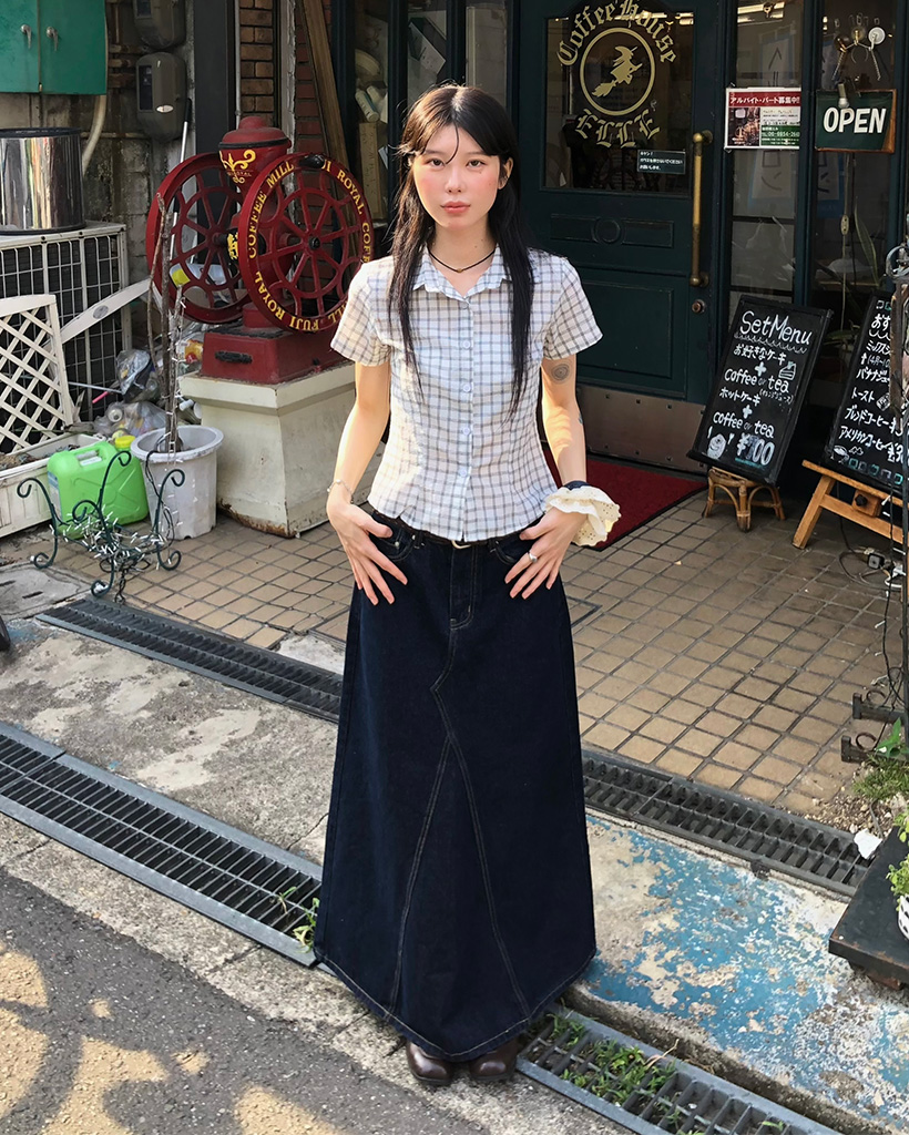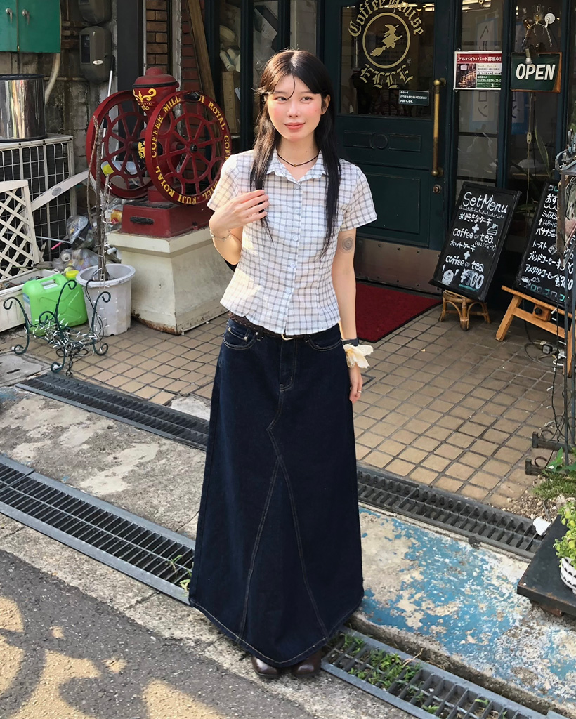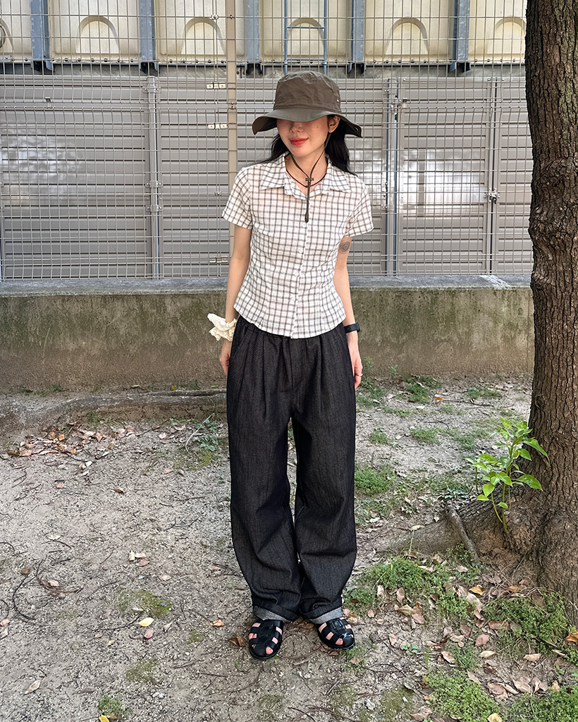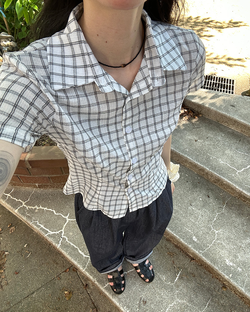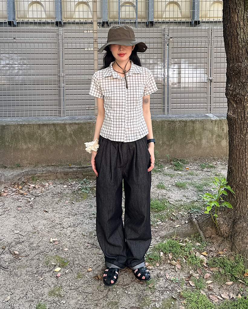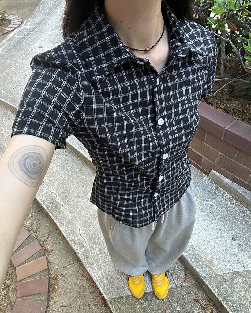 スリムフィットチェック半袖シャツ