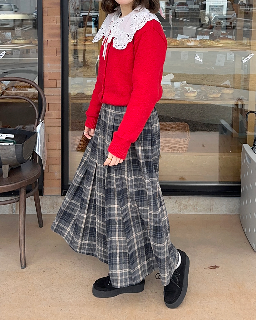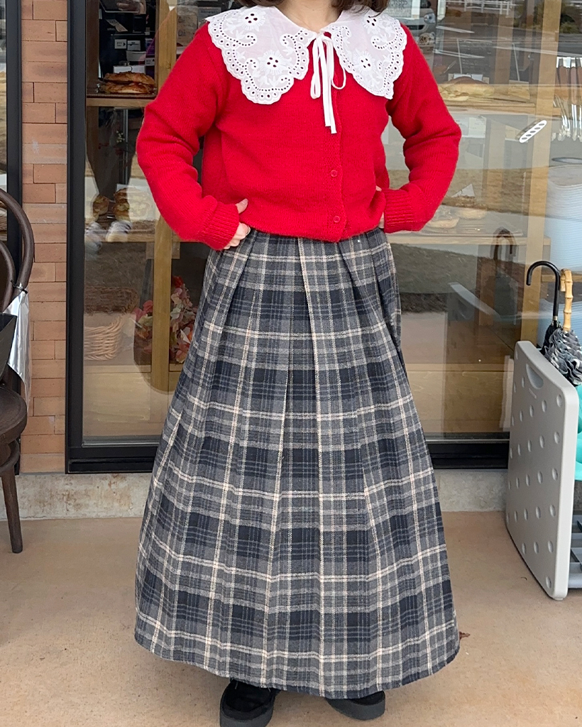 ウィンターチェックロングプリーツスカート