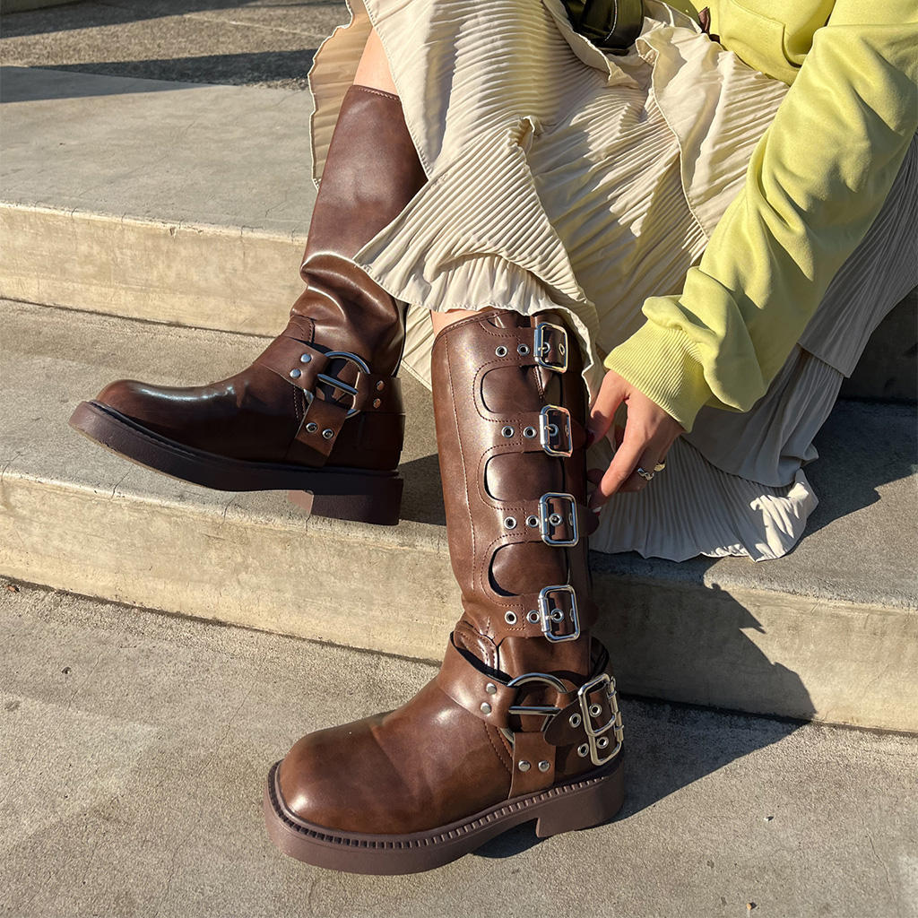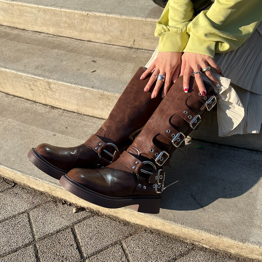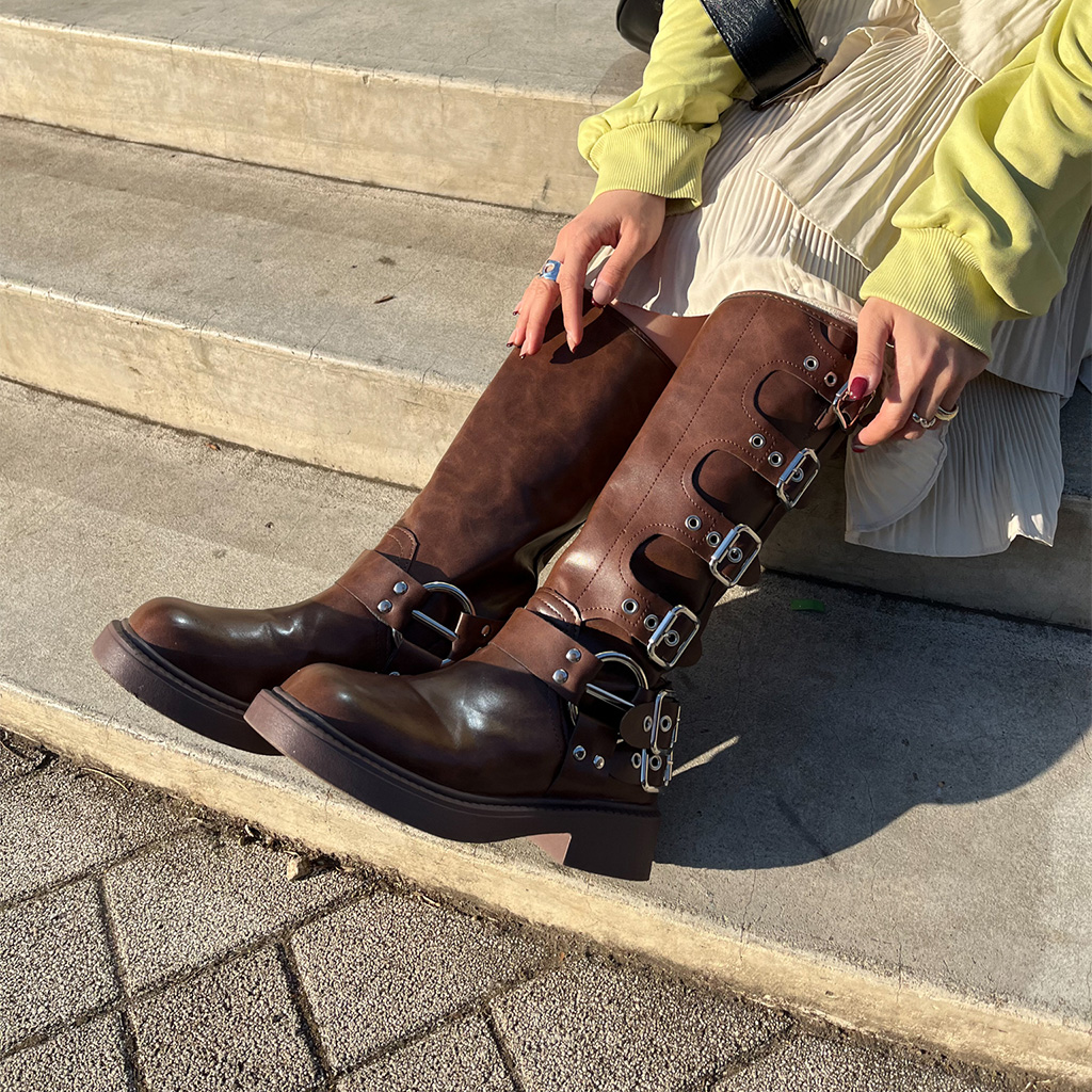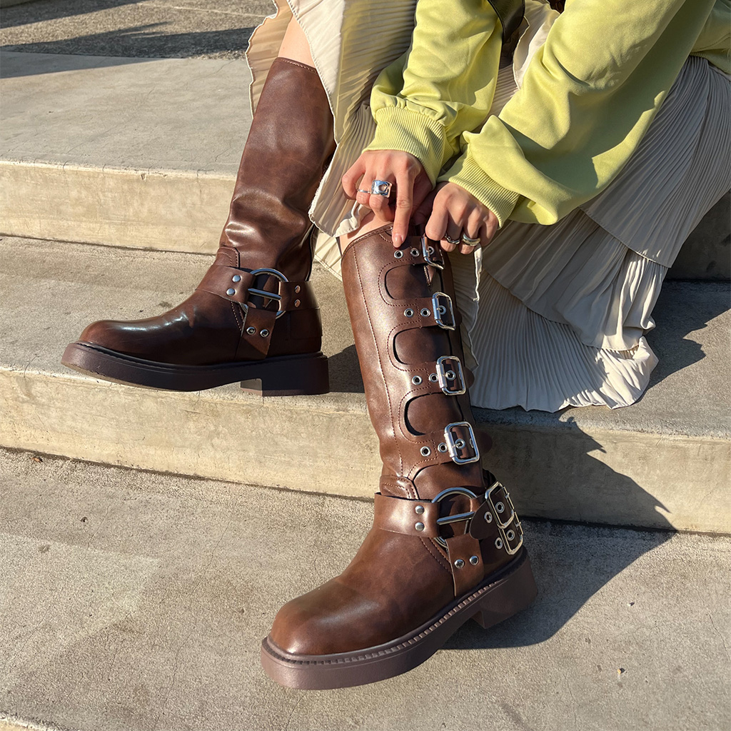 バックルロングブーツ