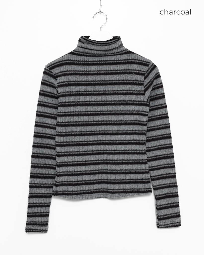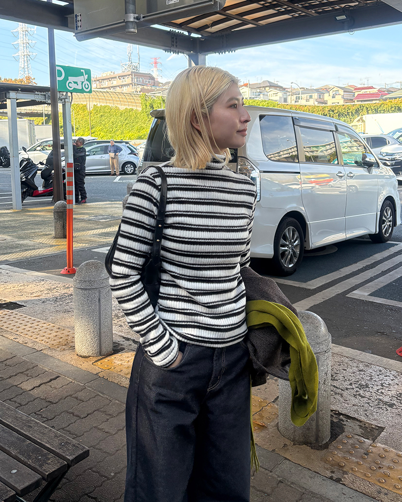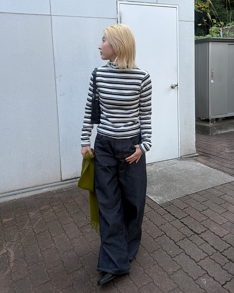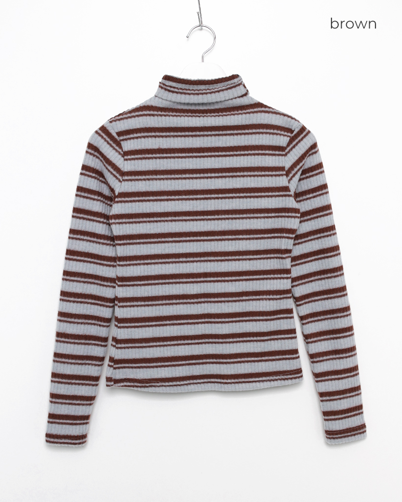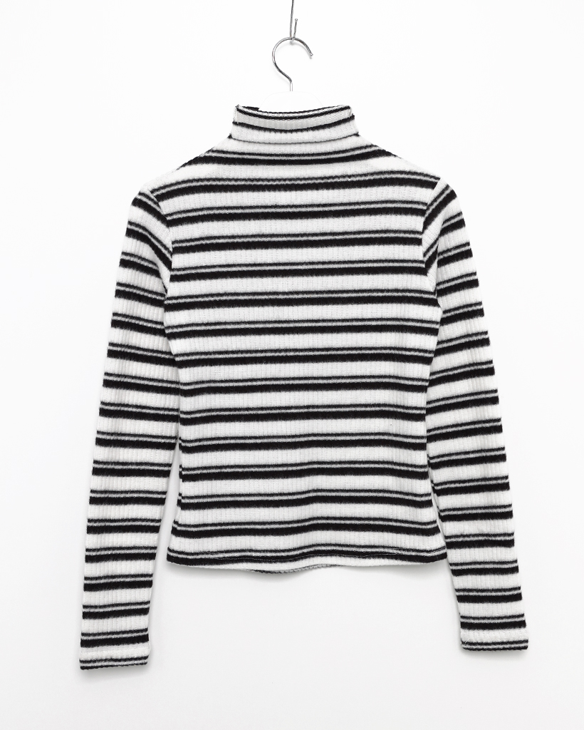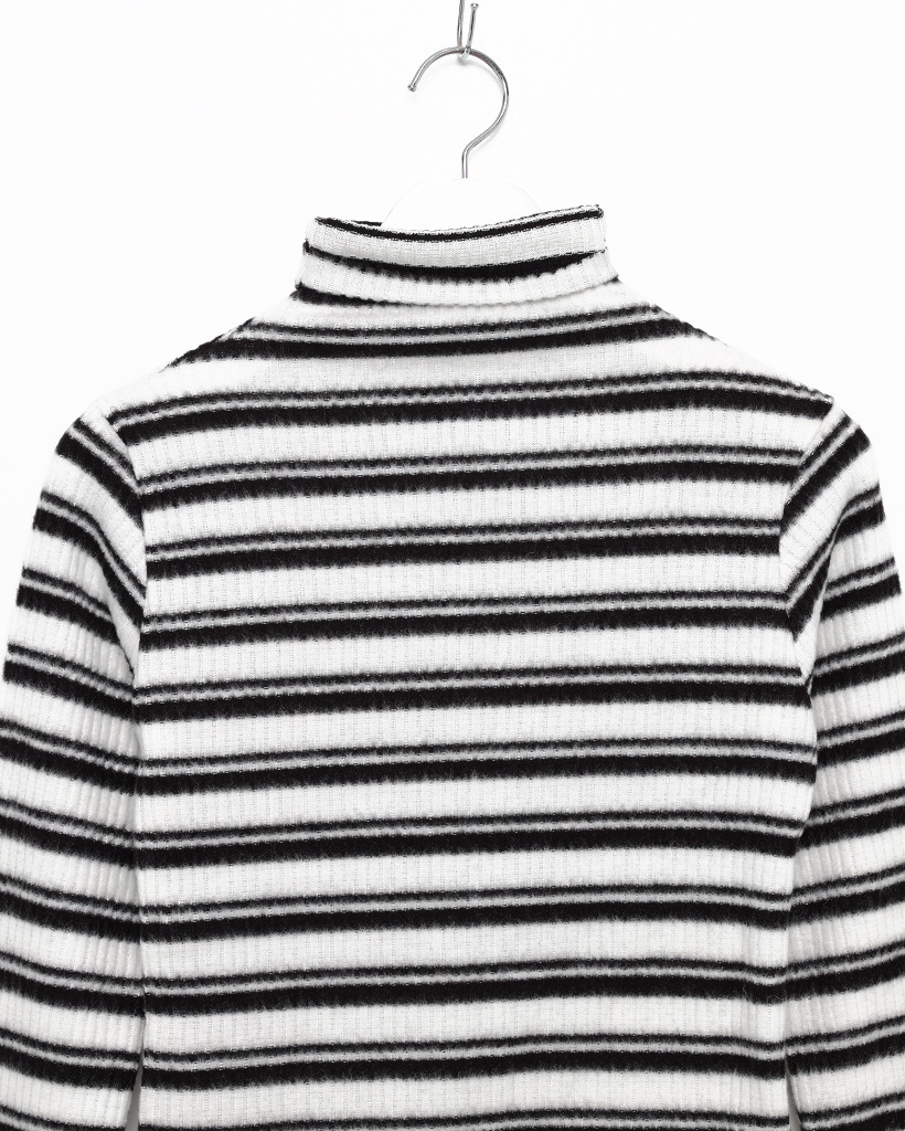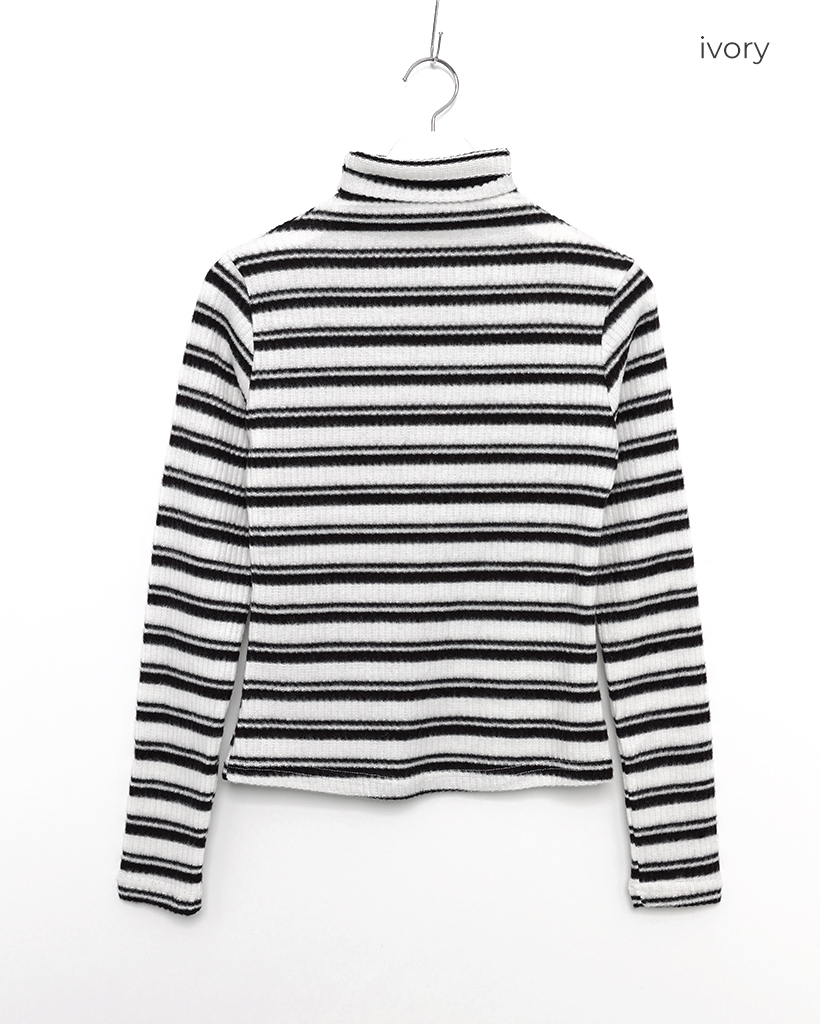 ボーダーハイネックリブスリムロングスリーブTシャツ