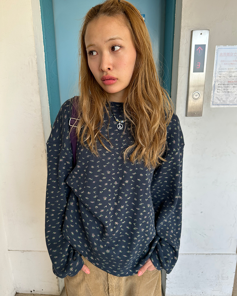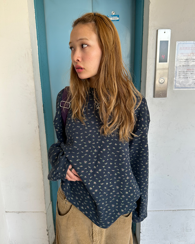 ミニフラワールーズロングニットプルオーバー