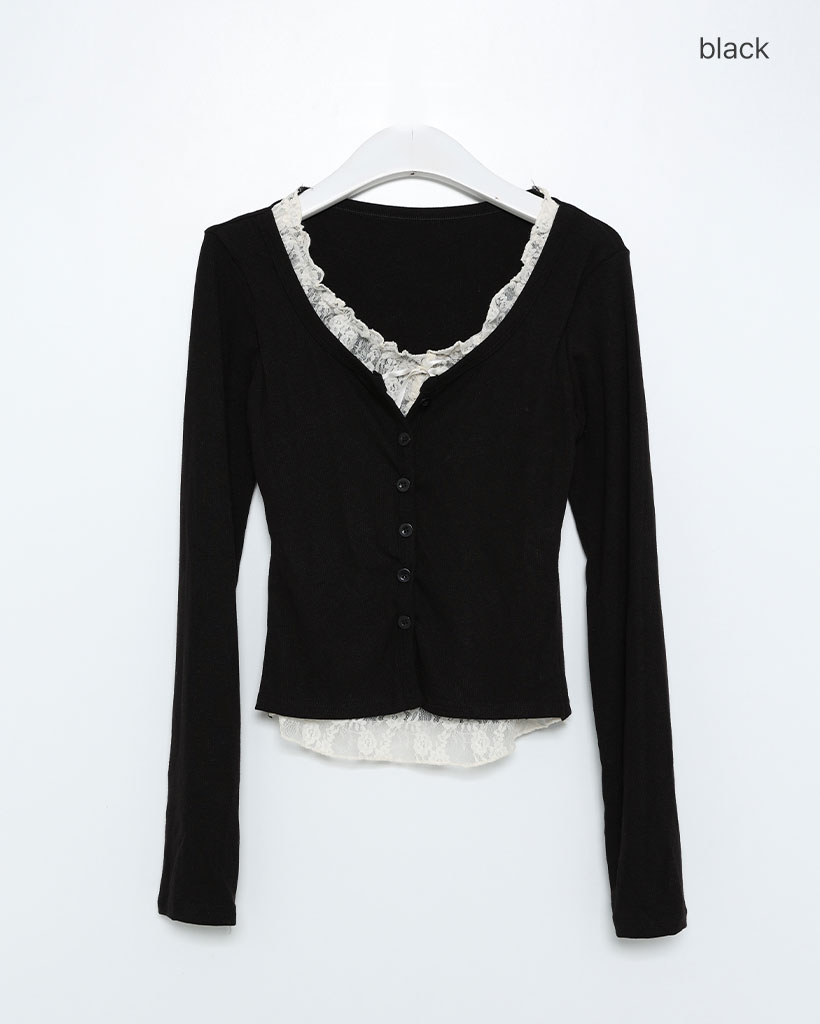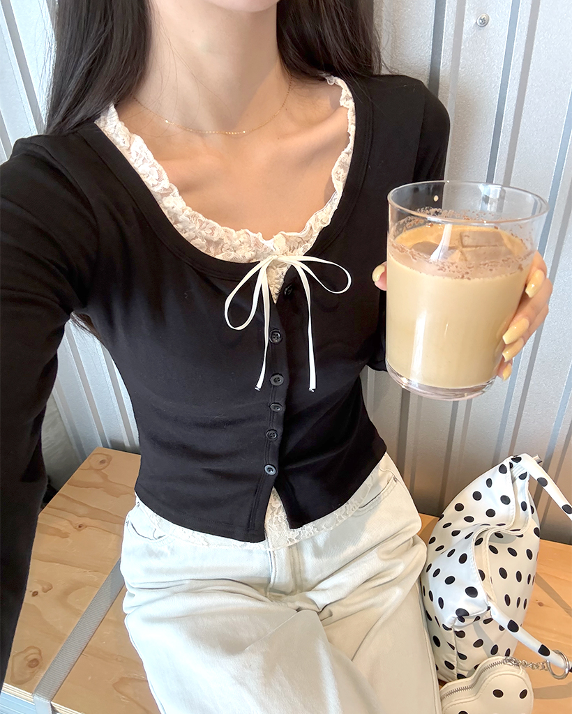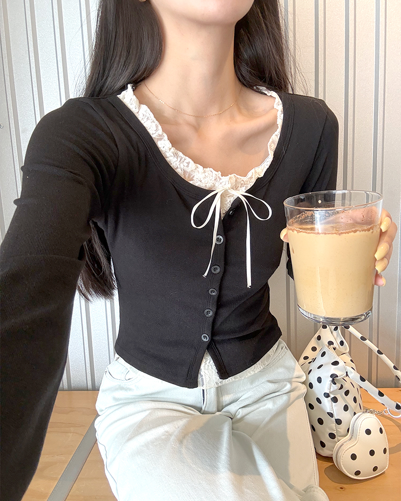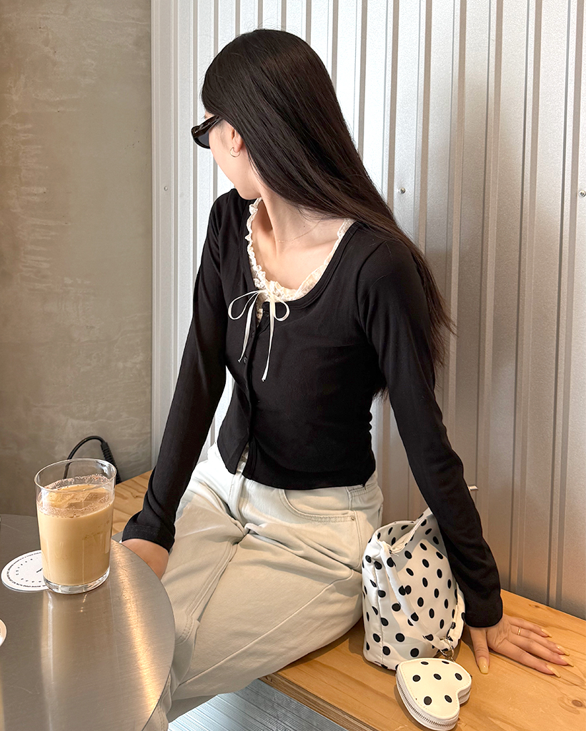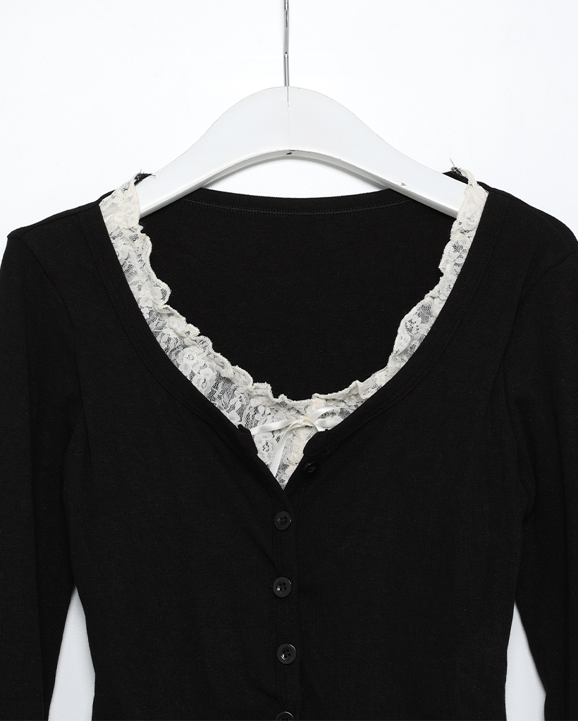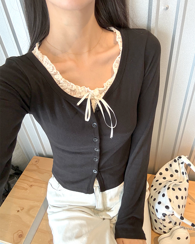 レースリボンレイヤードカーディガン