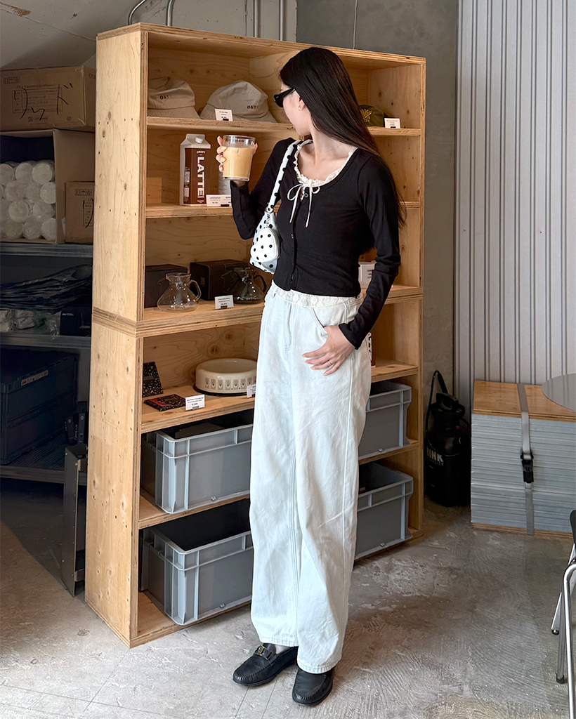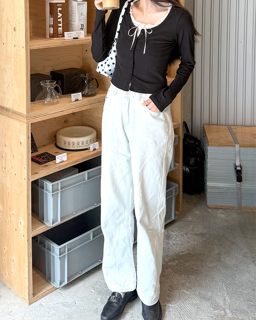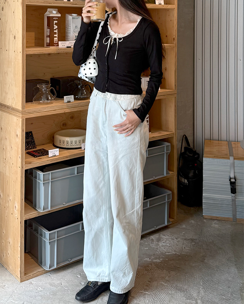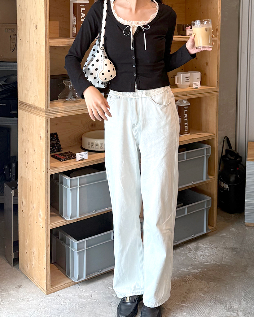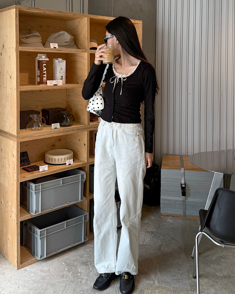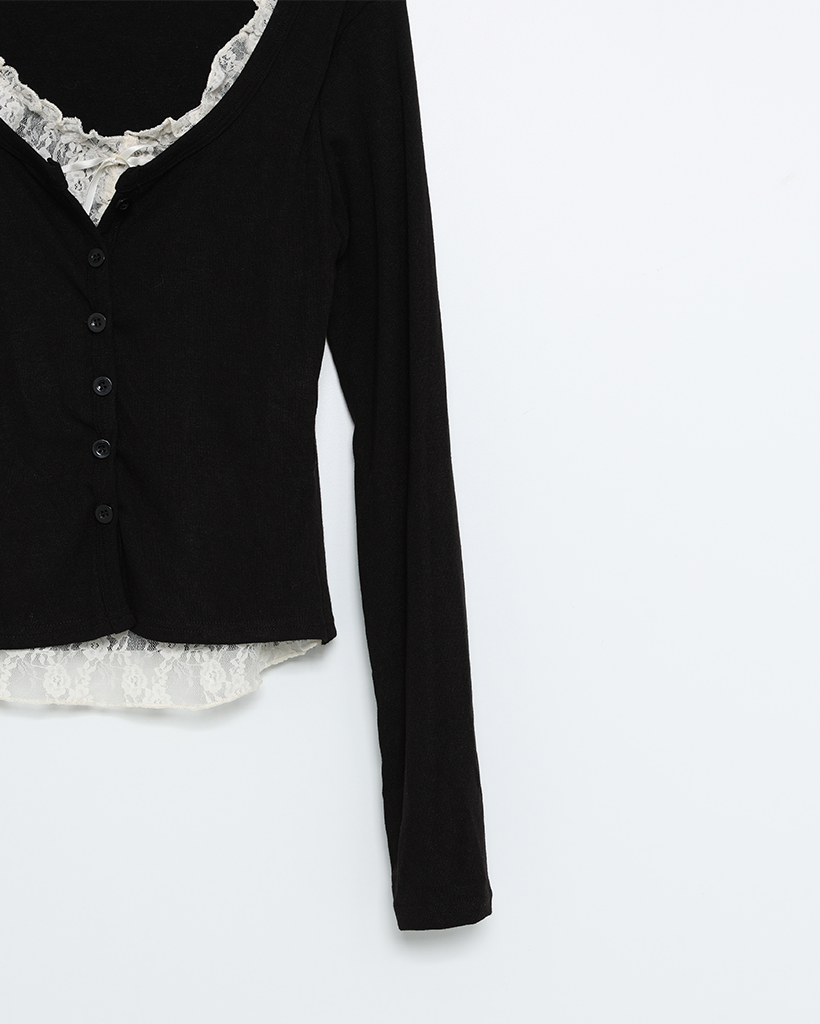 レースリボンレイヤードカーディガン