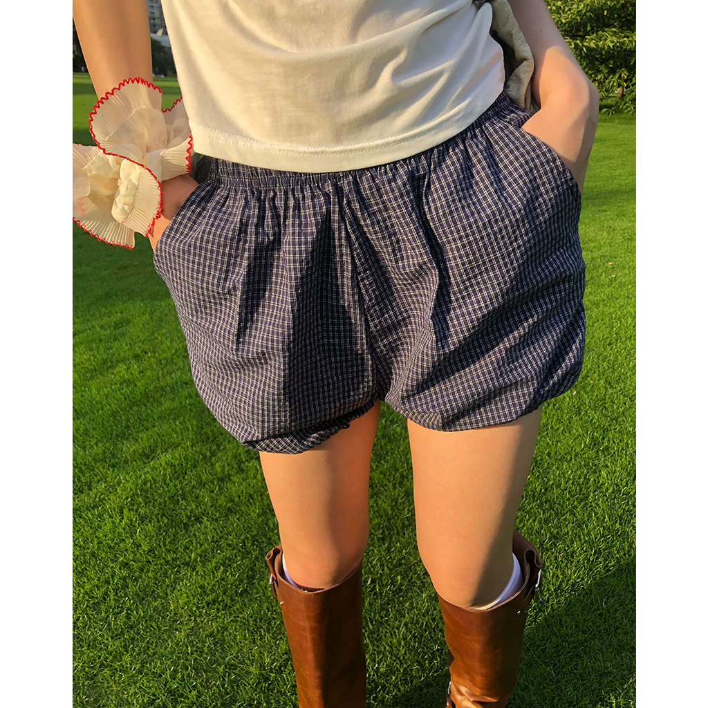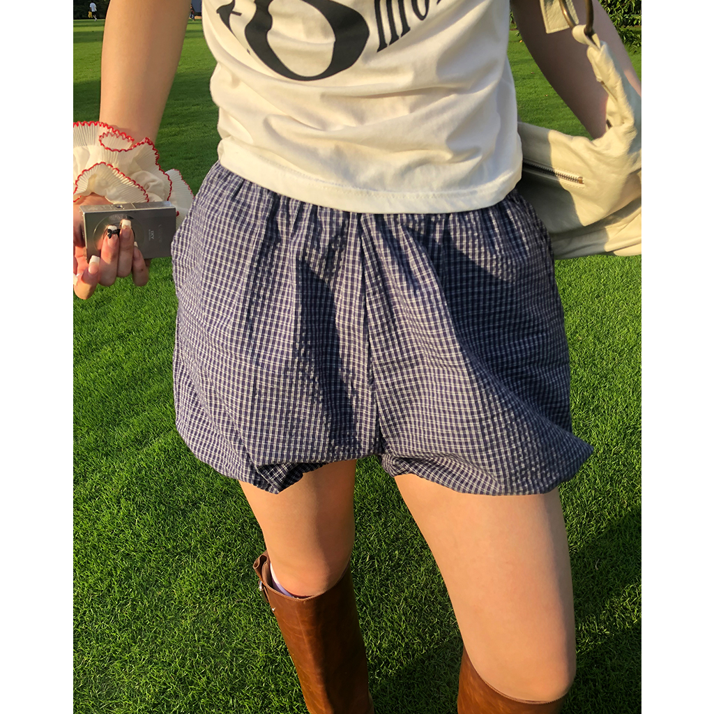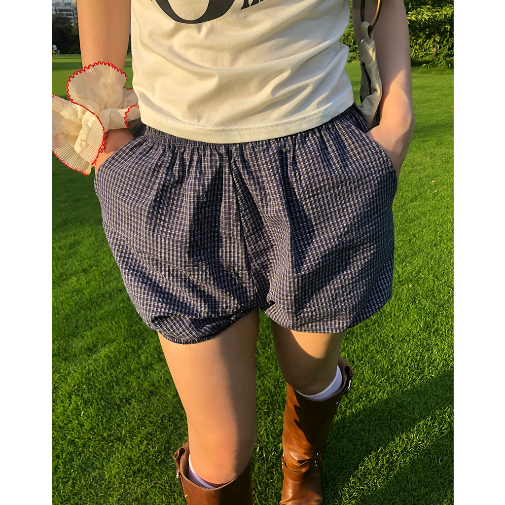 チェックパンプキンゴムショートパンツ