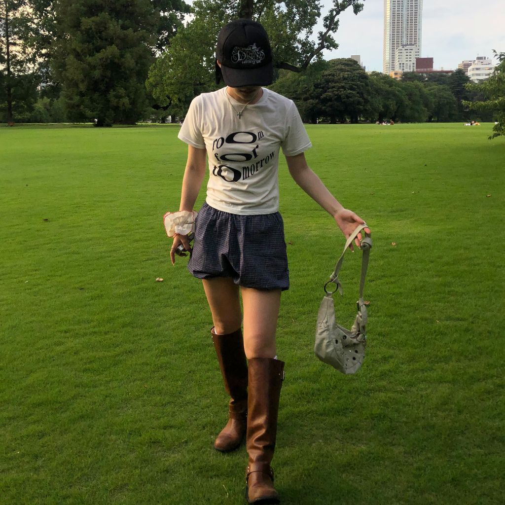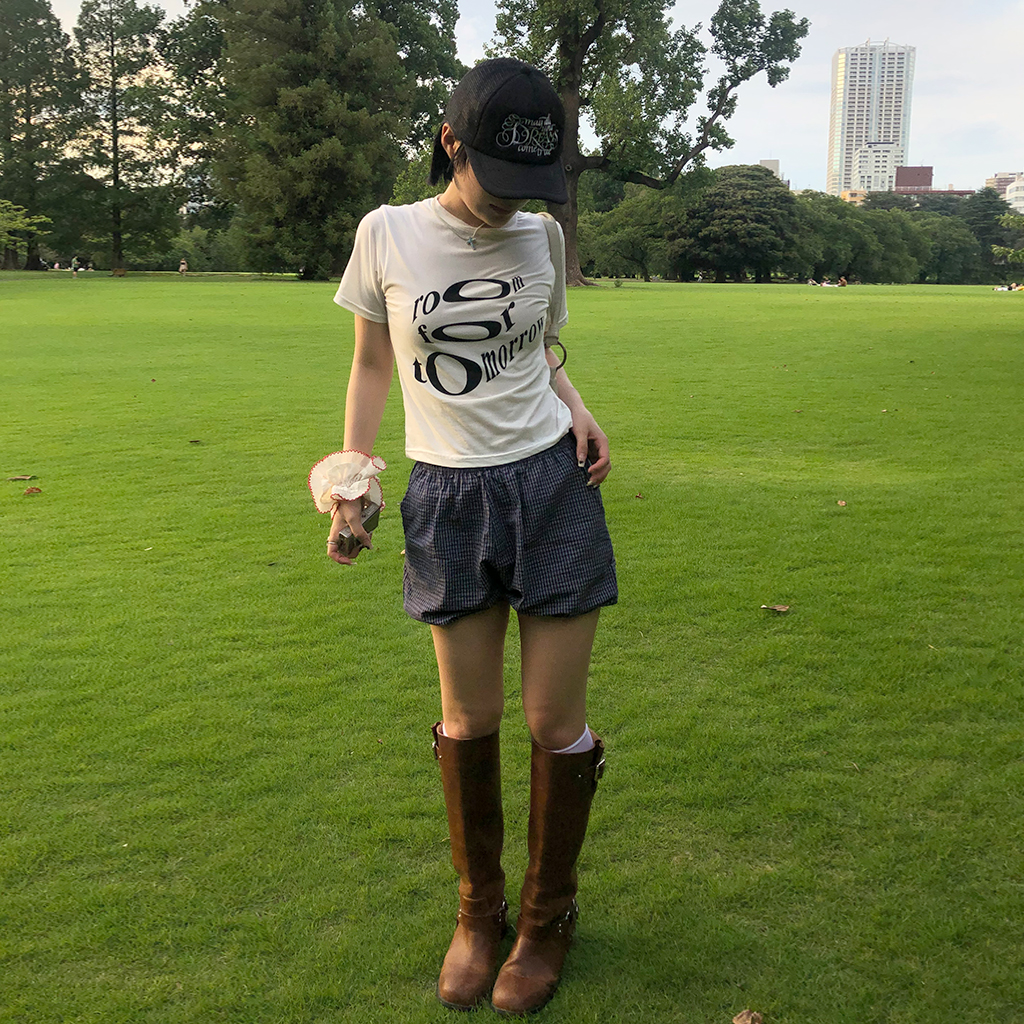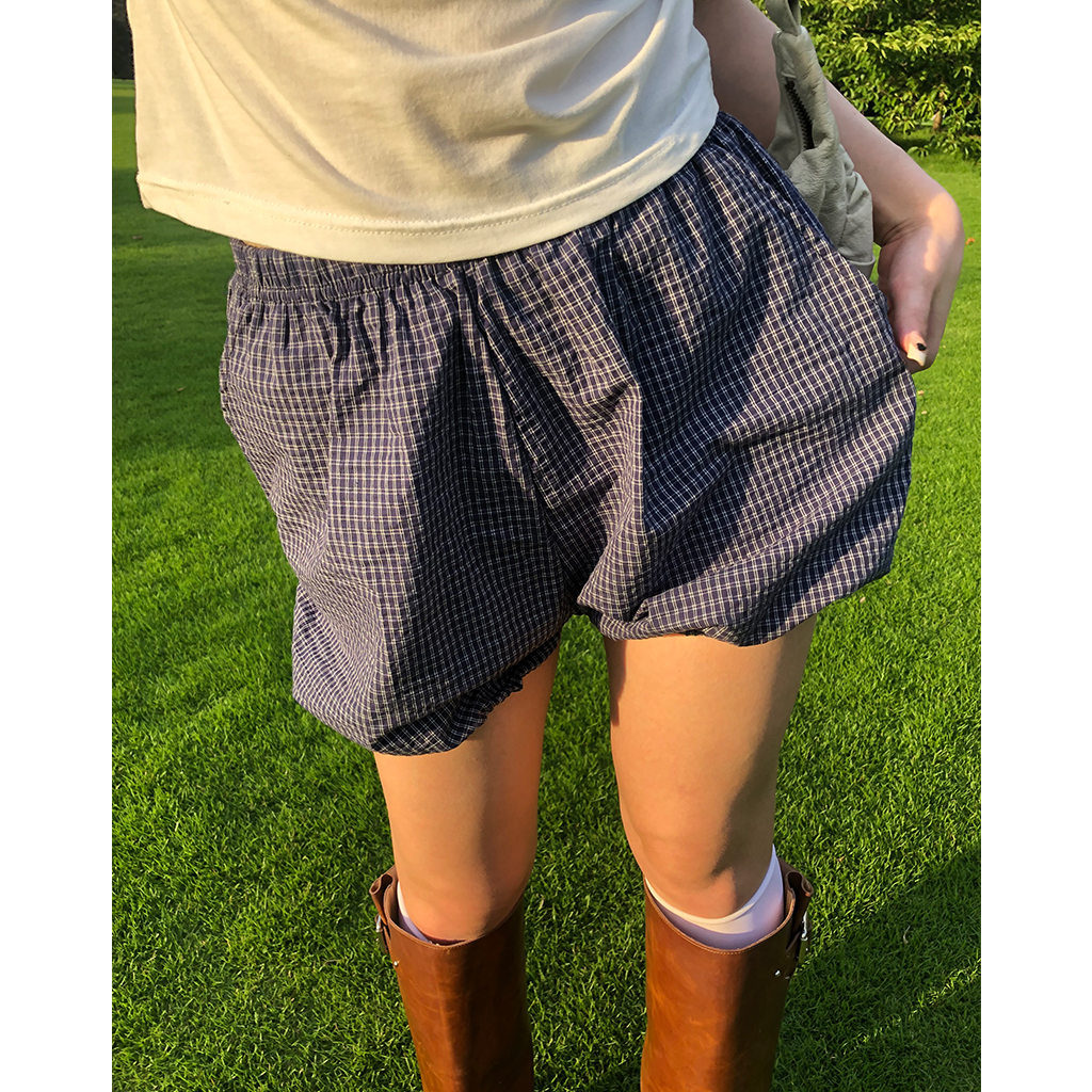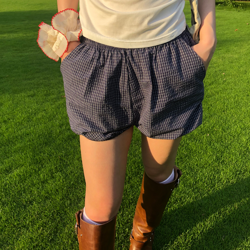 チェックパンプキンゴムショートパンツ