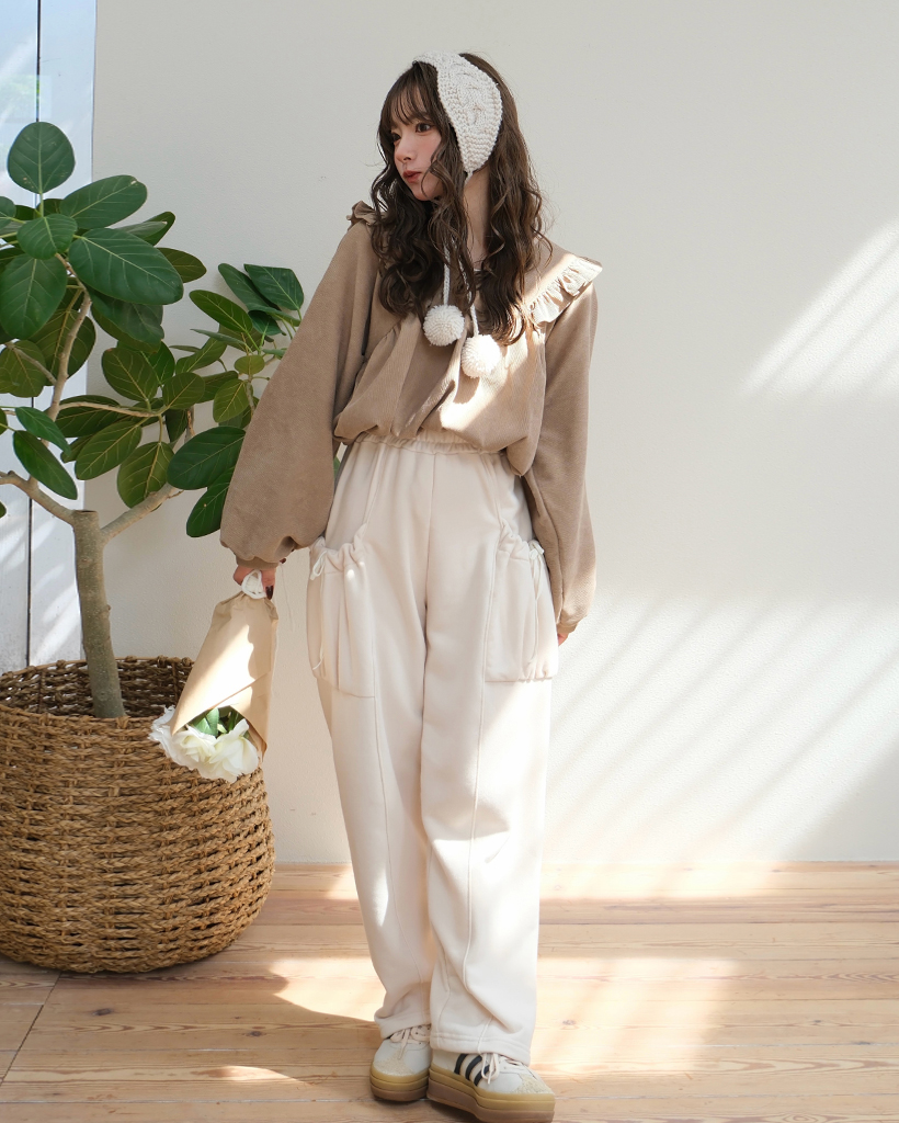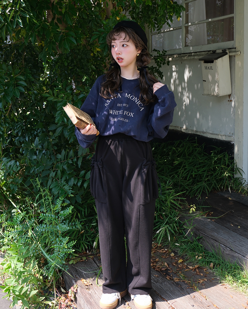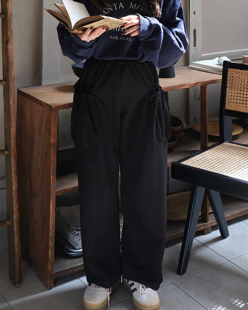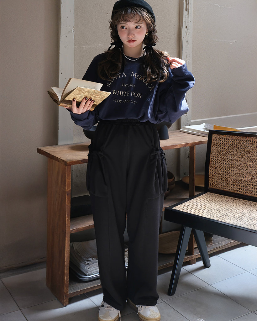 [1回再販](ORIGINAL) リボンポケットストレートスウェットパンツ