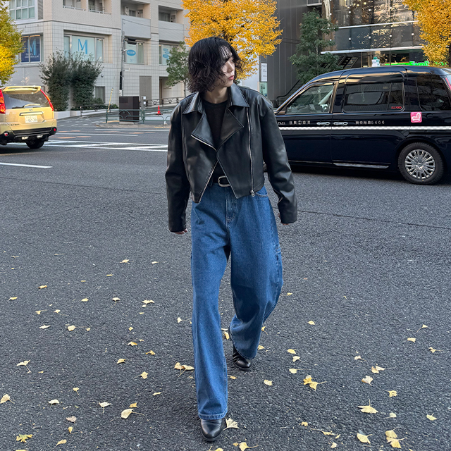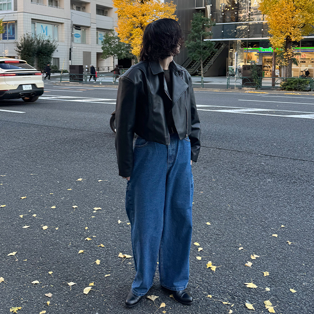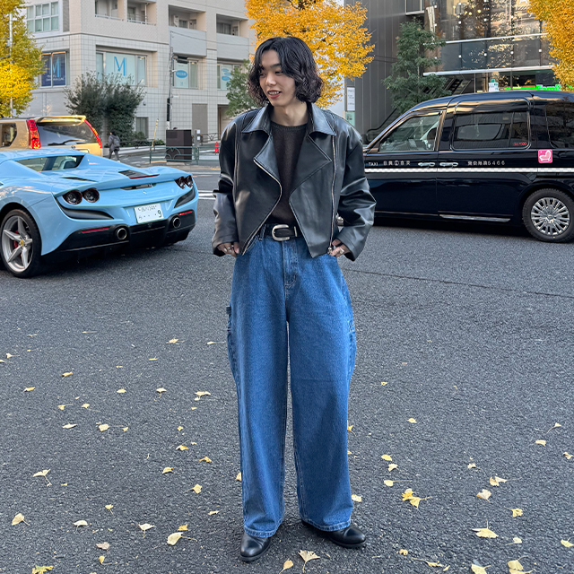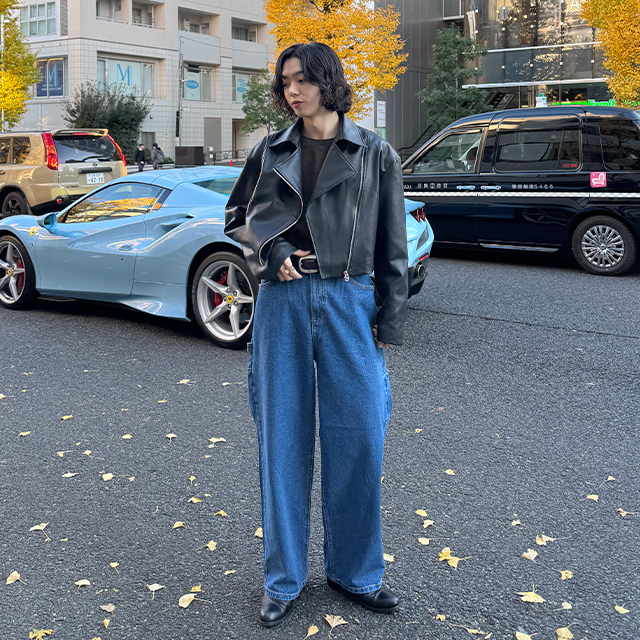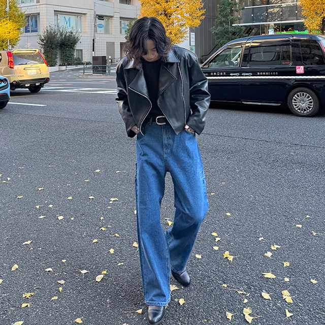 (ユニセックス)パッチポイントワイドデニムパンツ