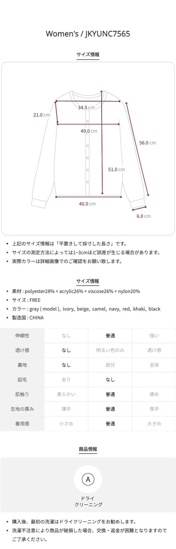 クラシックラウンドネックカーディガン