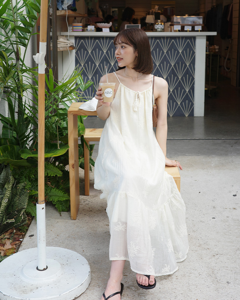 タッセルスリーブレスロングワンピース