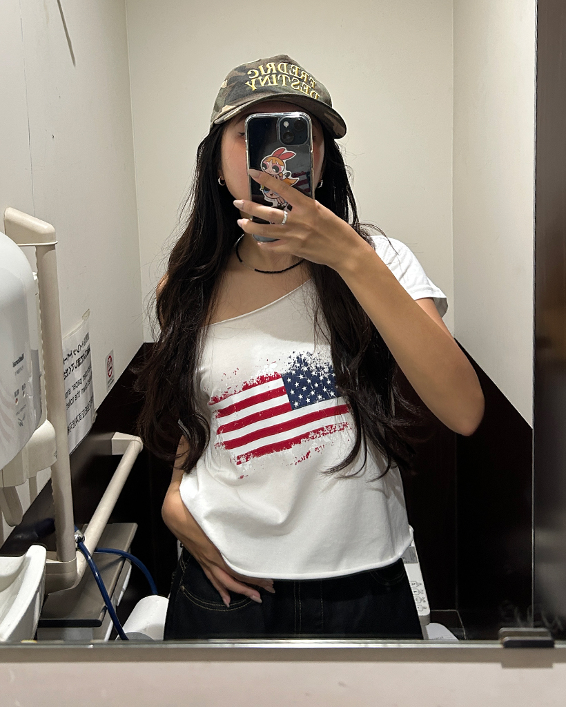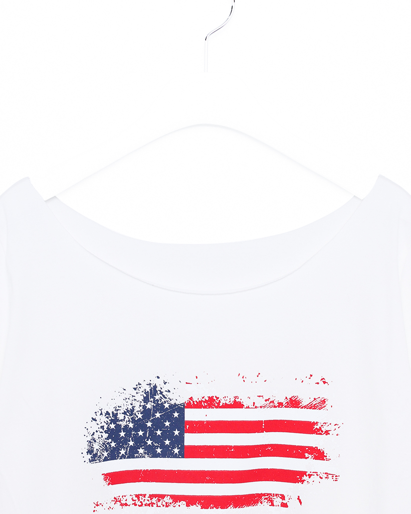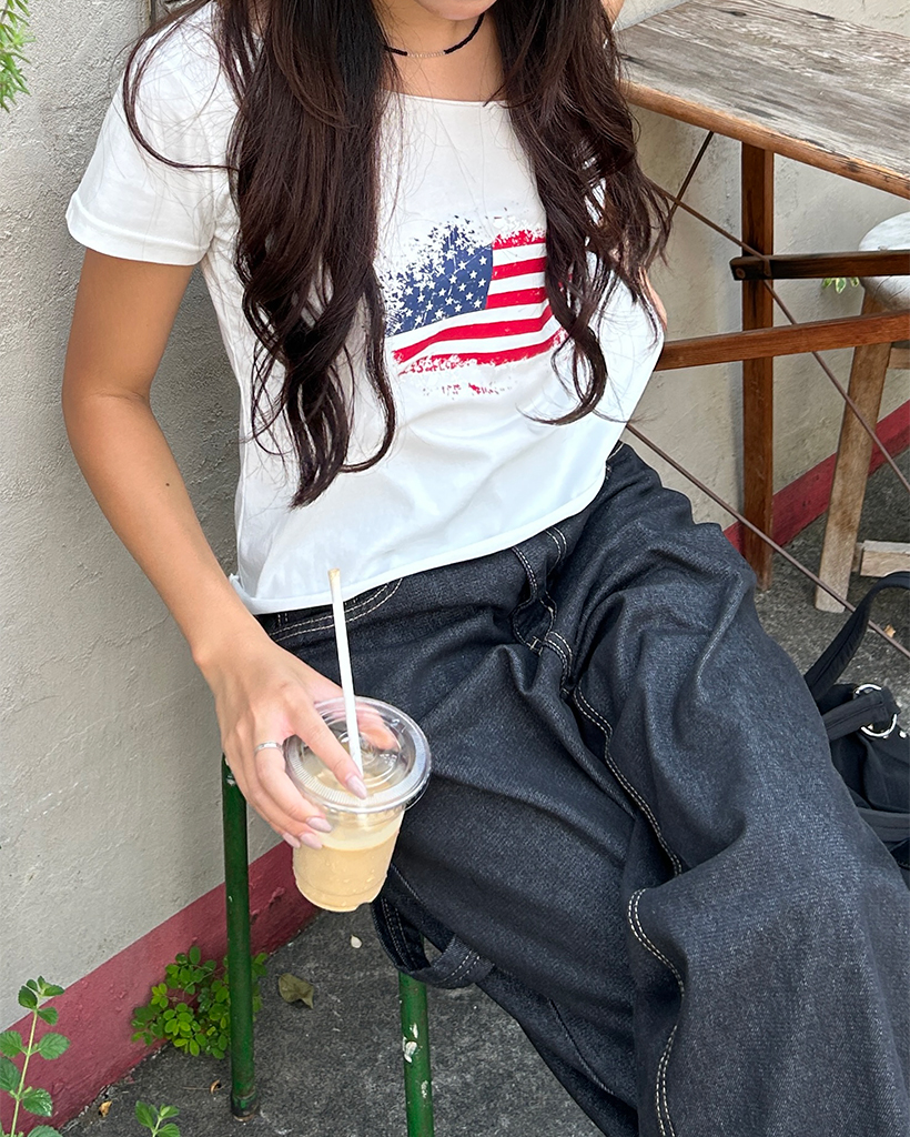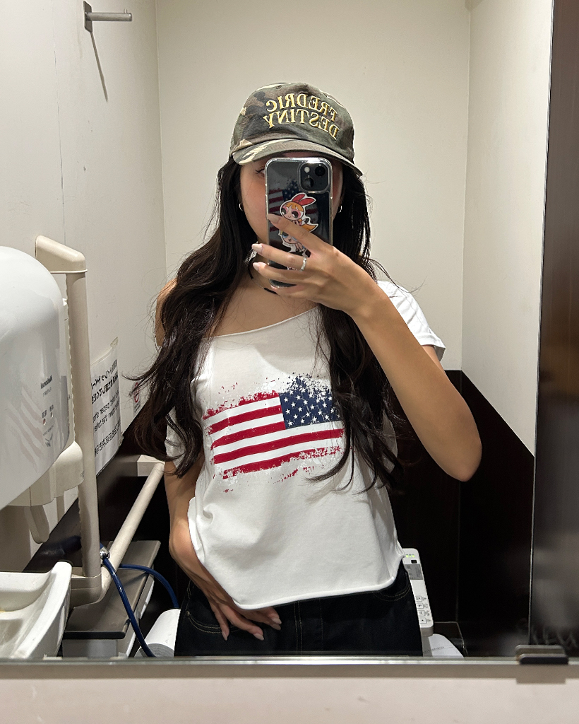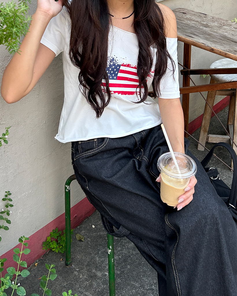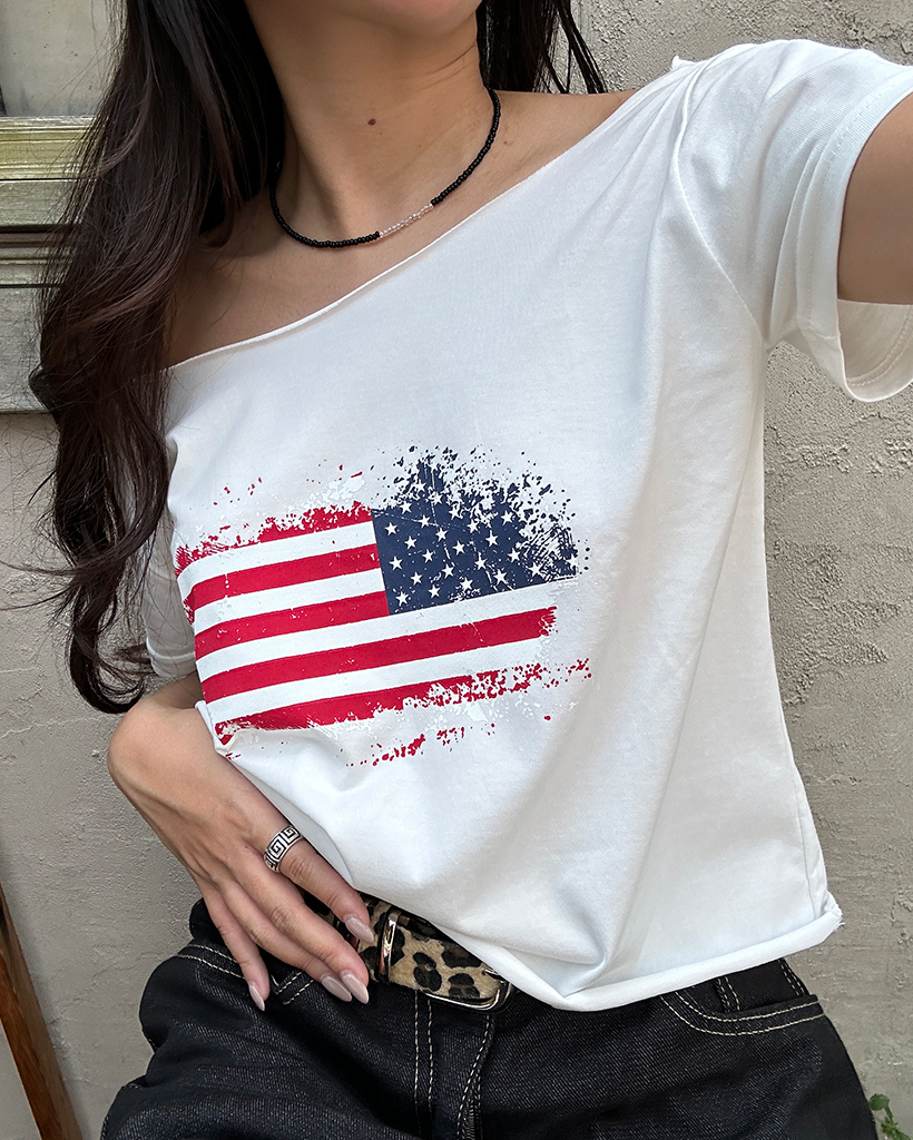 アメリンカンカットオフショルダネッククロップドTシャツ