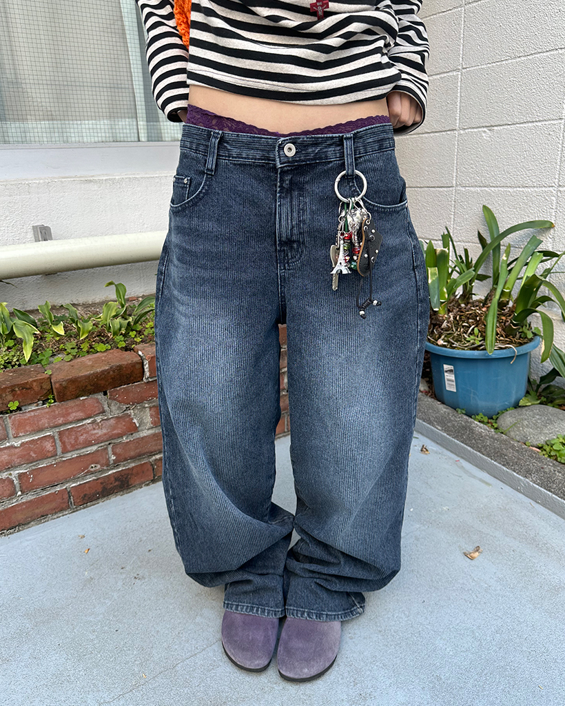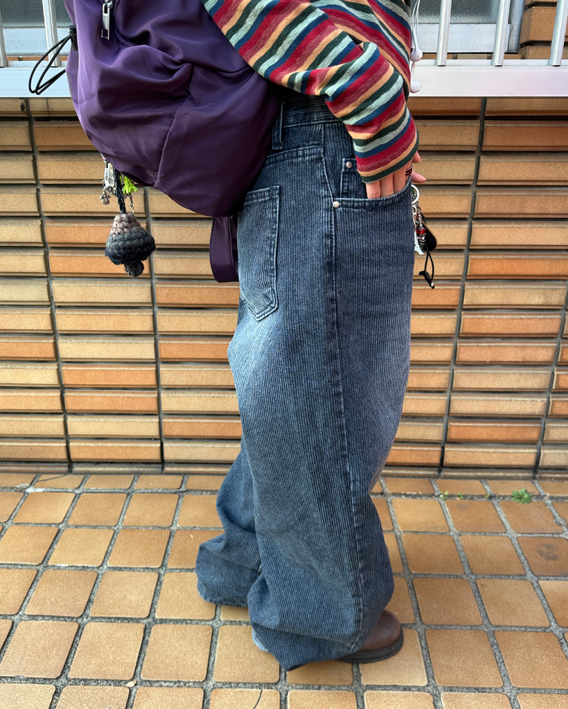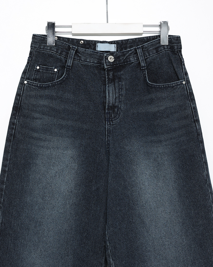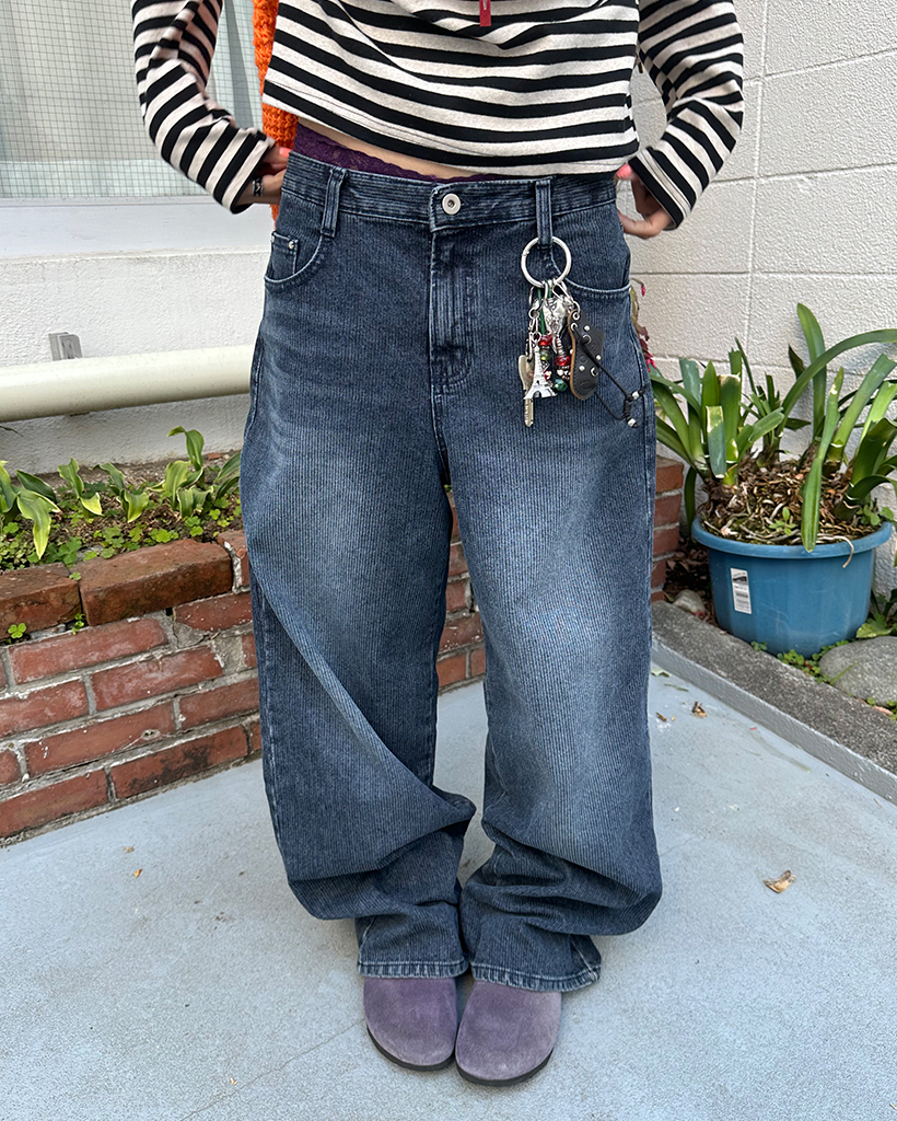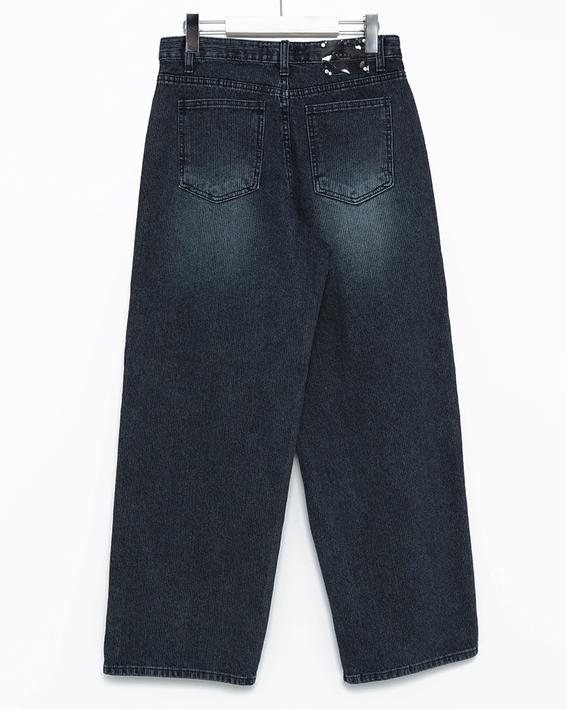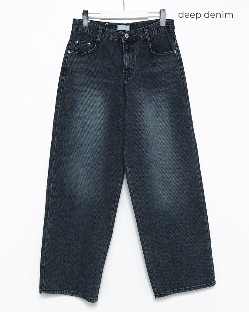 ナチュラルウォッシュリブワイドデニムパンツ