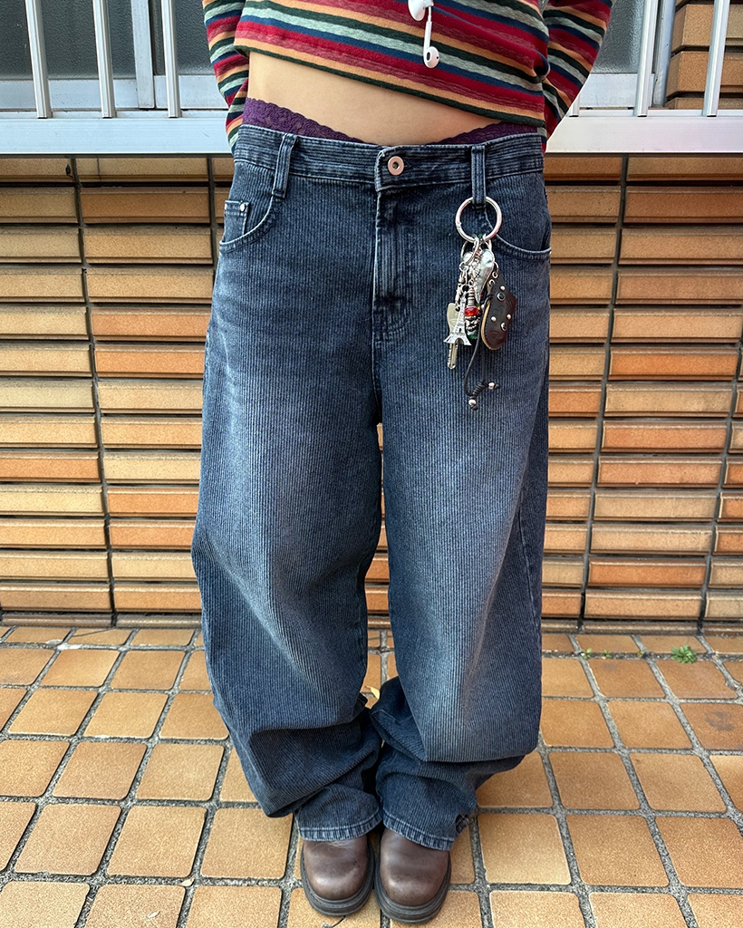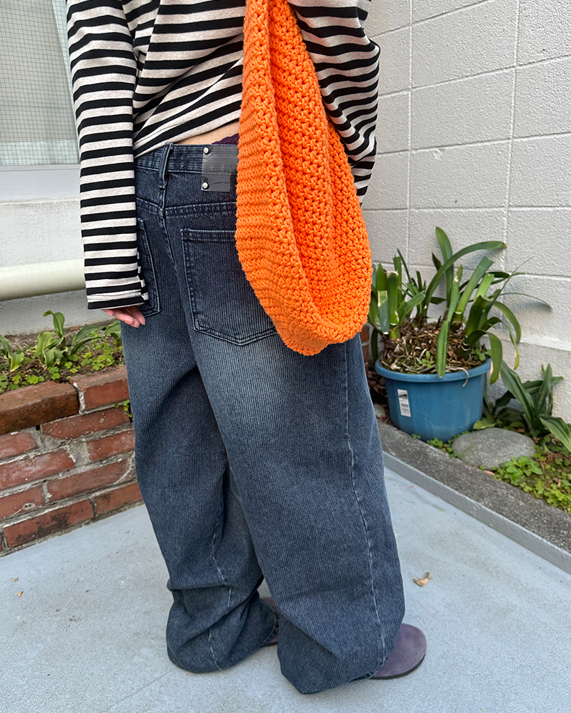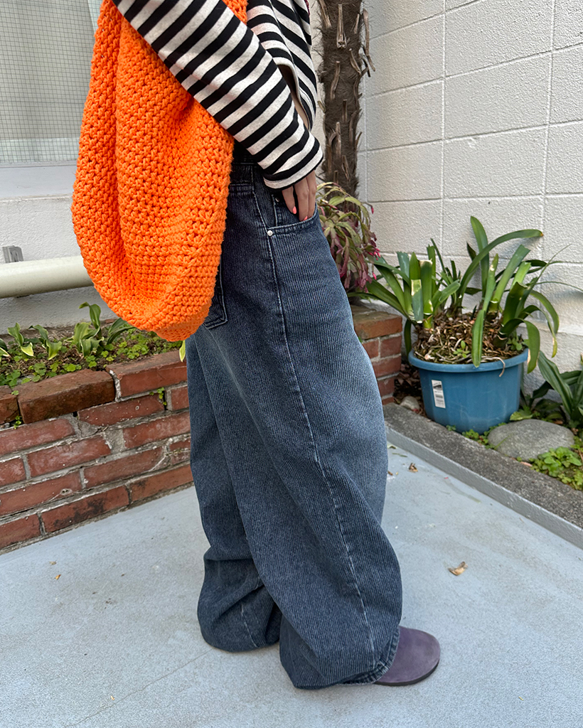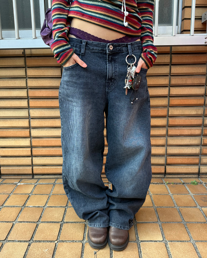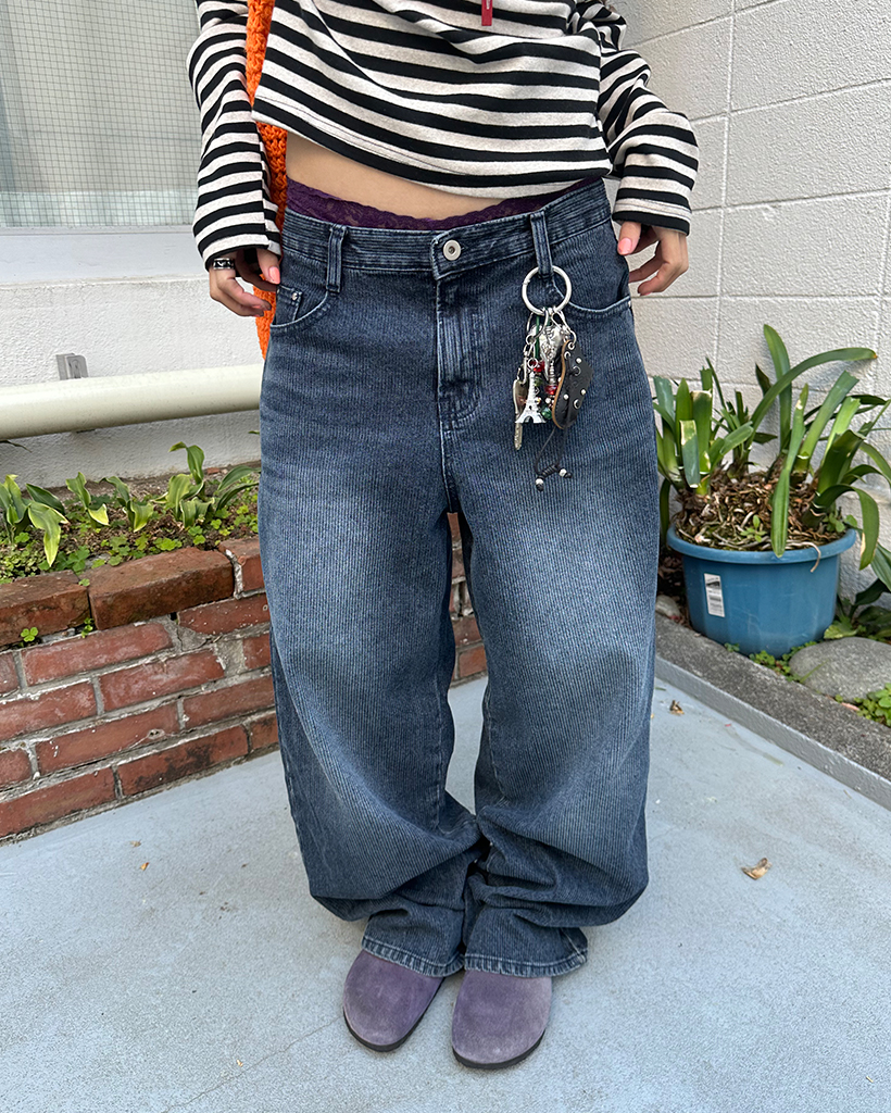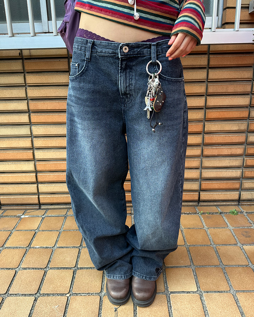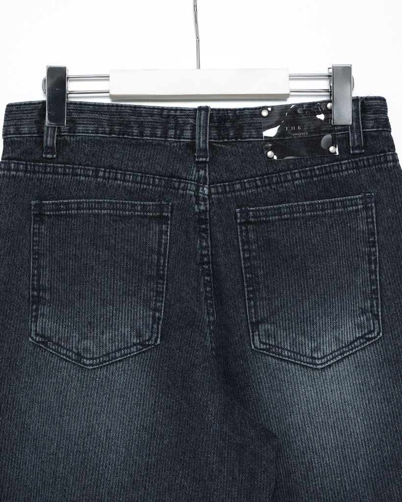 ナチュラルウォッシュリブワイドデニムパンツ
